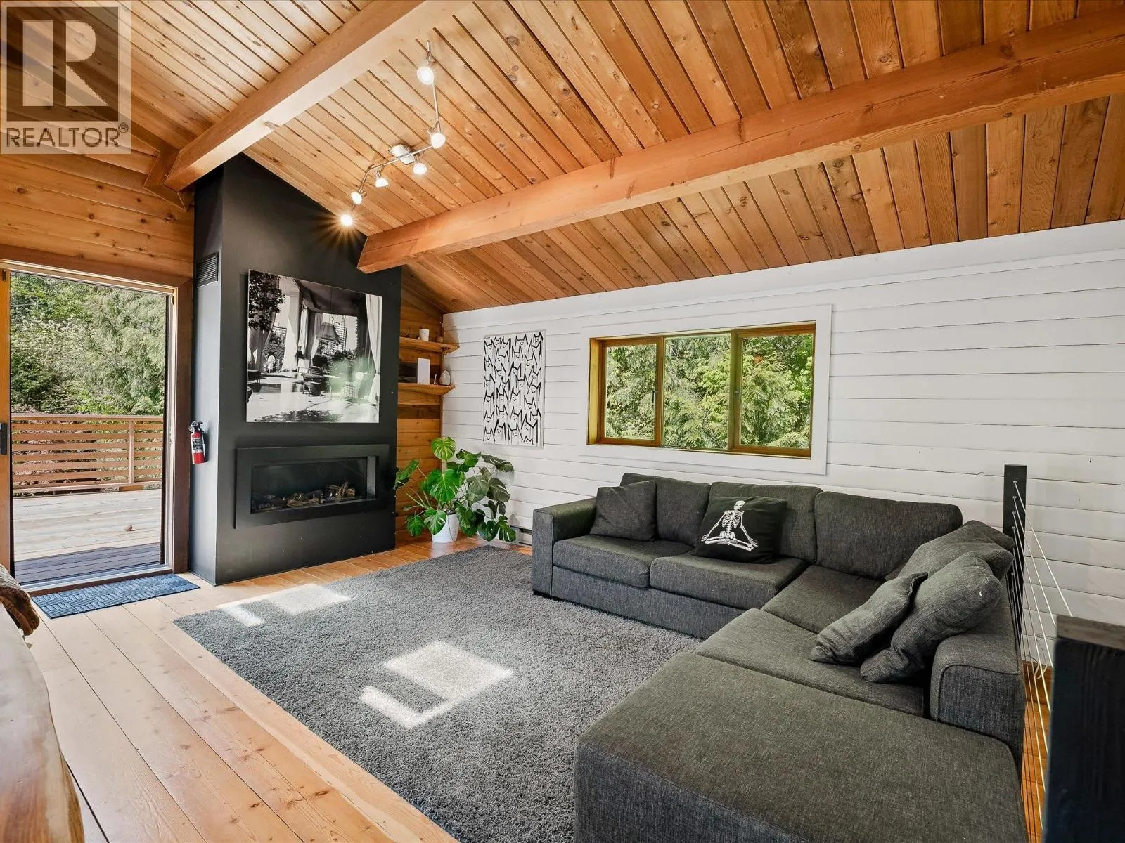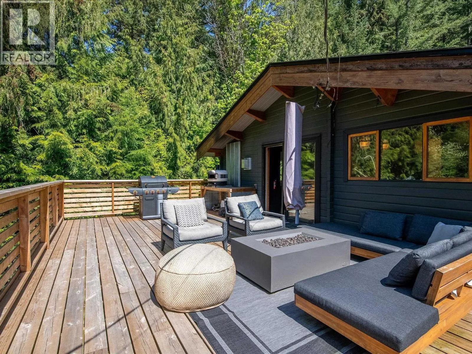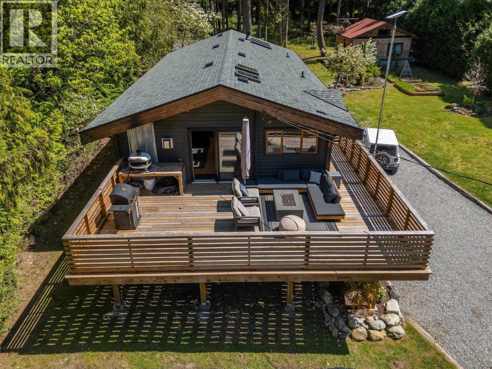 Scandinavian-inspired retreat in Paradise Valley! This renovated 5-bed, 3-bath Pan-Abode home sits on a fully fenced 36,721 square ft lot with a detached studio cabin. Enjoy a forest spa with wood-fired sauna, hot tub, cold plunge & firepit overlooking natural rock formations and mature natural forest. Entertain on the large sun drenched front deck. Recent updates include roof, vibrant landscaping with maple trees & garden beds. Kids will love exploring in the untouched forested backyard-rare for this area. Inside, the light-filled primary ensuite features a freestanding tub. Detached rental suite, 2-car garage, sports court, raised garden beds & root cellar, and detached work space complete this special property. Peaceful, private close to lakes, rivers, recreation and just a few minutes to Squamish. (id:27476)