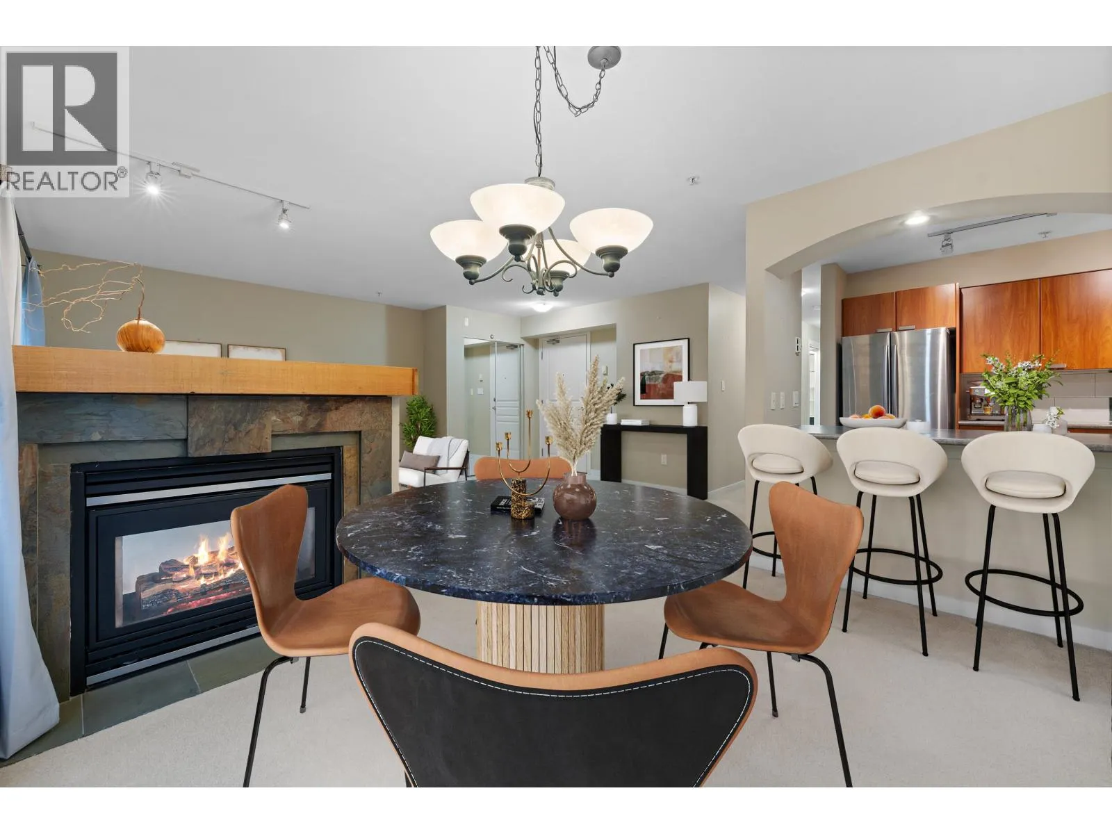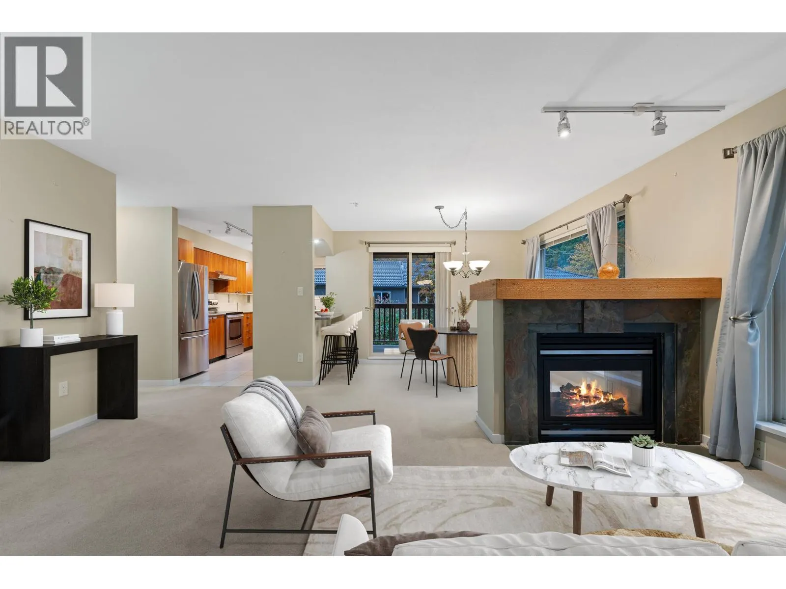Golfer's dream location! Just steps from the scenic Squamish Valley Golf Course, this beautifully maintained 2 bedroom, 2 bathroom corner home at The Symphony offers a bright, inviting open layout with large windows, 2 decks, a cozy two-way fireplace, and plenty of natural light. Rare, full-length corner residence occupying the entire side of the building, features include 2 parking stalls, storage locker with extra storage area, and a spacious primary suite. Lovingly cared for and move in ready. Perfect for downsizing-or rightsizing-with room for guests. Enjoy endless trails right outside your door for walking or biking. A must-see for golf and nature lovers alike. Some photos virtually staged. OPEN HOUSE SATURDAY NOV 1, 2-4 PM (id:27476)