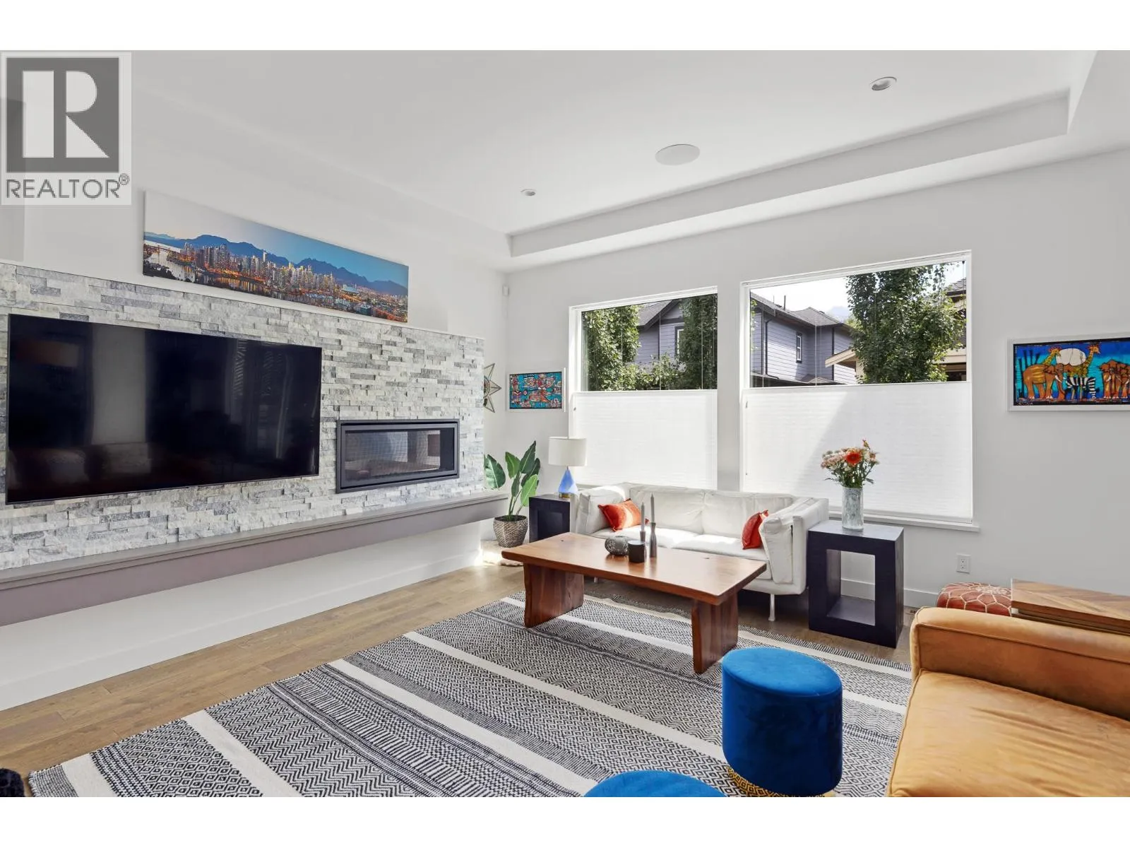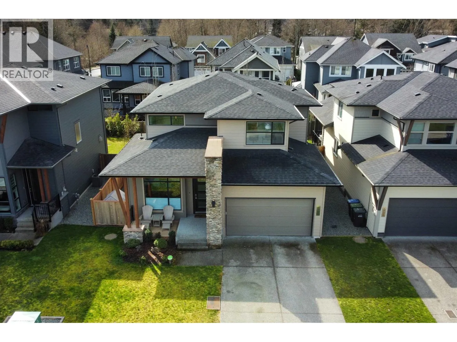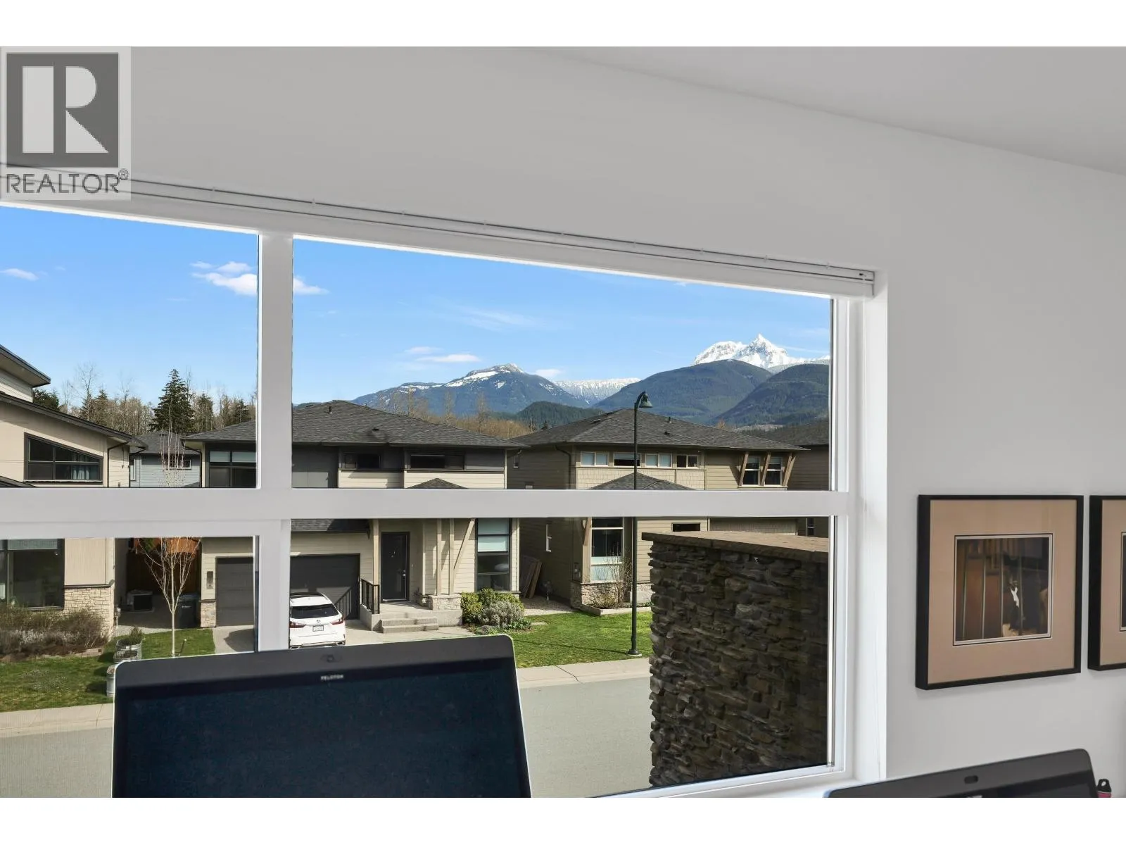 Squamish Family Living! Bright 3 bed + den, 2.5 bath home in a new, quiet central location with mountain views. Features: built-in speakers, coffered ceilings, covered deck with fireplace, fenced yard (mature trees), AC, gas fireplace/stove, EV charger, hardwood throughout, open concept layout, high-end finishes! Entertain in the gourmet kitchen, enjoy the yard, or relax by the deck fireplace after a hot tub. Flexible upstairs could be 4th bed. Walk to amenities! Call for private showing! (id:27476)