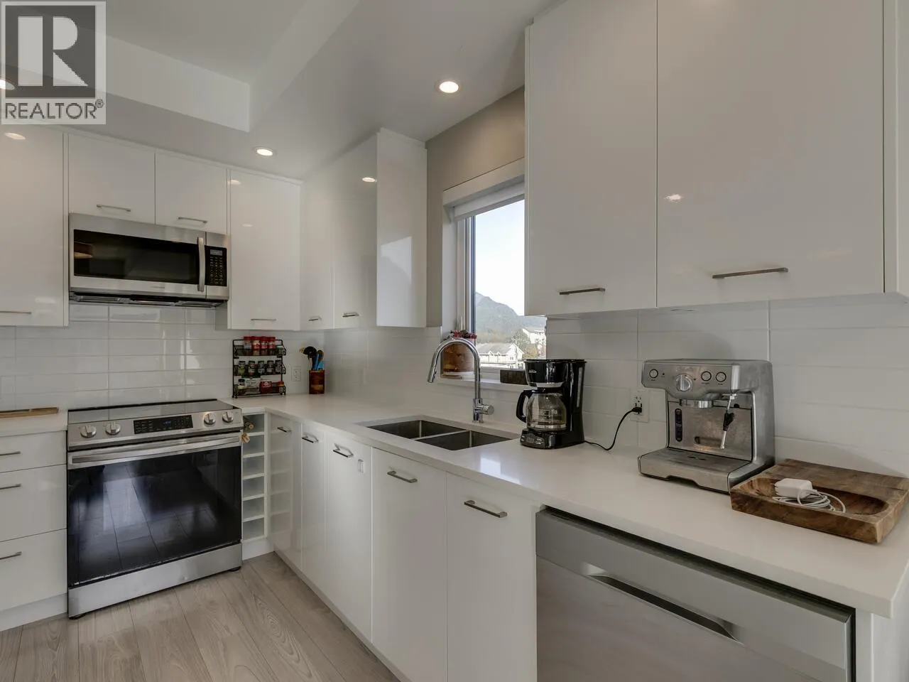 Sunlit corner suite built in 2021, showcasing an extra kitchen window, 2 tranquil bedrooms, and 2 stylish baths. Sleek quartz counters and a private balcony invite you to enjoy coffee with breathtaking views of the Chief. Ideally situated near the marina, ocean, and scenic biking and hiking trails, plus shops, groceries, and restaurants just moments away. (id:27476)