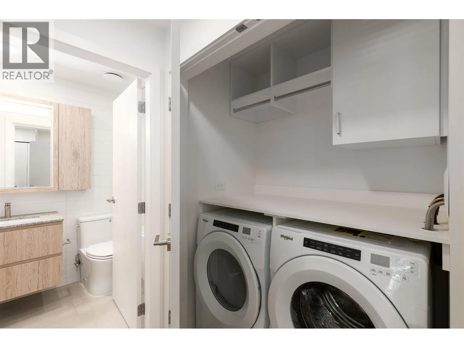 Welcome to this 2-bed + den, 2 full baths condo located in the sought-after Redridge development in Squamish. World class 20,000+ sq. ft. of indoor/outdoor amenities including, spa, gym, co-working space, rooftop deck, party room, pet spa. Full-time Concierge. Featuring an open-concept layout, the home includes a contemporary kitchen with premium overlay appliances, GAS stove, dekton countertops, and a large island-perfect for entertaining. The primary bedroom offers a walk-through closet and private ensuite. Enjoy your morning coffee or unwind after a long day on the huge private balcony, taking in the serene Squamish views. In-suite laundry, secure underground parking, and HUGE storage locker. 1 EV Charging stall. 1 additional stall available for purchase. (id:27476)