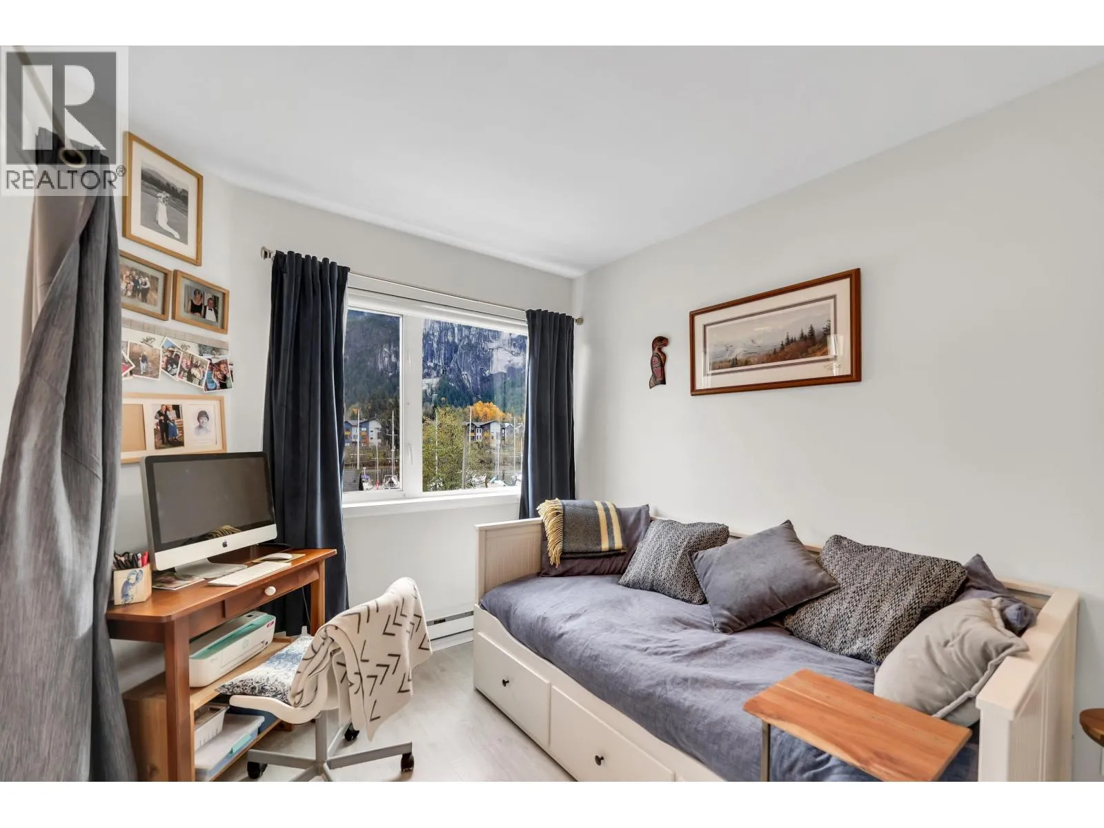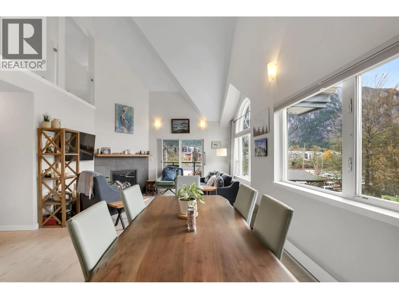 Spectacular penthouse corner unit with vaulted ceilings and panoramic views of the ocean, marina, and Stawamus Chief. This fully updated home offers a bright, modern design with premium finishes and high-end appliances. The main level features a stunning primary bedroom with a spacious walk-in closet and elegant ensuite, while the loft bedroom above opens to a private rooftop deck. Enjoy mountain and ocean vistas from the vaulted living room and sun-filled south-facing deck. Cozy up by the gas fireplace and watch the sunrise to sunset. Includes two underground parking stalls, a large storage locker, and available RV parking-an exceptional find in the heart of Squamish! They don't make them like this anymore! (id:27476)