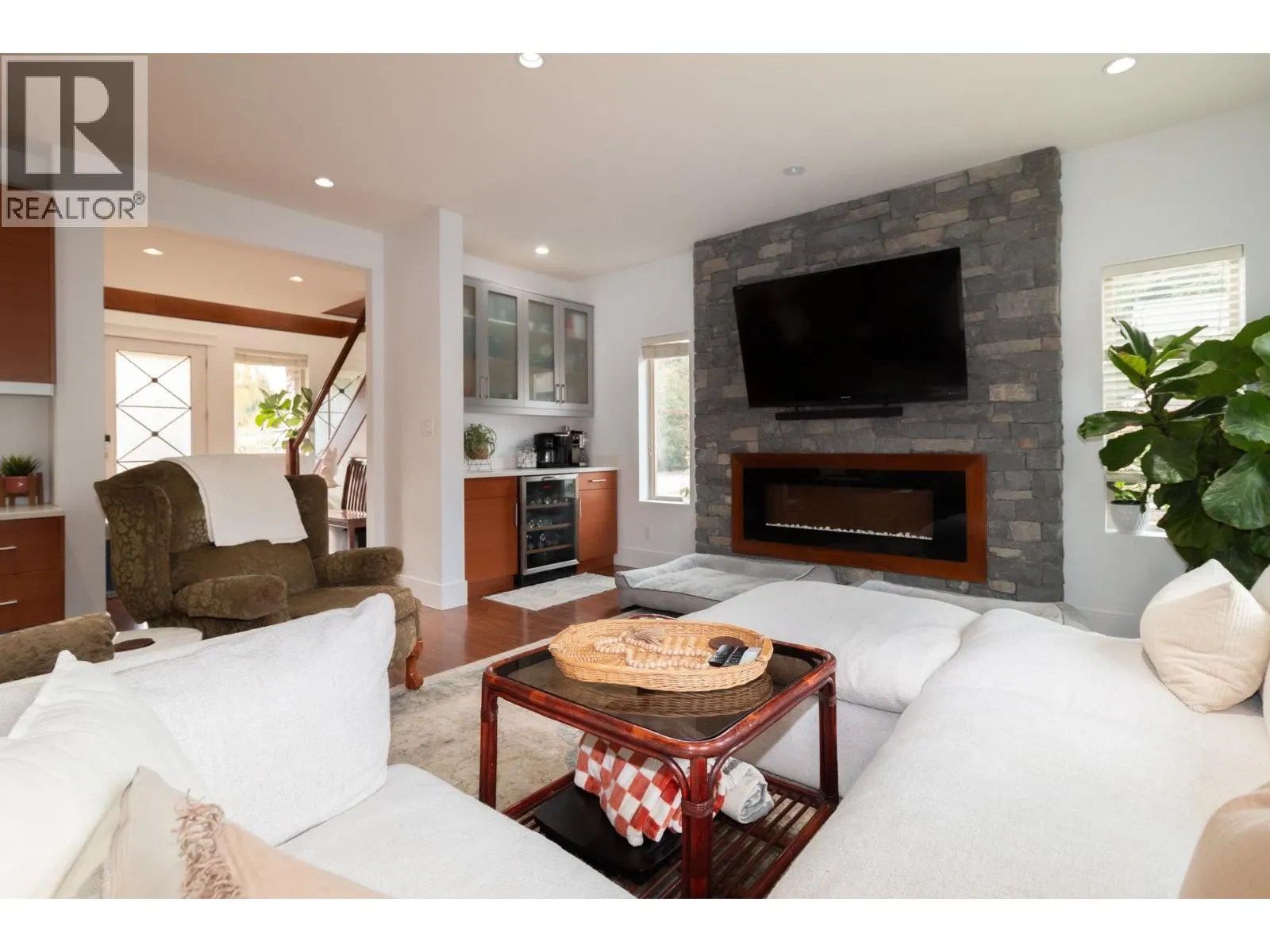 Located only steps from Brennan Park Recreation centre; this 3 bedrm, 3 bathrm plus large flex space detached home has a full sized driveway, large 2 car garage with ample storage throughout & in crawl space. The open flr plan effortlessly integrates the living, dining & kitchen areas, creating a seamless flow for both everyday living and entertaining guests. The main living area features natural stone fireplace, bar area including bar fridge & sink, the kitchen boasts stainless steel appliances, polished stone countertops, quality cabinetry, with oversized island. Step outside from from sliding glass doors onto private deck and enjoy the fully fenced private yard. Walking distance to soccer fields, baseball diamonds playgrounds, a BMX track, pickleball courts, shopping, restaurants & golf! (id:27476)