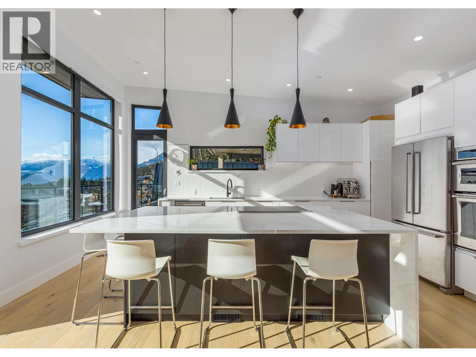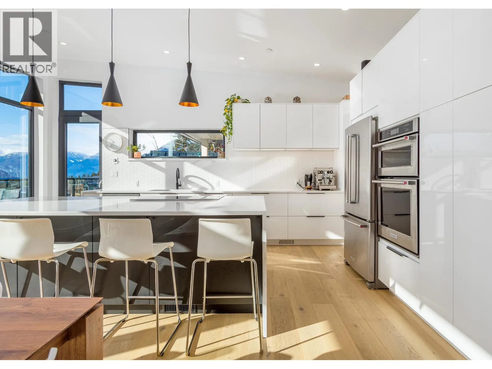 An extraordinary west coast contemporary residence that features stunning panoramic views of The Squamish Chief and Ocean and backs directly onto the forest for the utmost in privacy! The upper floor living space includes oversized windows and an open concept to take advantage of amazing views which flow directly out onto the top floor wrap around deck (over 1,000 sq ft). Highlights include white oak hardwood floors, custom cabinets, Caesar stone counter tops, 5 bedrooms in the main house (2 of which can be locked off for a legal air bnb with separate entrance), gym/theater room and an income suite below. EV ready, energy efficient and climate controlled. Your won't want to miss this opportunity , call for your private viewing! (id:27476)