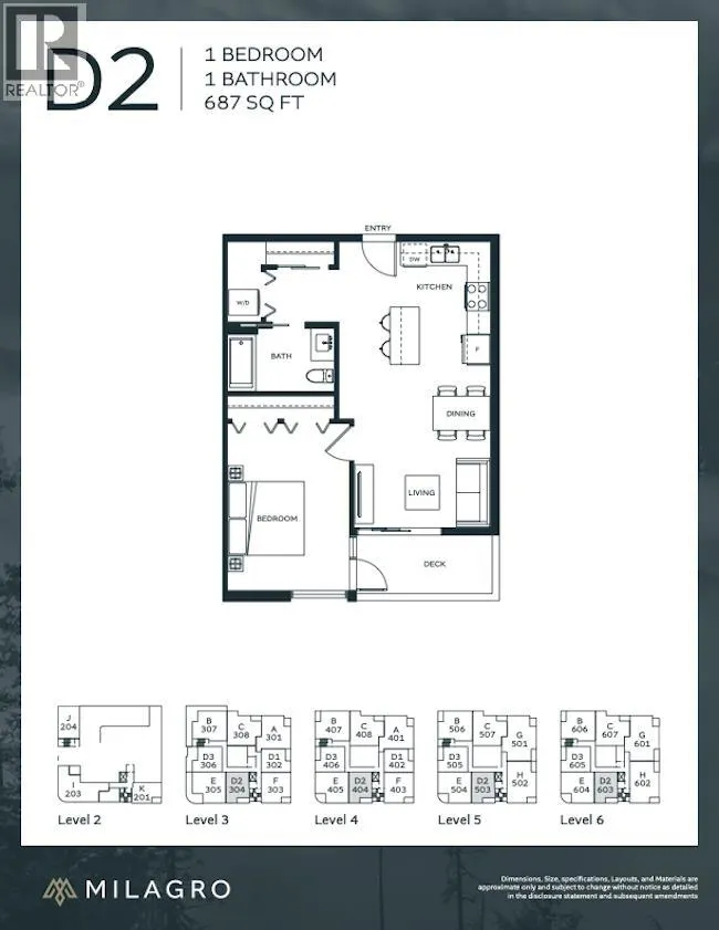 Welcome to Milagro! A boutique six-story residence in the heart of Downtown Squamish. This thoughtfully designed 1 bedroom + flex PENTHOUSE condo offers a spacious primary bedroom, versatile flex space perfect for a home office or guest area, and an open-concept kitchen, dining, and living room. Enjoy wide plank laminate flooring, premium stainless steel appliances, and large windows that fill the space with natural light. Step onto your private balcony to take in sweeping views of the surrounding mountains and vibrant downtown. Oversized storage lockers on most floors make room for all your adventure gear. With urban conveniences and world-class recreation at your doorstep-this is an exceptional opportunity to get into prime Squamish Real Estate! (id:27476)