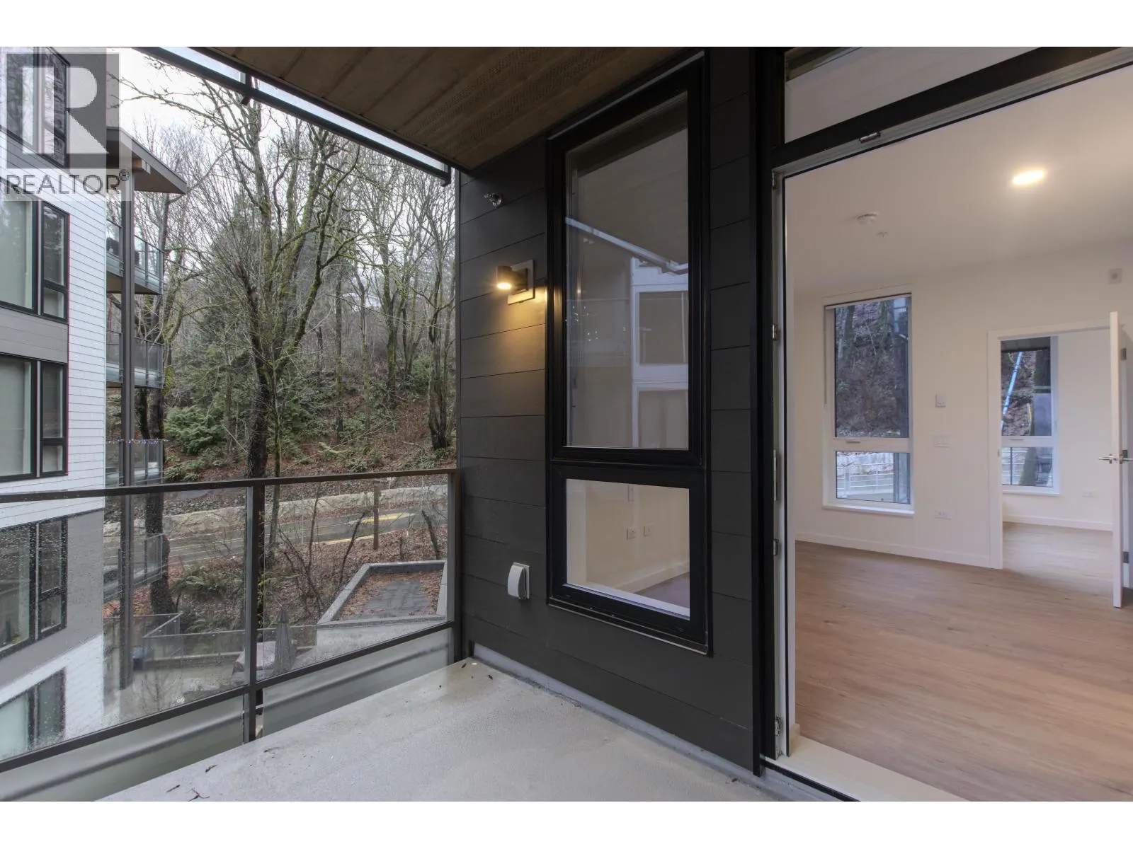 This brand new, thoughtfully designed two-bedroom plus den, two-bathroom corner residence offers a generous 1,044 square ft floor plan with excellent flow. Surrounded by windows, and with two covered patios, the home is filled with natural light and enjoys peaceful forested and mountain views, creating a calm and welcoming living environment. A refined level of finish and attention to detail is showcased throughout, including a well-appointed kitchen with high-end Italian cabinetry and sleek quartz countertops. Redbridge residents enjoy access to the Basecamp amenity centre featuring a cold plunge, hot tub, fitness centre, rooftop terrace, co-working space, yoga room, and more. A well-rounded offering supporting both easy living and an active Squamish lifestyle, complete with generous storage and a central location. (id:27476)