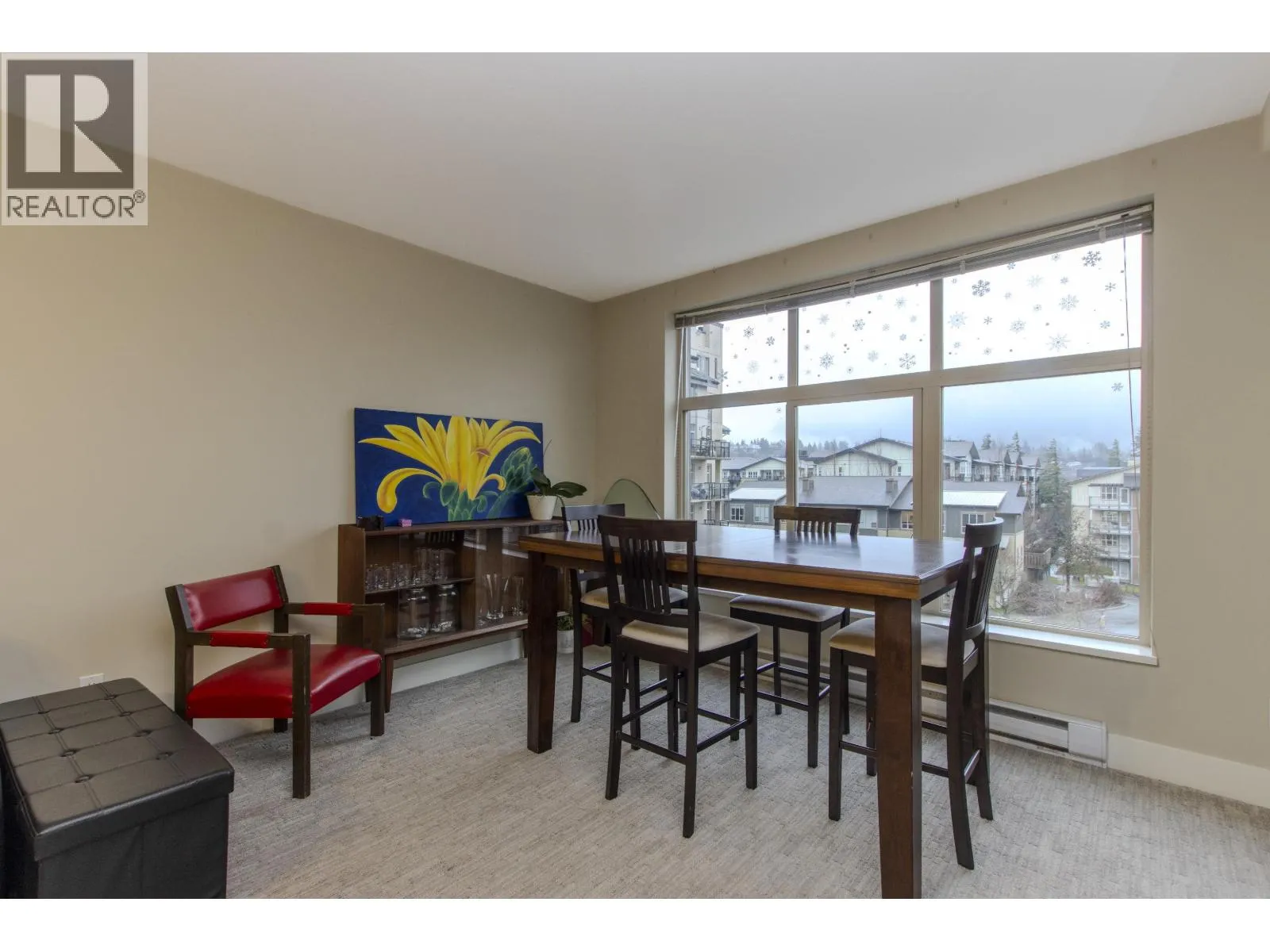 Welcome to Rockcliff, one of the very few CONCRETE buildings in Squamish. This 2 bed/2 bath condo is a corner unit with sweeping views of the Chief and surrounding mountains. Southwest facing letting in plenty of the sunlight. Very quiet inside with concrete between the walls and floors. Open kitchen looks onto the living area with a gas fireplace that warms the whole condo. Gaze at the skyline from the oversized balcony (just under 100 sq/ft). Primary bedroom has an ensuite and there is another 3 piece bath. Two parking spots underground are included, along with a storage locker. The building also has a bike room and a guest suite for visitors. Book a viewing! (id:27476)