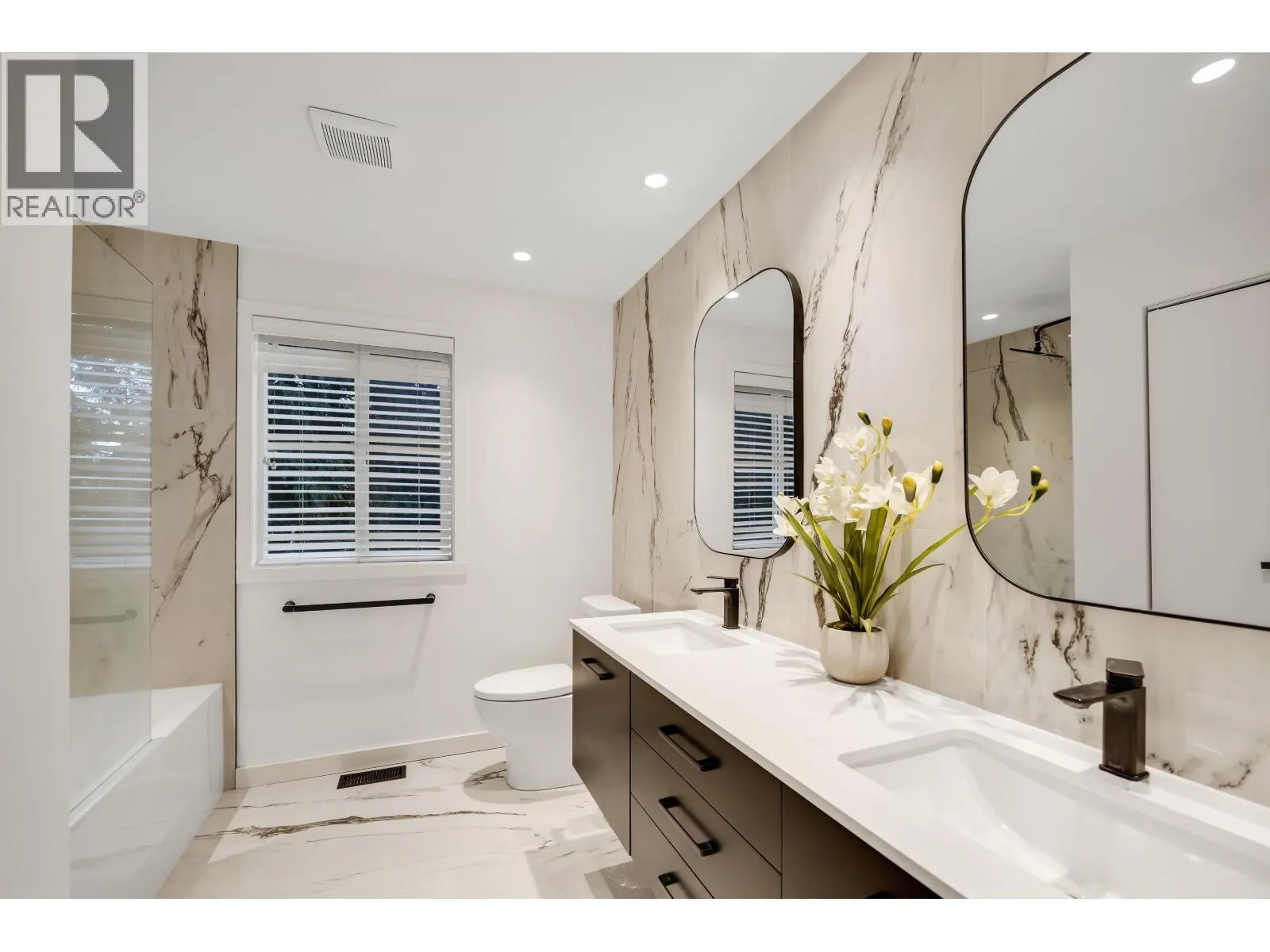 Beautifully renovated & thoughtfully designed, this versatile home offers 3 self-contained living areas with excellent rental income potential in a highly sought-after neighbourhood, just a block from the school. Surrounded by mature cedar trees, the property features a private backyard & a new deck ideal for relaxing or entertaining. The main home offers 3 spacious bedrooms, an updated gourmet kitchen, vaulted ceilings, recessed & dimmable lighting, plus custom California Closets. Additional living spaces include a two-level suite with a large kitchen, heated bathroom flooring, drive-in garage access & patio, as well as another self-contained area with 2 cozy bedrooms & a beautifully finished bathroom, perfect for guests or extended family. Ample parking & quality upgrades throughout complete this exceptional opportunity. (id:27476)