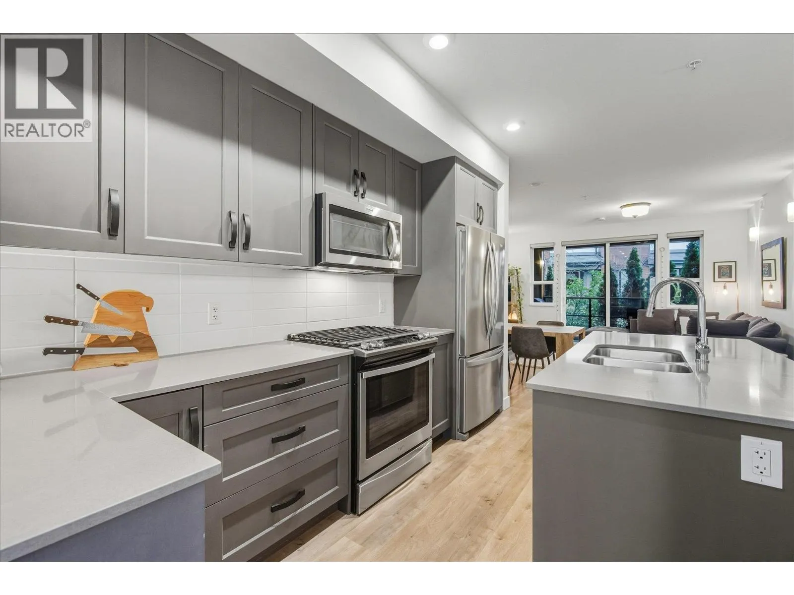 RARE two bedroom townhouse at Soleil in Coastal Village situated steps from the estuary on a quiet, private cul-de-sac! Beautiful modern townhouse with a great open plan living space with 9ft ceilings, SS appliances, quartz counters, shaker cabinets, gas range, large windows, two bedrooms + two full baths with east and west exposures. Coveted 2 parking stalls, large storage locker, common bike room plus in-suite storage. Part of a master-planned community situated next to trails in a peaceful setting yet close to all amenities Downtown, library, Farmer's market, marina + Feather Park at the waterfront. Enjoy living in this SW corner of Downtown with the estuary as your neighbour. Don't miss this gem! (id:27476)
