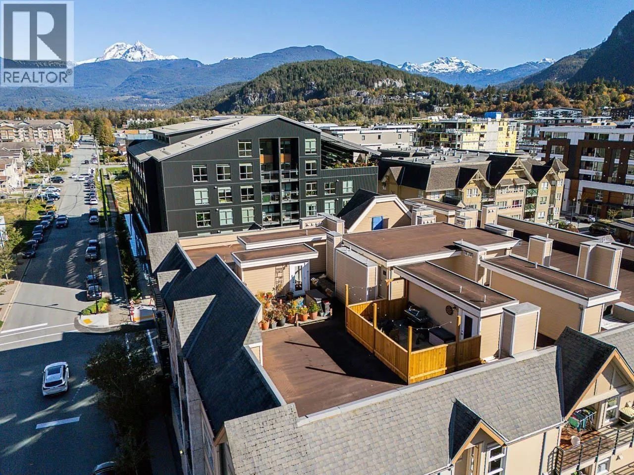 Best price in Squamish for a 2 bed/2bath, penthouse. Featuring a rooftop deck + balcony with beautiful mountain & waterfall views. All appliances replaced in the past 2 years. 1200 sqft. all rooms are spacious and will accommodate larger furniture. The Primary bedroom has a walk in closet & ensuite bath with tub & shower. Both bedrooms are similar in size with updated carpet. Loads of storage in the laundry room. Gas fireplace (included in strata fee).Convenient storage room across the hall. Main level bike storage and 1 covered parking spot.Larger dogs welcome (no dangerous breeds). A pleasure to show and extremely well kept! Feather Park beach, The Estuary, shopping and restaurants within a short walk of this great location, in the heart of the City. (id:27476)