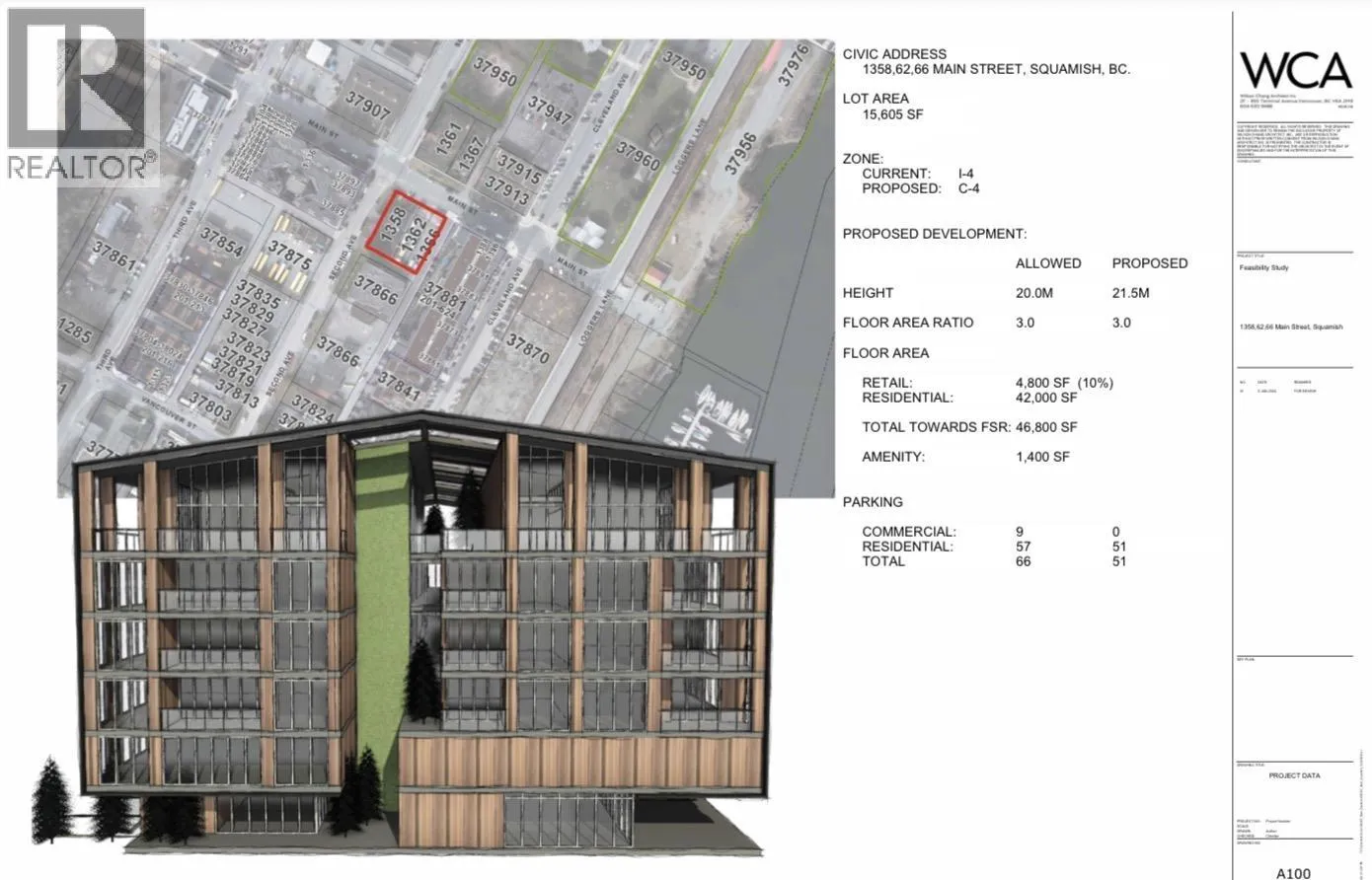 Prime Downtown Squamish Development Opportunity. An exceptional opportunity for investors and developers in Downtown Squamish! This 15,678 sqft site consists of three assembled lots, forming a 120'x130' full municipal block with road and lane access on all four sides. Currently zoned I-1, the property is designated C4 Mixed-Use in Squamish's Official Community Plan (OCP), allowing for 3.0 FAR. Conceptual plans and discussions with the District of Squamish support a six-story mixed-use strata development and ideal for purpose built rental building, hotel or office building. Phase 1 environmental and recent survey completed'site is clean and ready to go! Current OT house and fenced/secured lot can provide stable income until the shovels go in the ground. Located just one block from the ocean and walking distance to shops, cafés/restaurants, healthcare, library, and Squamish's world-class trail network. Transit just steps away. Don't miss this rare investment opportunity. Call today for more details! (id:27476)