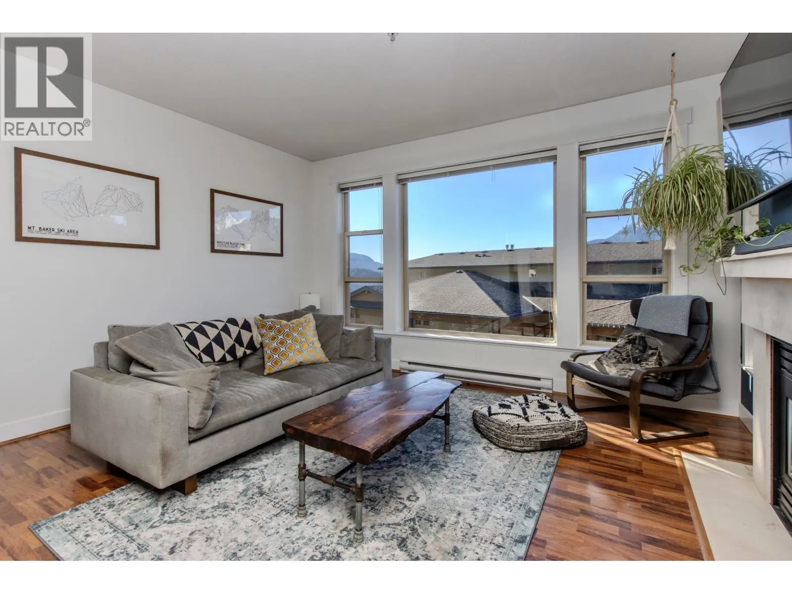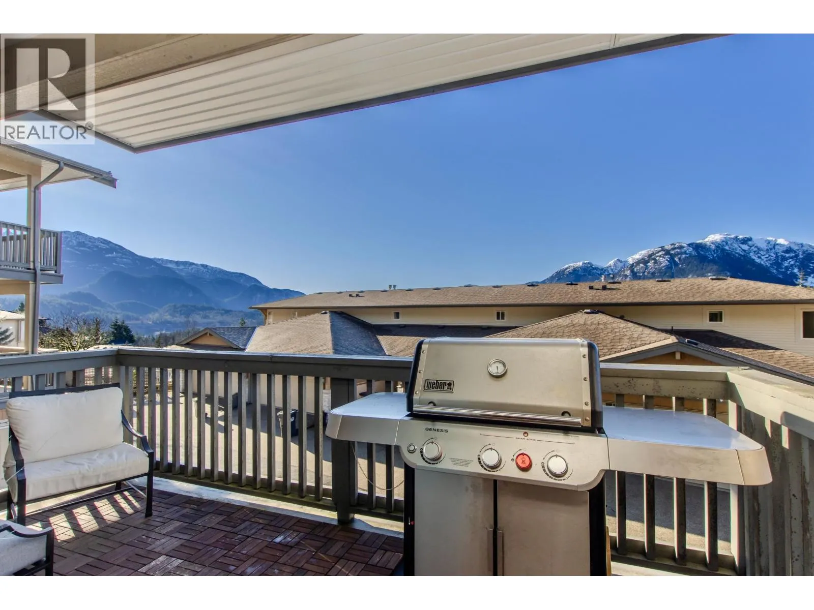 Rare end-unit townhome in Seasonview with panoramic views and exception natural light. Windows on three sides create a bright, duplex-like feel with stunning outlooks to the Tantalus Range, Sky Pilot, and Howe Sound. The upper level features a spacious primary suite with private view deck, dual walk-in closets, and a spa-style ensuite with soaker tub, seperate shower, and mountain-view window. Two additional bedrooms include generous closets, one with ocean and mountain views and a cozy sitting nook, plus a renovated full bath. The main floor is ideal for entertaining with a double-sided fireplace, large U-shaped kitchen, bonus sitting area overlooking green space, powder room, and BBQ deck. Downstairs offers a flexible 4th bedroom/mudroom with exterior access, oversized laundry/storage. (id:27476)