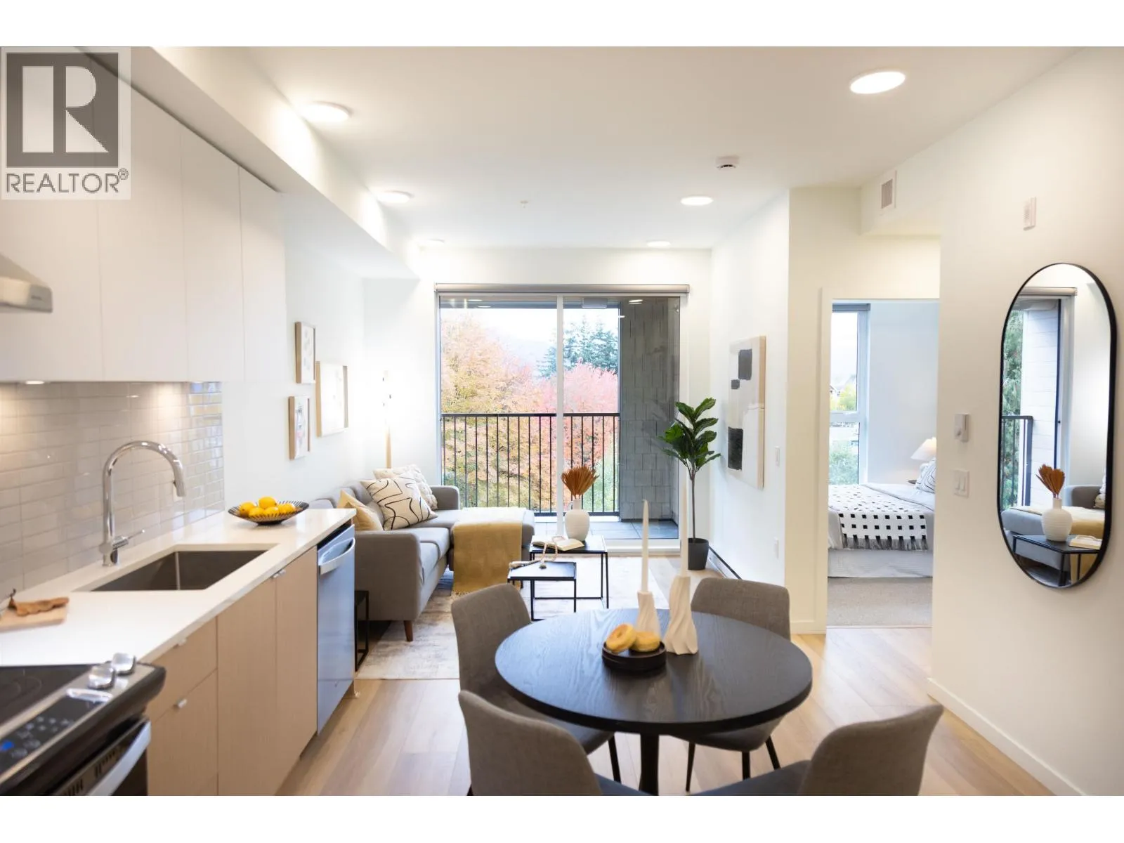 Welcome home to The Aegean, perfectly situated in the heart of downtown Squamish where urban convenience meets world-class outdoor adventure. Step outside your door to enjoy shopping, dining, the library, marina, estuary trails, breweries, yoga studios, business services and endless hiking and biking routes. This bright and thoughtfully designed 1 bedroom + den + flex home showcases modern architecture with clean lines and a Scandinavian-inspired light palette. The airy open-concept kitchen features sleek cabinetry, and an energy-efficient stainless-steel appliance package making it ideal for everyday living and entertaining alike. Expansive windows flood the space with natural light, while the covered deck captures stunning views that celebrate Squamish´s stunning mountain backdrop. (id:27476)