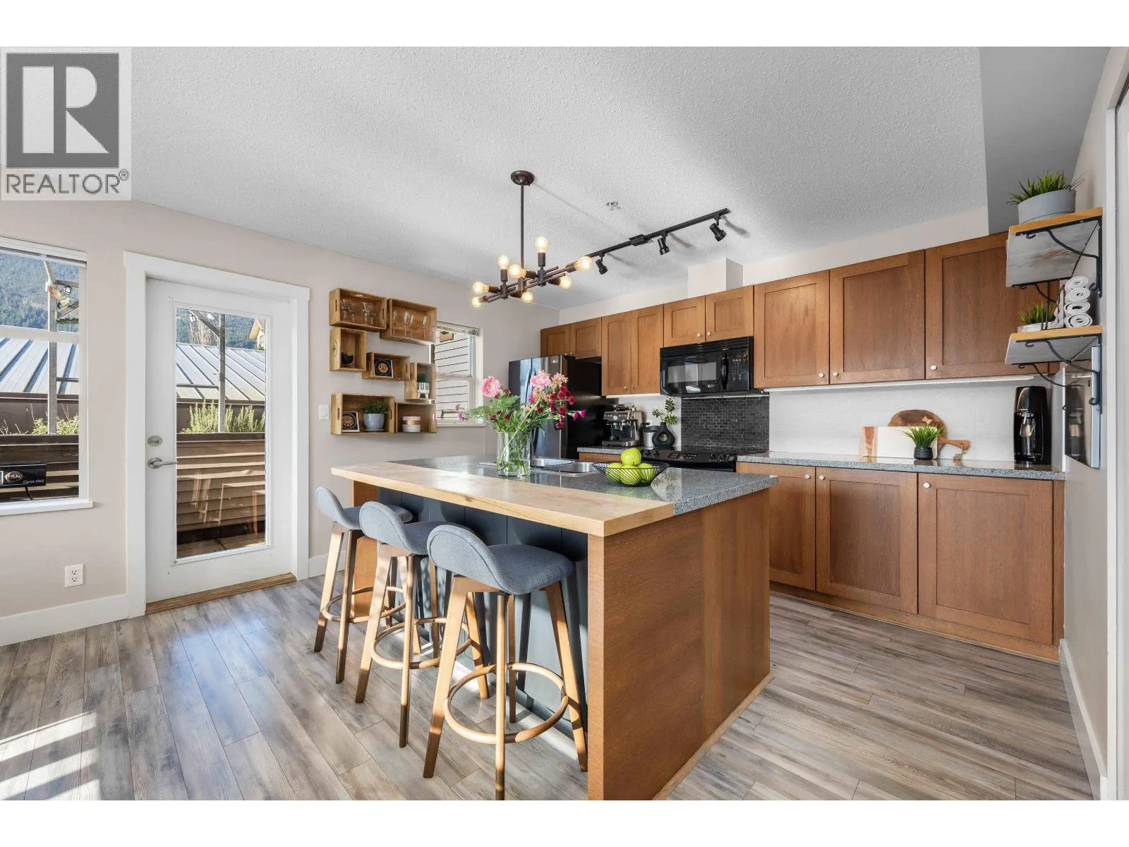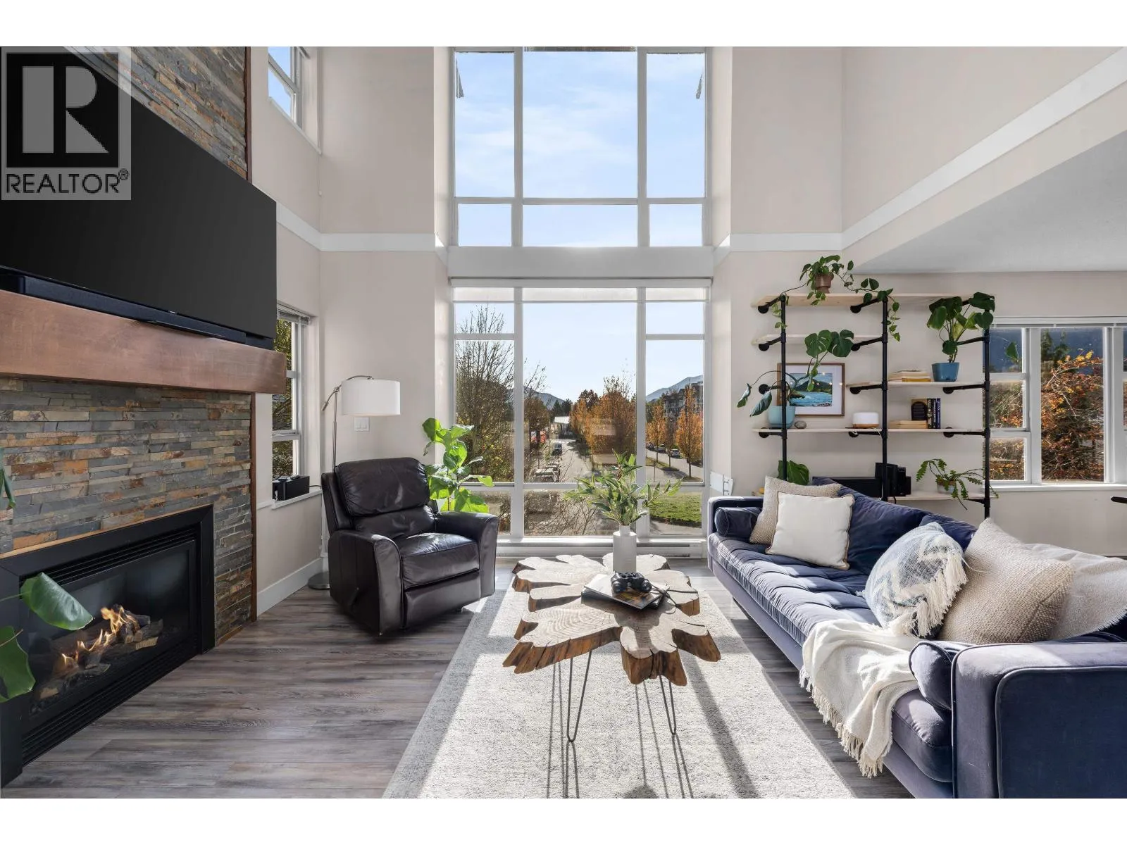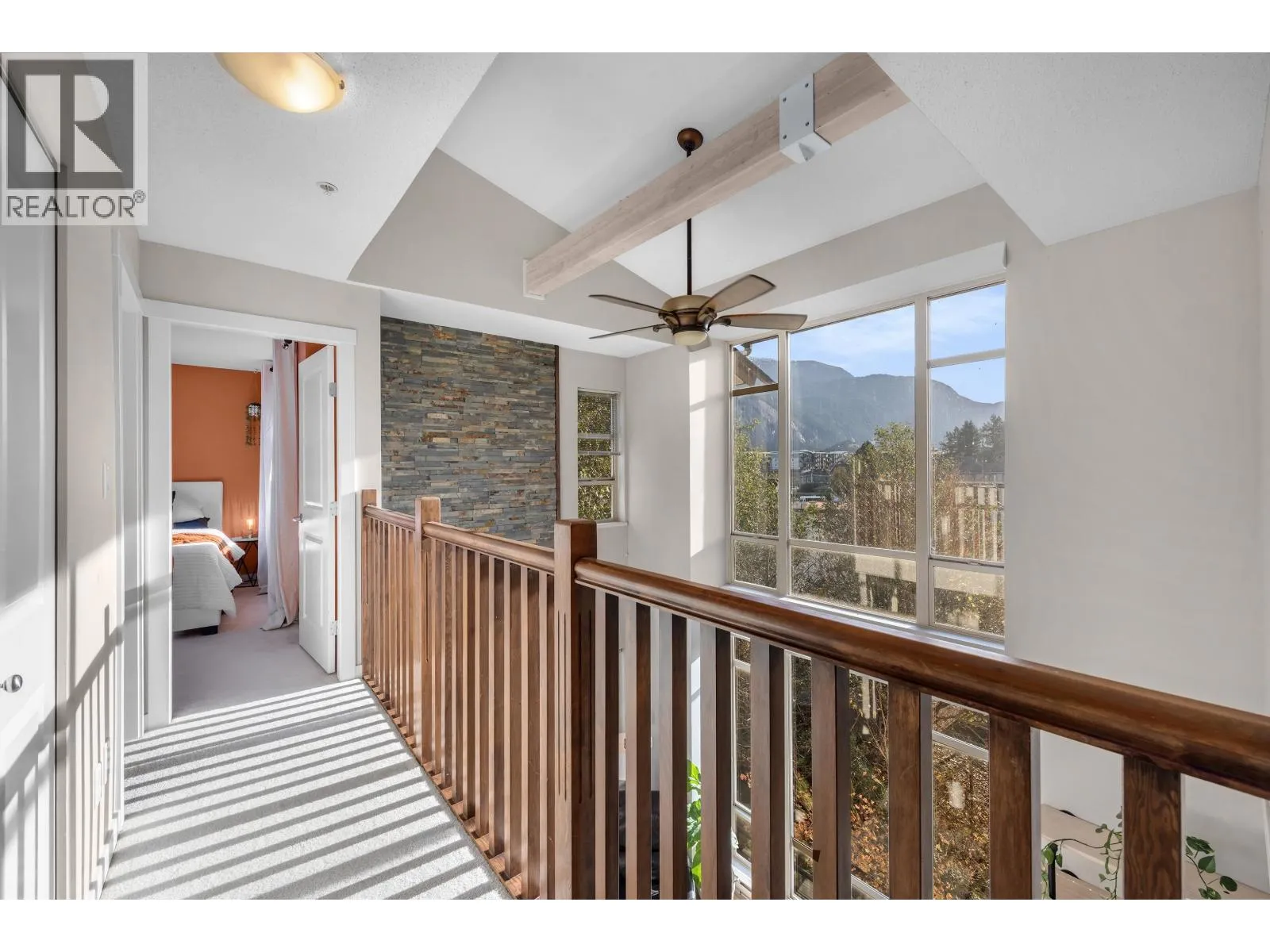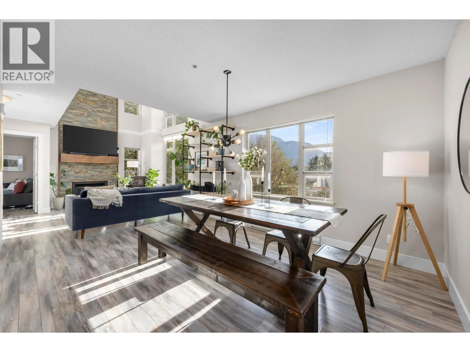 One of Squamish's most unique townhomes, this three-bedroom, two-bath home features soaring 22-foot lofted ceilings and lives more like a detached home than a townhouse. Enjoy incredible 360° mountain views, windows in every direction, and three private decks and patios that capture sunlight all day long. The chef's kitchen flows seamlessly into the open-concept living space, while floor-to-ceiling glass brings the mountains right into your home. The garage is also incredible - loads of space for your gear, a gym and your vehicle. If you're tired of ordinary townhomes, this is a must-see-there's truly nothing else like it. (id:27476)