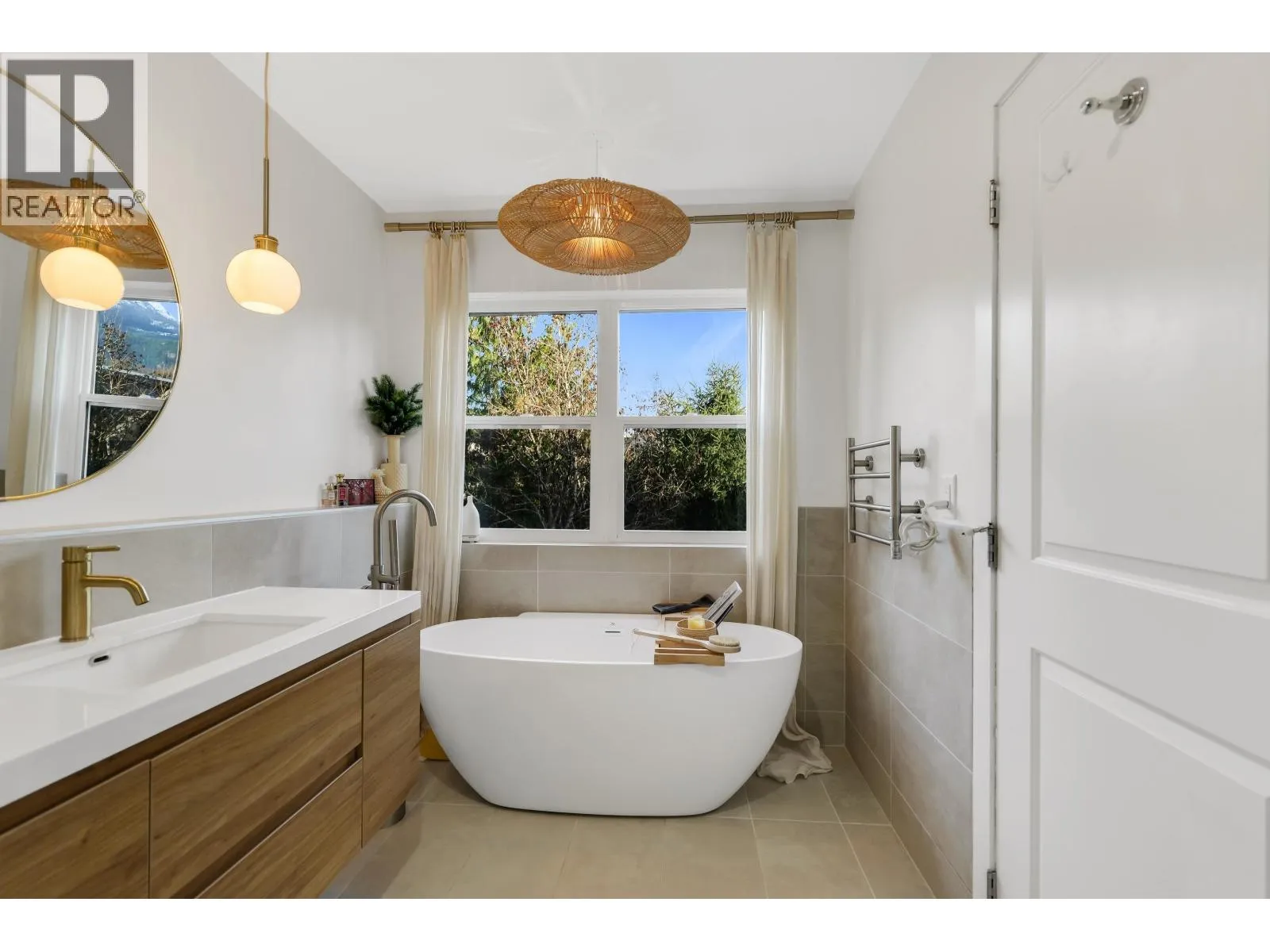 One of the best locations in Amblepath, lovely custom built home, open floor plan with coat closet, powder room and flex room at front entrance, perfect for home office, family room or formal dining area, kitchen boasts large window, granite counters, wood cabinets, new appliances, large living room with cozy gas fireplace plus built-in work station and shelves, new 3/4" oak engineered hardwood floors, high ceilings on main, master suite plus two bedrooms and full bathroom above, additional flex rooms below can be used for storage, hobbies and more. Yard can be fenced for anyone with small children or pets. Private greenspace setting with a hot tub, large garage and additional parking. Open parking for three additional vehicles. Amblepath has community gardens & visitor parking. (id:27476)