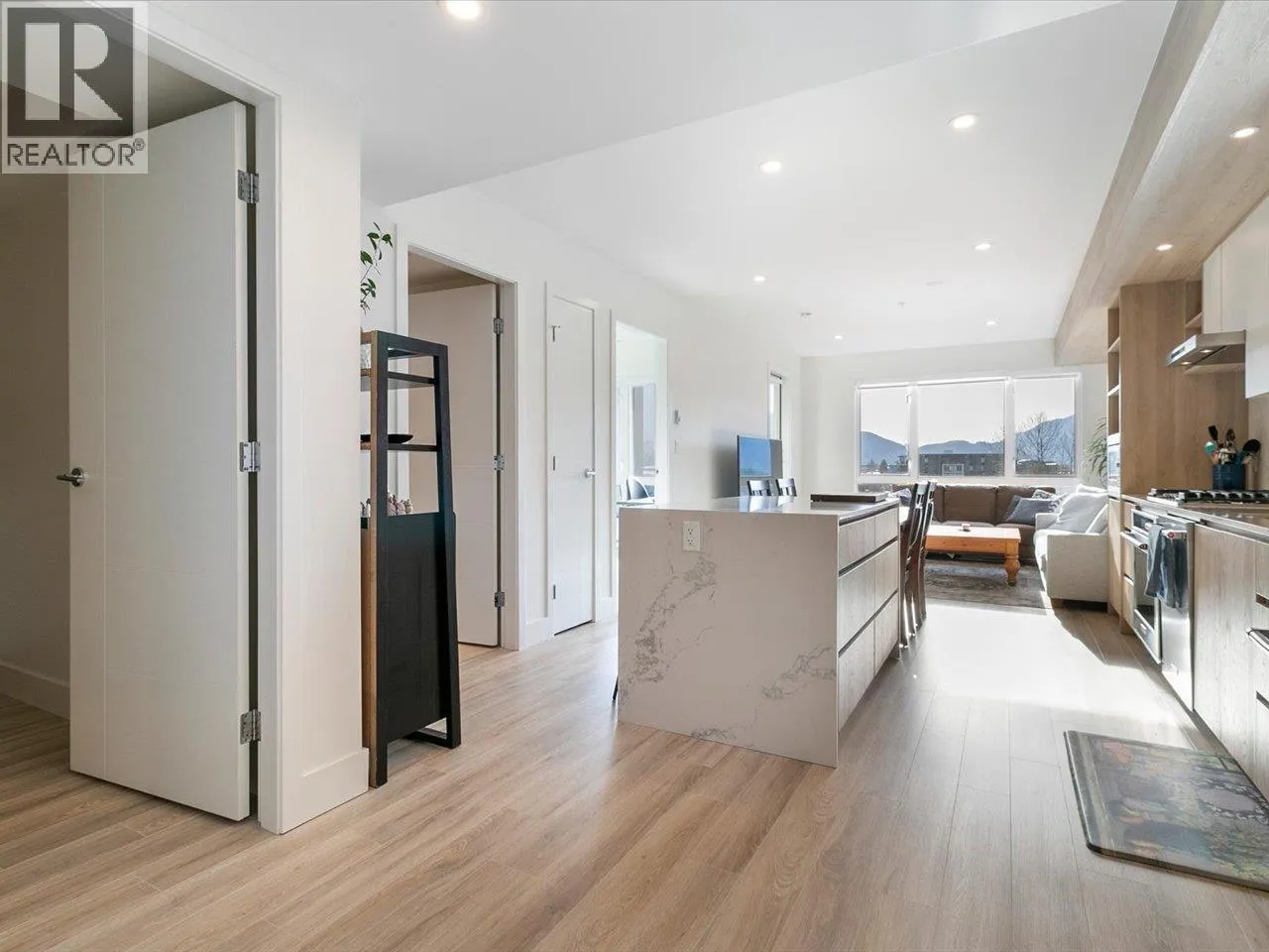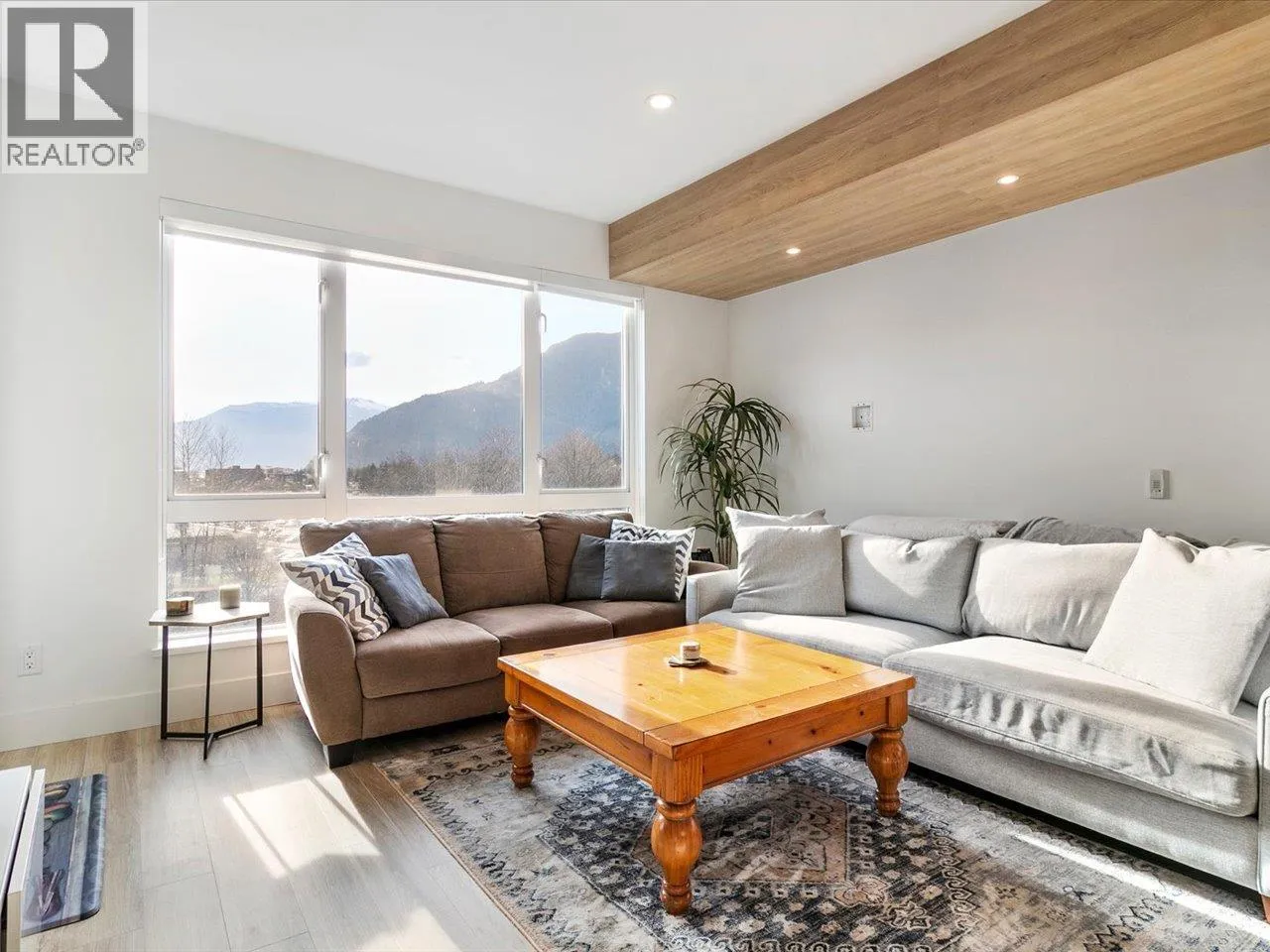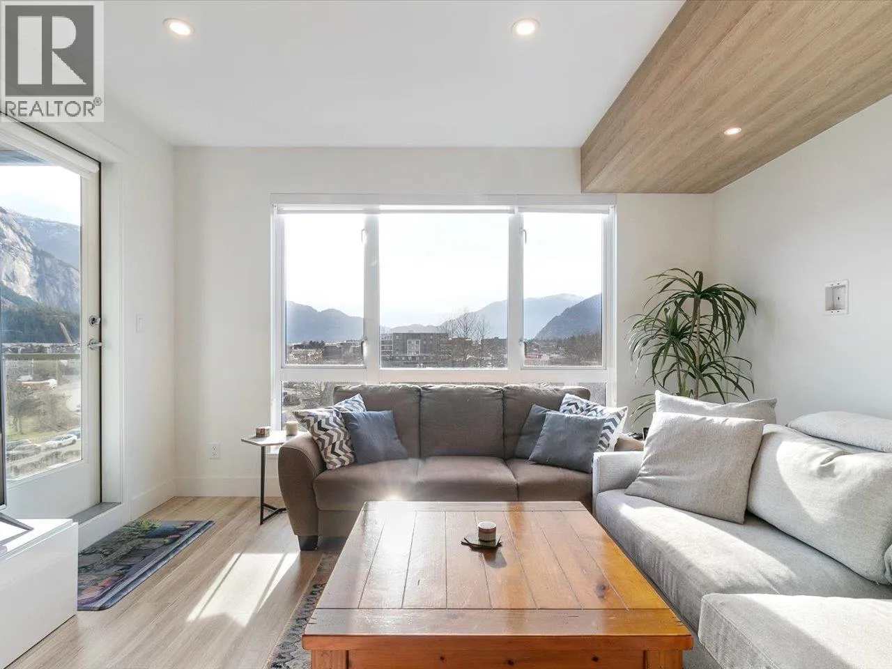Welcome to Jumar, ideally located in the heart of downtown Squamish. This bright south-facing 823 sq. ft. two-bedroom, one-bathroom home is in near-new condition and offers a highly functional layout with quality finishes throughout. The modern kitchen features a built-in island and premium KitchenAid appliances, perfect for everyday living and entertaining. Step outside to your private patio and enjoy beautiful views of the Chief and downtown Squamish. Conveniently located within walking distance to schools, grocery stores, restaurants, and local amenities, making it easy to enjoy everything the community has to offer. Includes one parking stall and two storage lockers, a rare and valuable bonus in a central location. Open House 2-4PM Saturday (id:27476)
