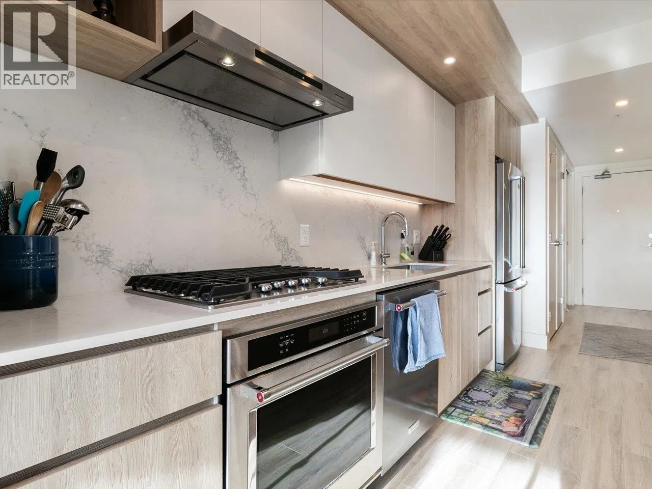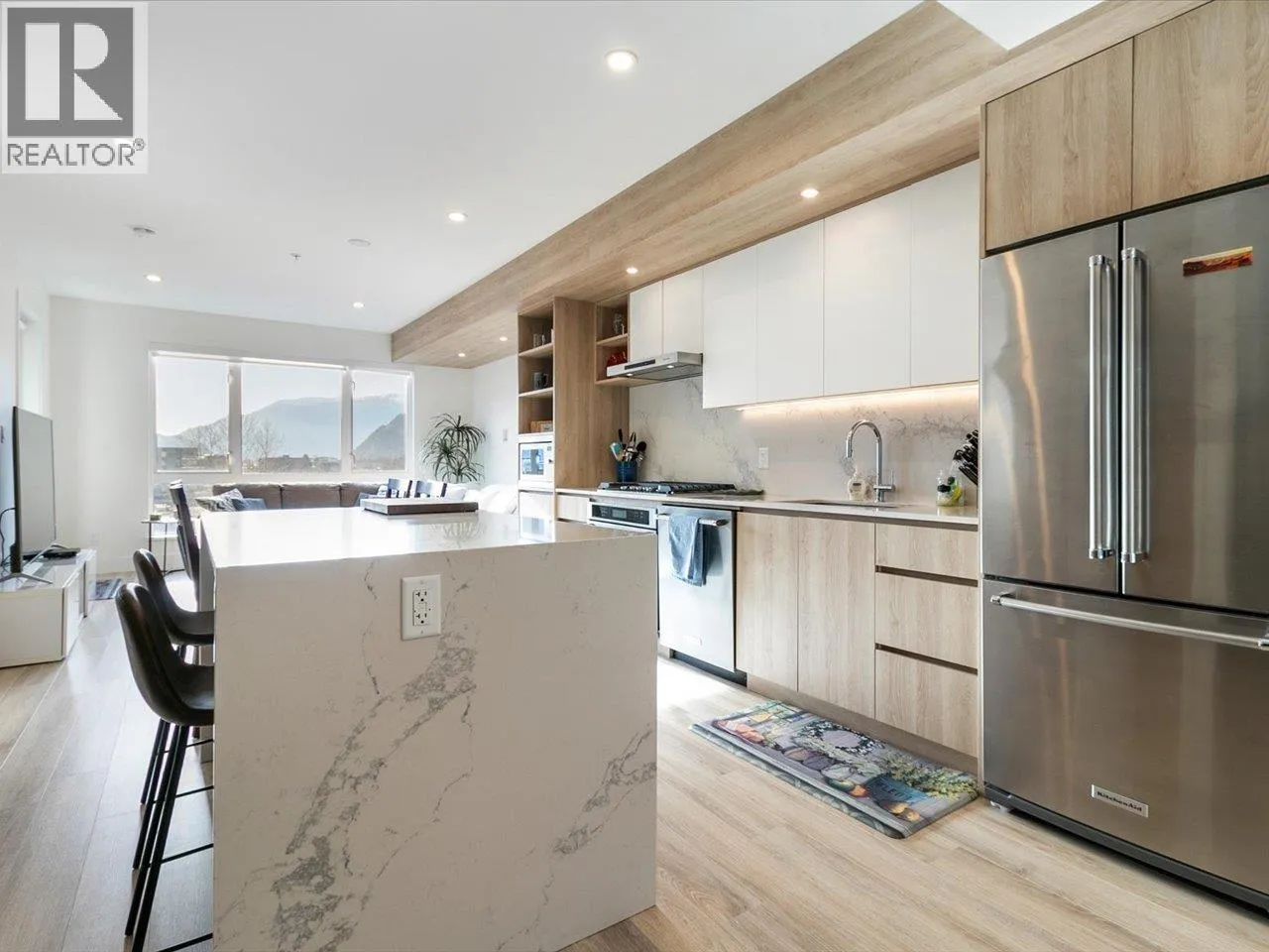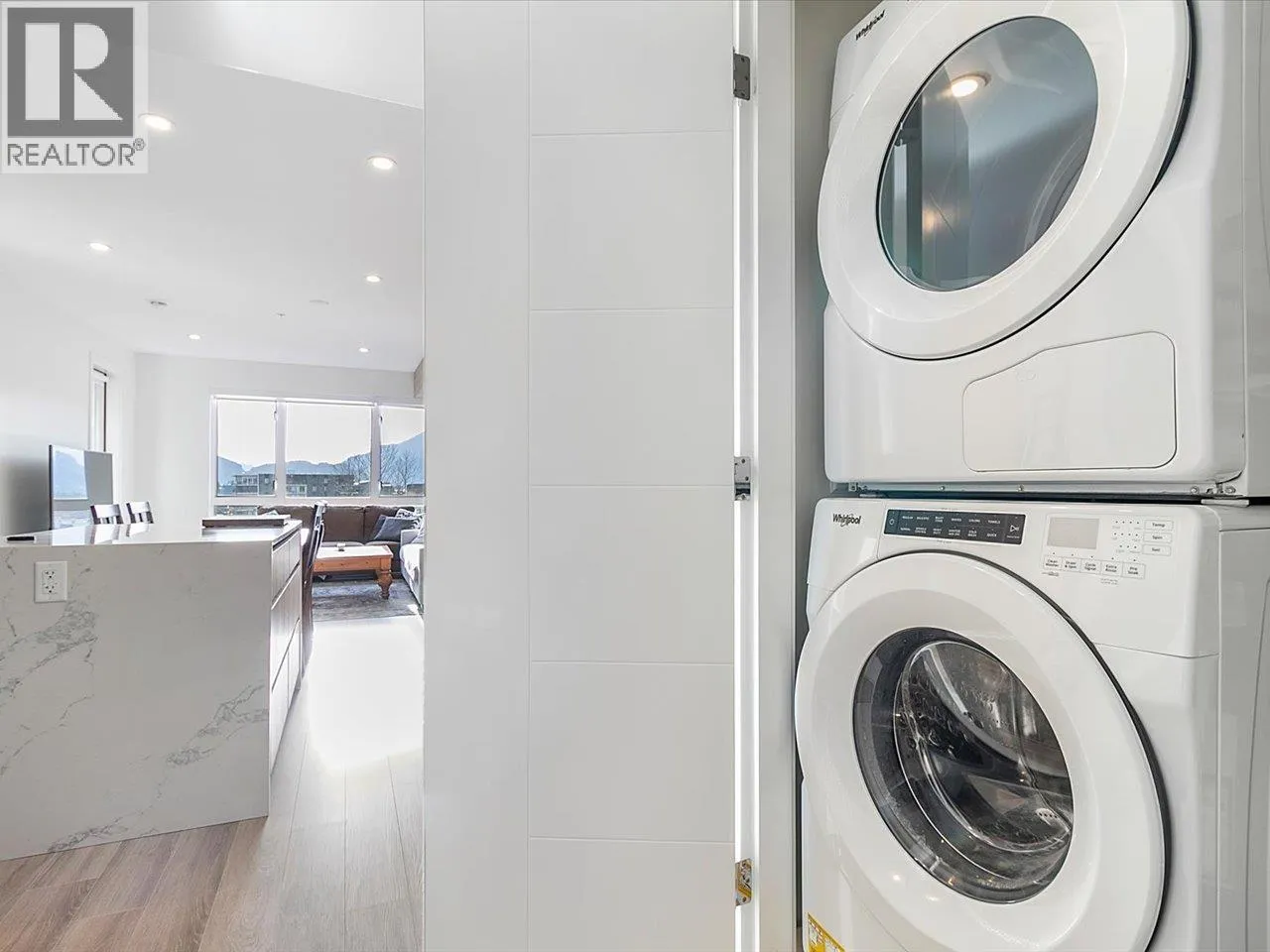 Welcome to Jumar, ideally located in the heart of downtown Squamish. This bright south-facing 823 sq. ft. two-bedroom, one-bathroom home is in near-new condition and offers a highly functional layout with quality finishes throughout. The modern kitchen features a built-in island and premium KitchenAid appliances, perfect for everyday living and entertaining. Step outside to your private patio and enjoy beautiful views of the Chief and downtown Squamish. Conveniently located within walking distance to schools, grocery stores, restaurants, and local amenities, making it easy to enjoy everything the community has to offer. Includes one parking stall and two storage lockers, a rare and valuable bonus in a central location. Open House 2-4PM Saturday (id:27476)