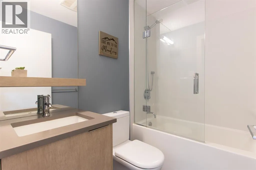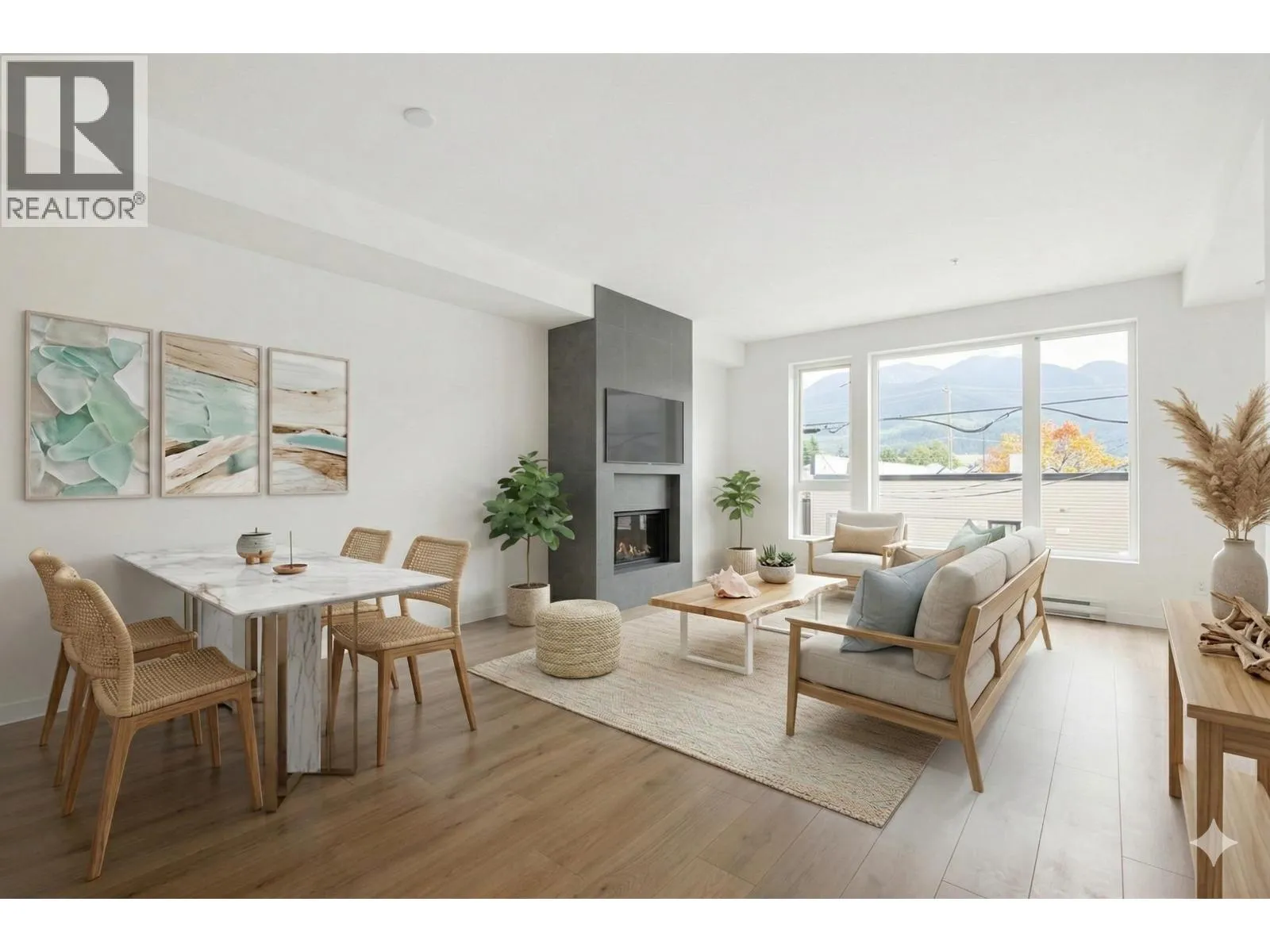 Discover life at Cleveland Gardens! This wide and spacious corner unit spans 1,060 sq. ft. with 2 bedrooms, 2 bathrooms in a desirable split floorplan configuration. The modern kitchen is a chef´s dream, featuring stainless steel appliances, a gas range, and a large island ideal for entertaining. Cozy up by the gas fireplace or step out to your covered balcony with views of the coastal mountains. The wide floorplan makes this not only a sleek and beautiful unit, but also an incredibly comfortable and versatile place to call home. Additional perks include tons of in-suite storage, 2x bike/storage spaces, secure parking and a rooftop patio with 360-degree mountain views. Located in downtown Squamish, close to schools, trails, waterfront/marina, shops, cafes & more. This is a must-see unit! (id:27476)