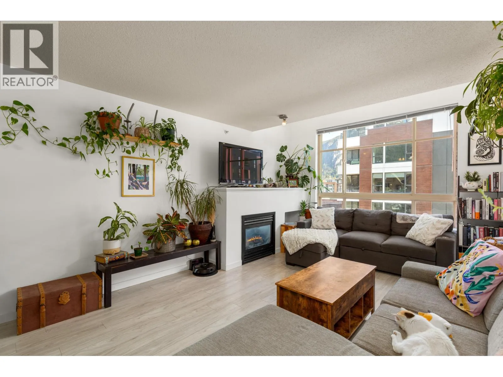Experience top-floor living in the heart of downtown Squamish. This bright, south-east facing home gets plenty of natural light, and offers peek-a-boo views of the Stawamus Chief. The thoughtful layout includes two generously sized bedrooms. The primary suite is equipped with convenient "his and hers" closets. Enjoy morning coffee on your private patio or step outside to find Squamish´s best bakeries, cafes, and shops just seconds away. Located in a well-managed building with recently refreshed common areas, this home includes one parking stall and storage locker. Combining mountain charm with urban convenience, it´s the perfect basecamp for the West Coast lifestyle. (id:27476)