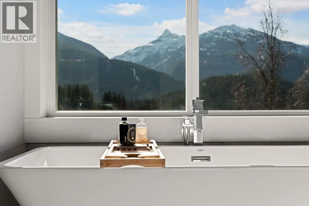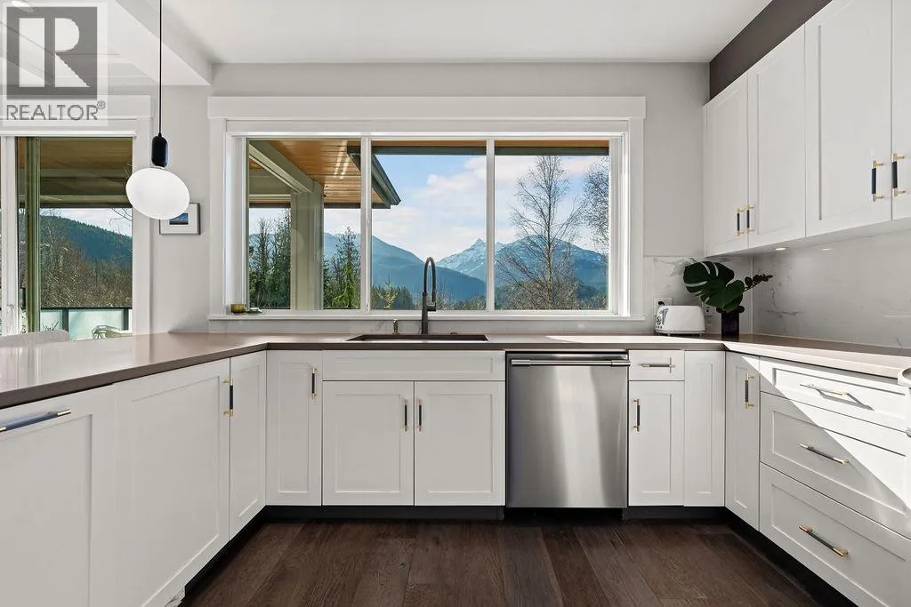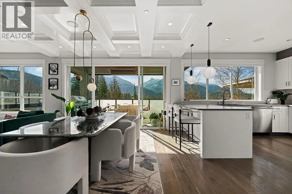 Located on a quiet cul-de-sac in prestigious University Heights, this exceptional home offers the perfect blend of luxury, space, privacy, and the Squamish lifestyle. The bright open-concept main living area is flooded with natural light, creating an inviting space ideal for everyday living and entertaining. Offering over 3,000 sq ft, the home features 5 bedrooms and 4 bathrooms, including a self-contained one-bedroom legal suite-perfect for extended family or a mortgage helper. Upstairs are four spacious bedrooms, including a beautiful primary suite with a spa-inspired ensuite. Step outside to a sunny south-facing deck and enjoy a stunning resort-style pool overlooking breathtaking mountain views-an incredible setting for relaxing or hosting guests. The home also features a Control4 smart home system with integrated surround sound. Geothermal heating and cooling provide year-round comfort and efficiency. Ideally located steps to Capilano University, schools, and endless hiking and biking trails. (id:27476)