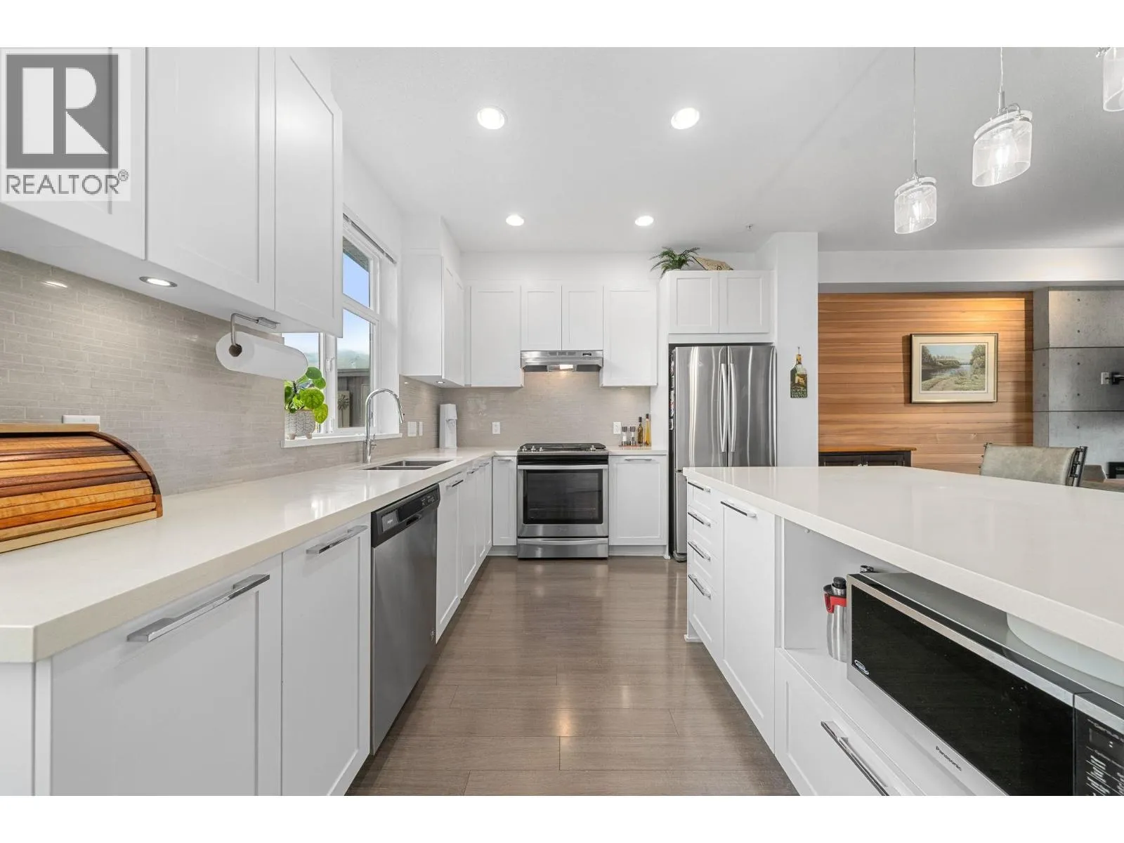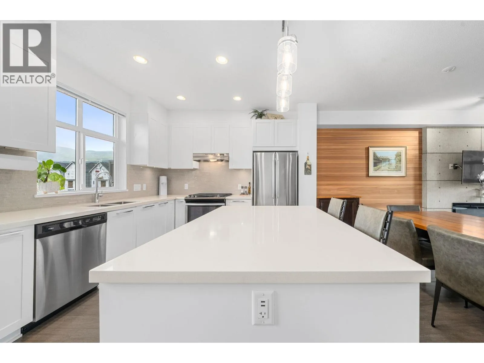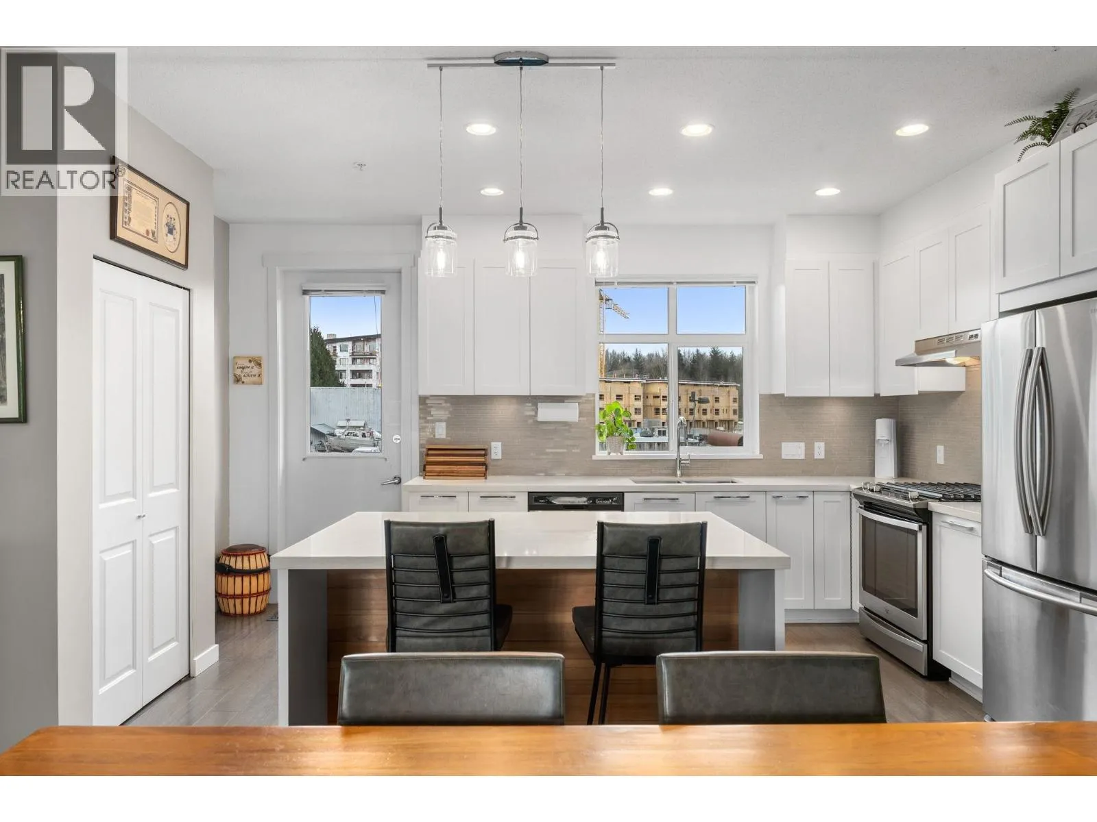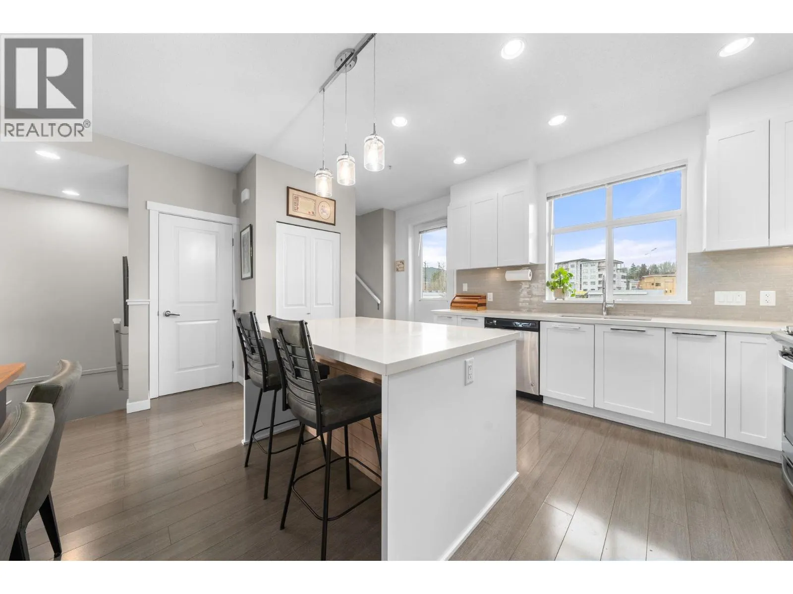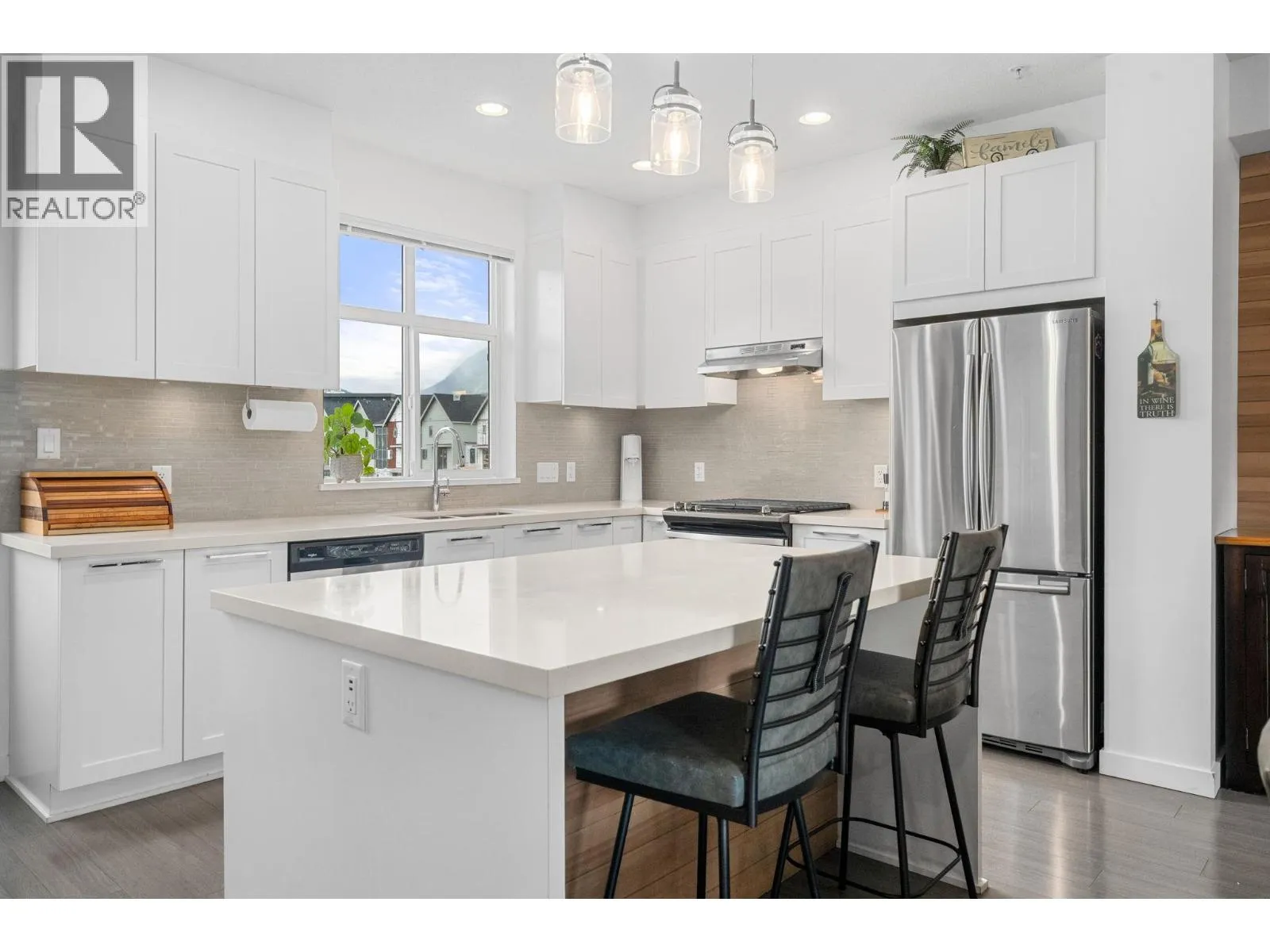 Welcome to Seven Peaks by Polygon, a three bedroom, two and a half bathroom townhome in a prime Squamish location. The bright open concept main floor features 9 foot ceilings, large windows, and a well appointed kitchen with stone countertops, stainless steel appliances, and a generous island perfect for everyday living and entertaining. Upstairs, the primary bedroom features impressive 10 foot ceilings and an ensuite, while two additional bedrooms offer flexible space for family, guests, or a home office. The home also includes a massive side by side double garage with plenty of room for vehicles and all your gear. Located just steps from Brennan Park Recreation Centre, soccer fields, the BMX pump track, the Corridor Trail, and endless outdoor recreation. (id:27476)