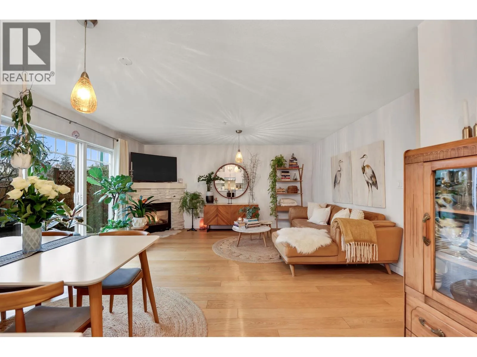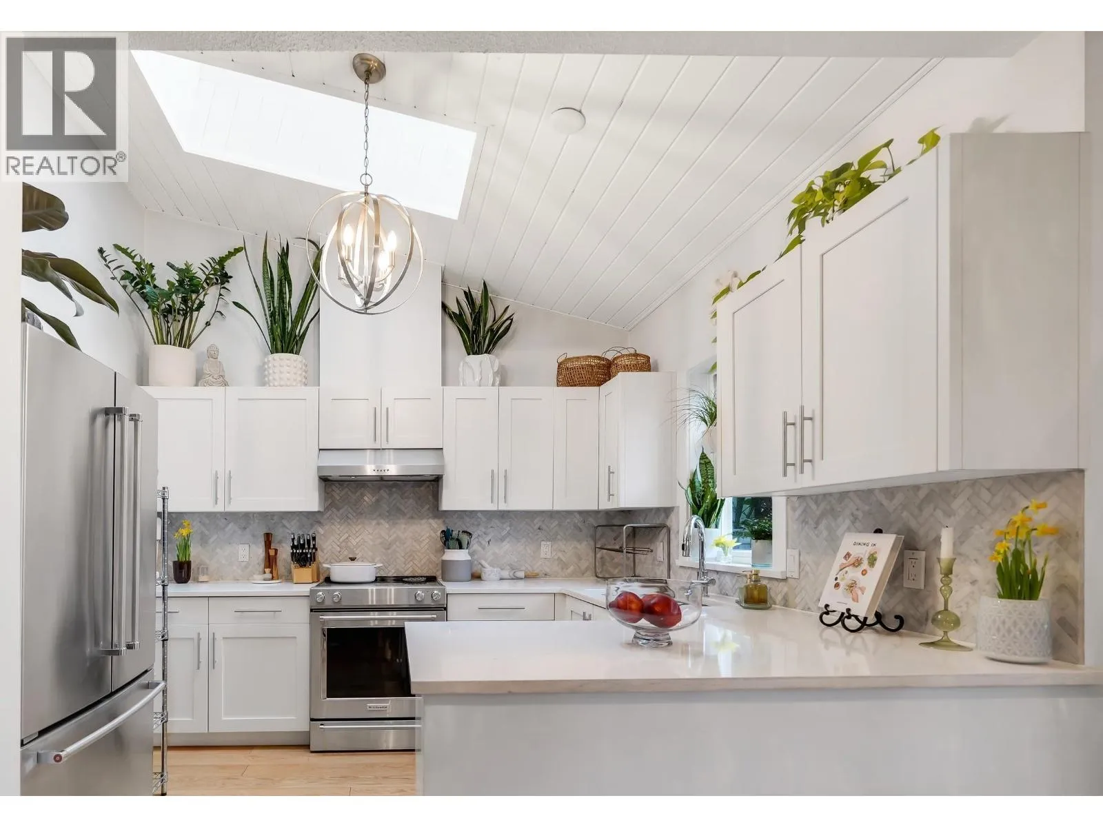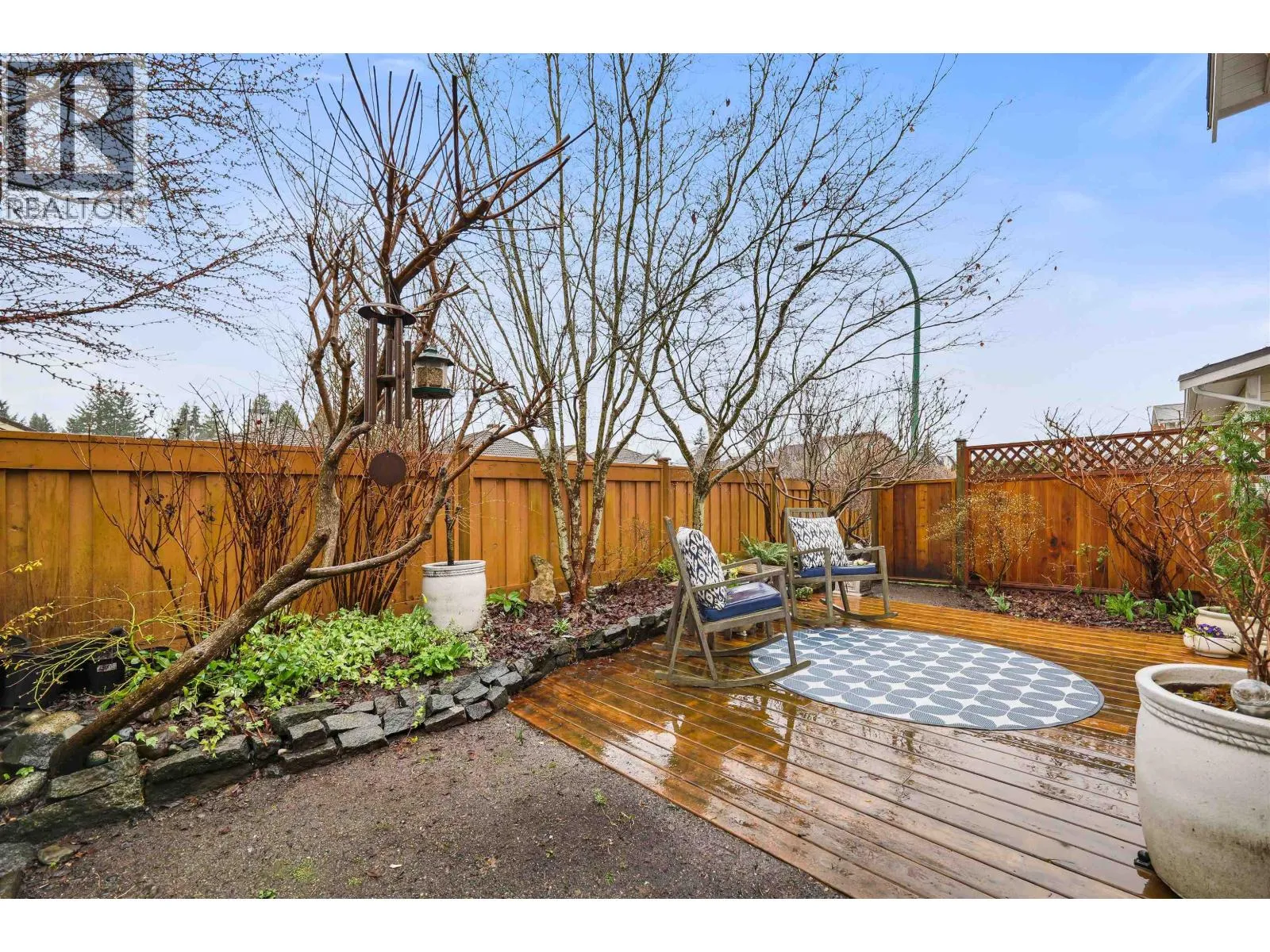 Rarely available 'Cedar Plan" home in Willow Village with over 400 square ft of sunny, south-facing yard. Beautifully renovated with designer flair, featuring wide plank clear oak flooring and a stunning kitchen with quartz counters, vaulted ceiling, and skylight that fills the space with natural light. The sought-after layout offers a larger living room and a serene primary bedroom with opposite windows which beautifully light the space. The fully landscaped backyard features a large cedar sundeck and private fencing-your peaceful outdoor sanctuary. Proactive strata has completed roofs, skylights, gutters, windows, sliding doors, and front doors. Low strata fees and a generous double garage with ample custom storage make this a perfect home for years to come. (id:27476)