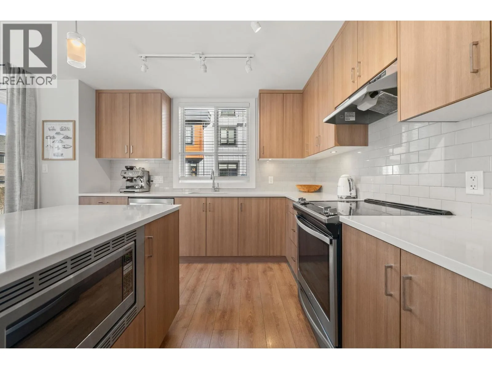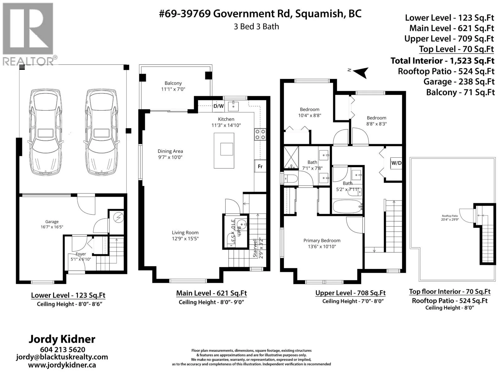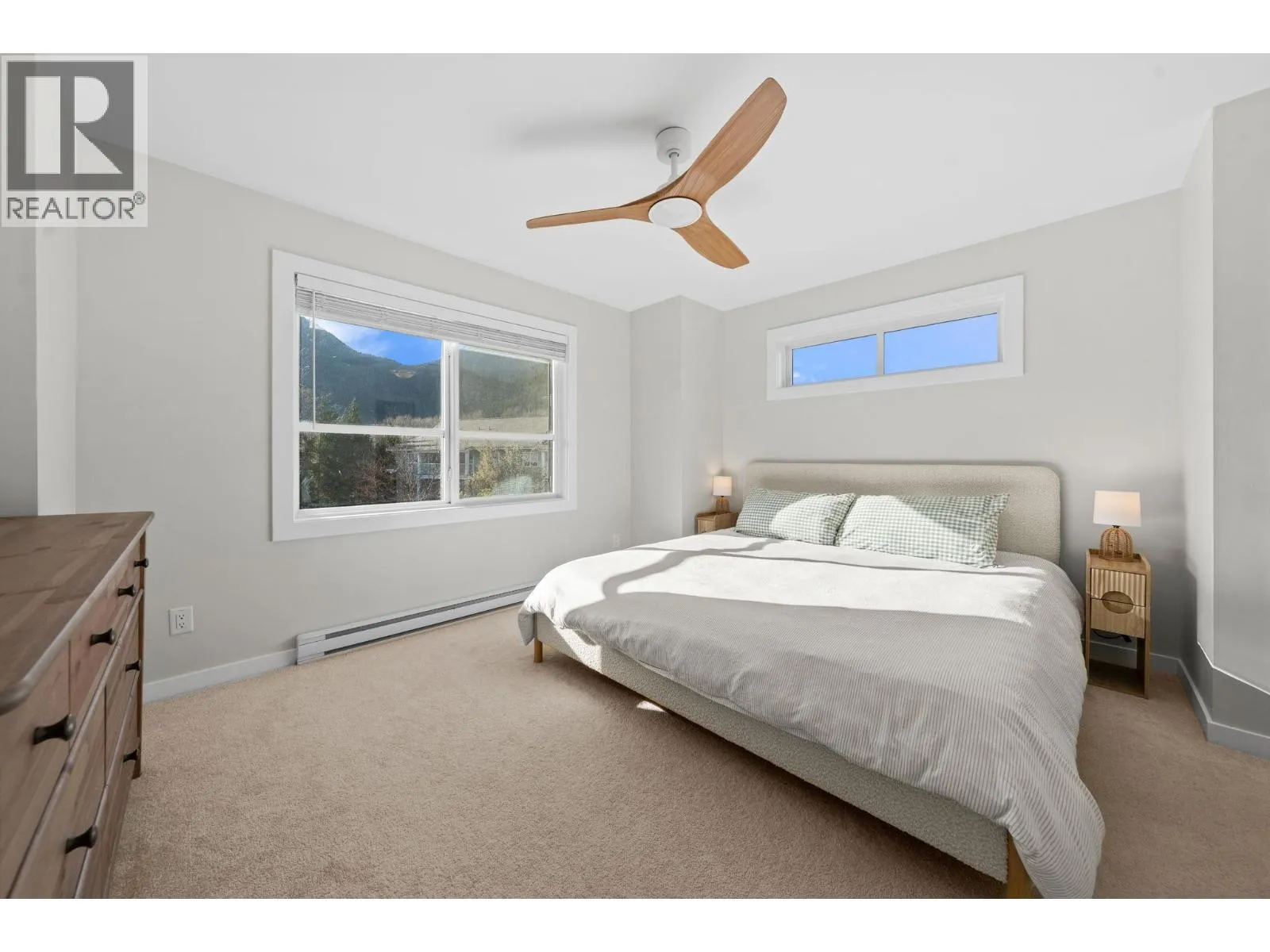 Welcome to one of the most sought after units in the complex, offering the largest floorplan and one of the only homes with a 25 ft covered two car driveway with 8.5 ft clearance, plus a heated, finished garage. This true end unit is filled with natural light in a quiet, private setting just steps from the Squamish River. The main floor features 9 ft ceilings and a bright open layout with a kitchen offering custom cabinetry, quartz countertops, a large island, and stainless steel appliances with balcony access. Smart home features add comfort throughout. Upstairs includes a primary bedroom with walk through closet and ensuite, plus two bedrooms and a full bath. Enjoy a 600 square ft rooftop deck with 360 degree mountain views. (id:27476)