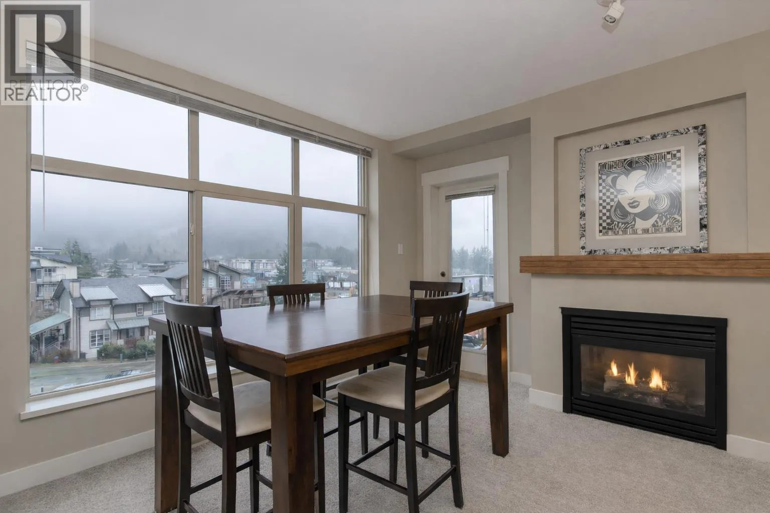 Welcome to Rockcliff, one of the very few CONCRETE buildings in Squamish. This 2 bed/2 bath condo is a corner unit with sweeping views of the Chief and surrounding mountains. Southwest facing letting in plenty of the sunlight. Very quiet inside with concrete between the walls and floors. Open kitchen looks onto the living area with a gas fireplace that warms the whole condo. Gaze at the skyline from the oversized balcony (just under 100 sq/ft). Primary bedroom has an ensuite and there is another 3 piece bath. Two parking spots underground are included, along with a storage locker. The building also has a bike room and a guest suite for visitors. Book a viewing! (id:27476)