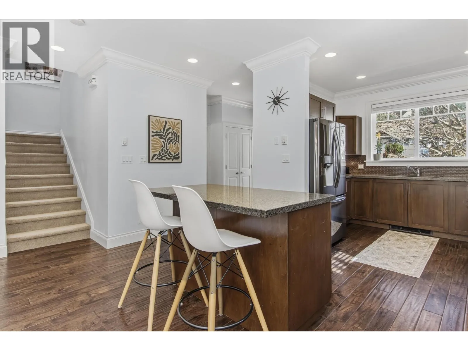 Craftsmanship & thoughtful design together create this perfect family home. Set on a sunny 10,000+ square ft lot backing onto a forest offers privacy & tranquility. Designed for both everyday living & entertaining, the outdoor space is exceptional. A fenced yard, large deck & covered BBQ area for year round use, a hot tub and fire pit area. The home features hardwood & heated floors, a natural gas fireplace, large well appointed windows & elegant floor/cove moldings. The kitchen is stylish & functional with granite countertops, new appliances & the breakfast island, perfect for gatherings! Upstairs, the open family room can also be a rec room & 3 bedrooms with impressive closets offering plenty of space for a growing family. Skylights throughout the second floor of this home brightens every corner. An oversized double garage provides ample room for vehicles, gear, and storage, with convenient access to a large crawl space. Located in a quiet, family-friendly neighbourhood access to an extensive trail network! (id:27476)