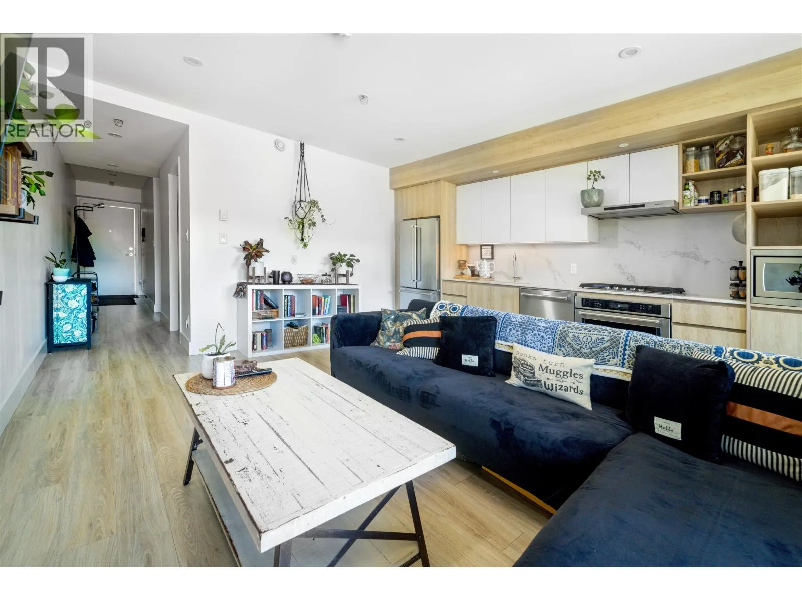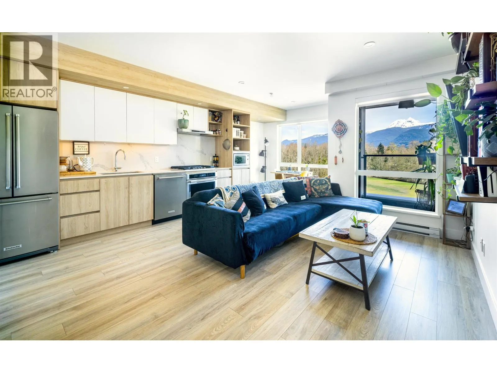 Top-floor penthouse at Jumar with jaw-dropping views of Diamond Head and Garibaldi Park! This bright 1-bedroom plus den home offers an open-concept layout that maximizes light and scenery. The upgraded kitchen shines with premium KitchenAid appliances, gas range, and a striking full-slab backsplash, while durable laminate flooring flows throughout. A smart flex laundry for added storage. Enjoy modern mountain living in a pet- and rental-friendly building, complete with 1 parking stall and 2 x storage locker. Step outside to downtown Squamish´s best trails, cafés, markets, and dining-everything you love about the Sea to Sky lifestyle at your doorstep. An incredible opportunity for first-time buyers, investors, or anyone seeking a stylish adventure-ready home. (id:27476)