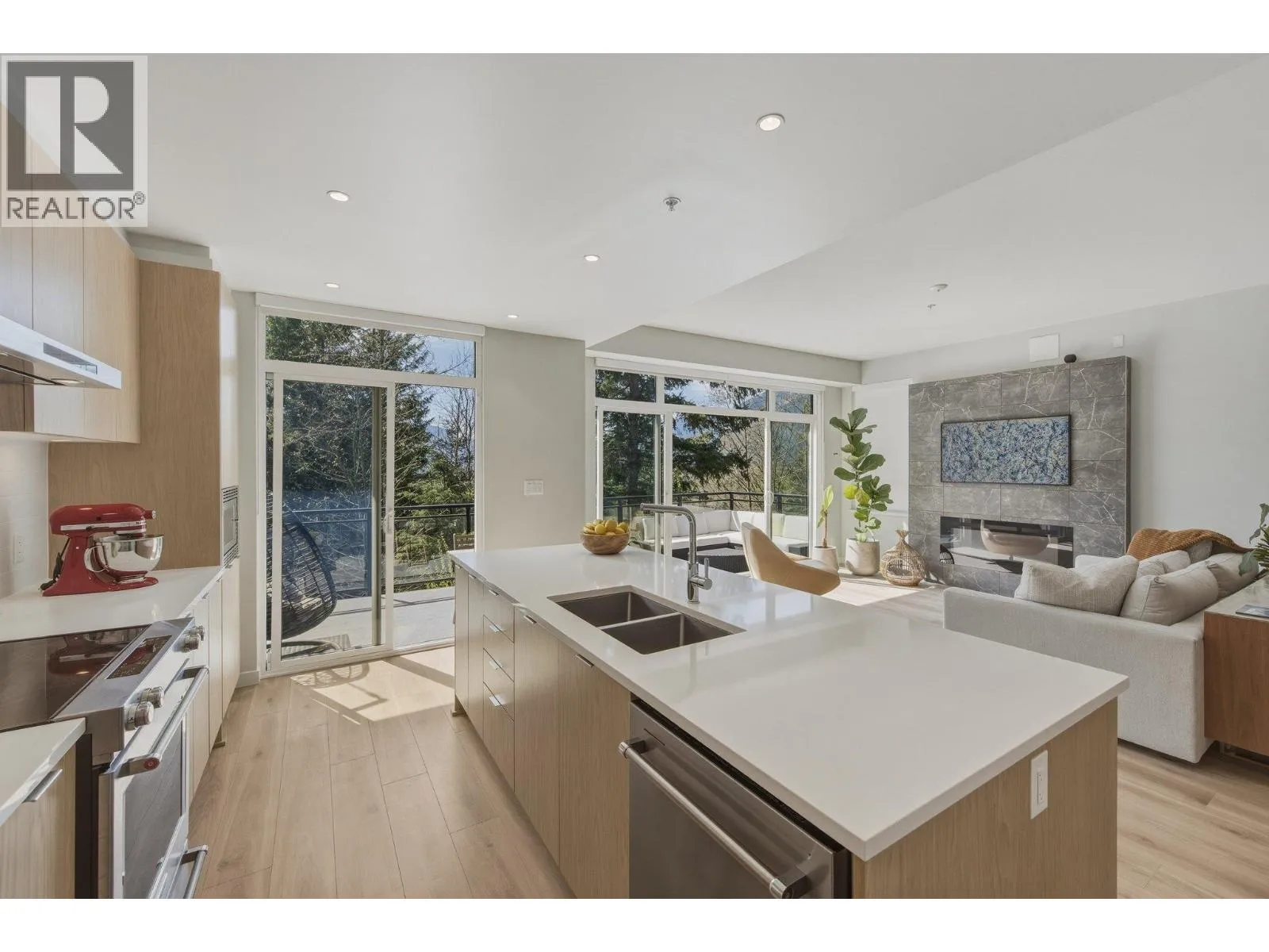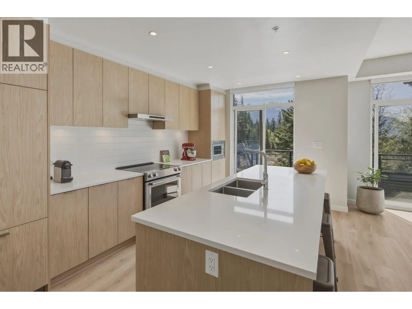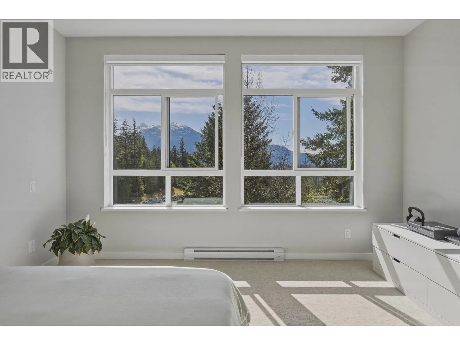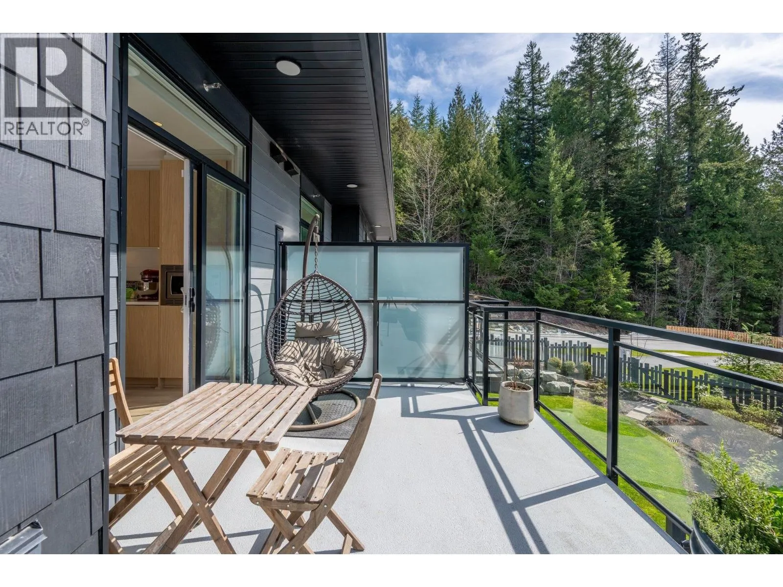 STUNNING half duplex at modern elevated 'Highline' by Polygon w/mountain views, privacy & treed outlook! Enjoy abundant natural light, 3 exposures, 9.5 ft ceilings, over height windows & doors, a true open plan great room w/sense of space. Deluxe kitchen + living w/fireplace both open out to south deck! The width of the home provides a generous layout on all 3 levels. Up: Unique 3 bedrooms all with ensuites, primary with views to the Chief, Habrich + Tantalus Range, laundry rm. Down: option for 4th bedroom, office/media/rec room with full bathroom. Opening out to covered patio + fenced yard tops it all off beautifully! Experience life w/views, next to the forest, walk to the 5 lakes, bike on world class trails! Double garage. This one has it all! No GST (id:27476)
