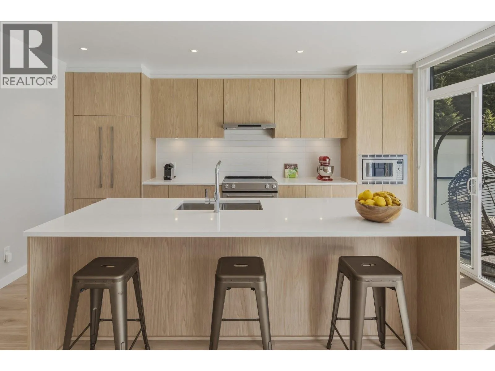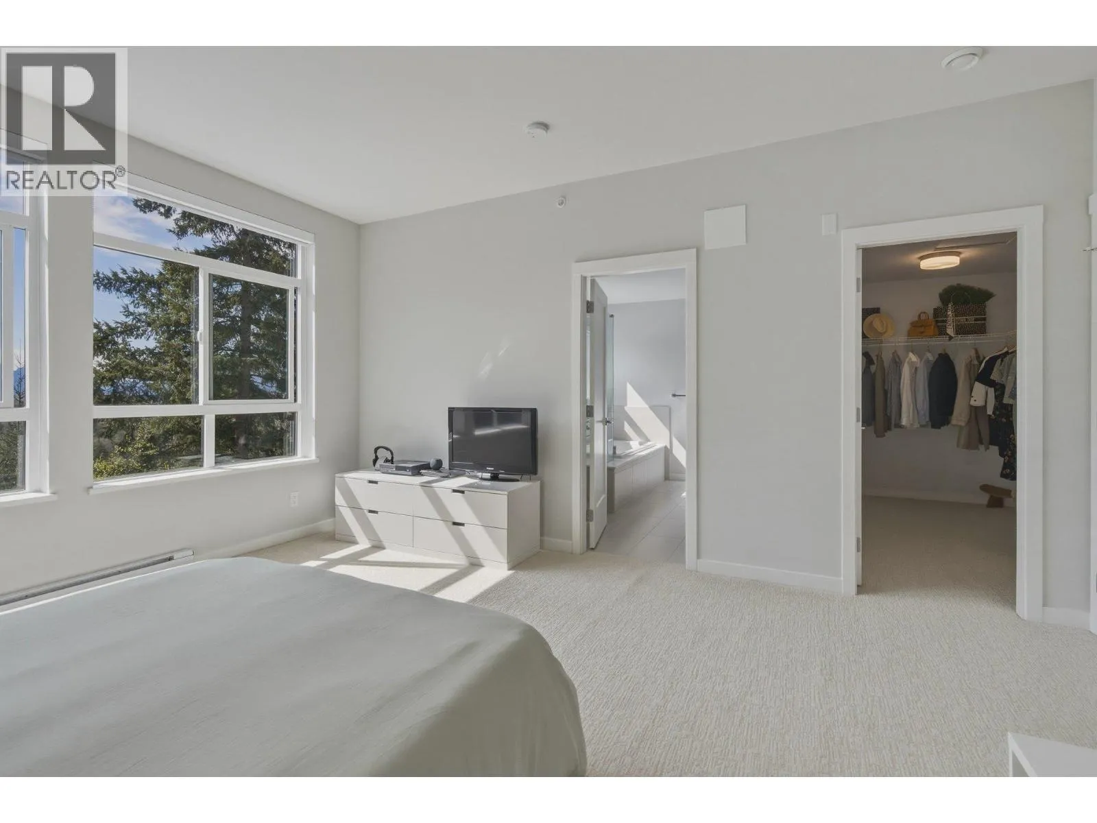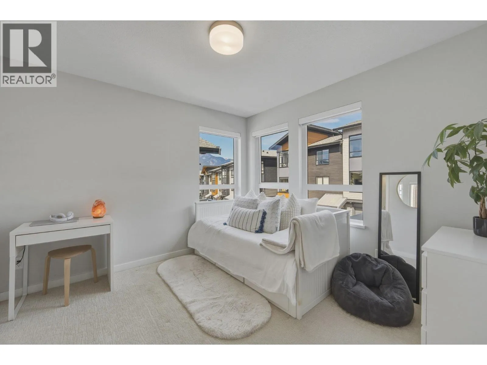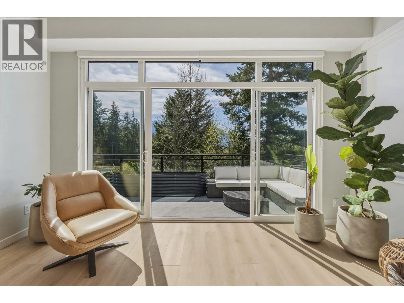 STUNNING half duplex at modern elevated 'Highline' by Polygon w/mountain views, privacy & treed outlook! Enjoy abundant natural light, 3 exposures, 9.5 ft ceilings, over height windows & doors, a true open plan great room w/sense of space. Deluxe kitchen + living w/fireplace both open out to south deck! The width of the home provides a generous layout on all 3 levels. Up: Unique 3 bedrooms all with ensuites, primary with views to the Chief, Habrich + Tantalus Range, laundry rm. Down: option for 4th bedroom, office/media/rec room with full bathroom. Opening out to covered patio + fenced yard tops it all off beautifully! Experience life w/views, next to the forest, walk to the 5 lakes, bike on world class trails! Double garage. This one has it all! No GST (id:27476)