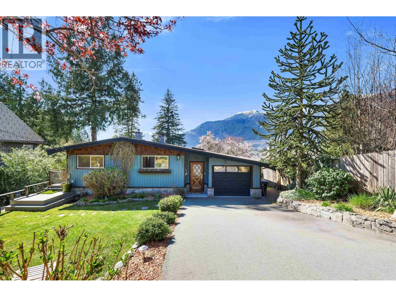 Stunning VIEW property on a most desirable street in coveted Hospital Hill! RARE expansive 16,827 SF lot on a no through street with only a handful of neighbours. Offering incredible privacy, views + charm this midcentury home is very appealing. Extensive wood throughout, W/B stove + fireplace, open plan kitchen + dining with doors to deck, skylights, large inviting foyer with built in storage nooks. Enjoy a front row view of Tantalus Range + Howe Sound. Spacious 1825 SF 4 bedroom + flex space, large laundry/craft room, 2 full baths. Wraparound deck, lower covered patio with hot tub, tiered gardens + mature landscaping. Mature gardens + private trail from backyard to Downtown + lower Smoke Bluffs Trail network. This one has it all! By appointment. (id:27476)