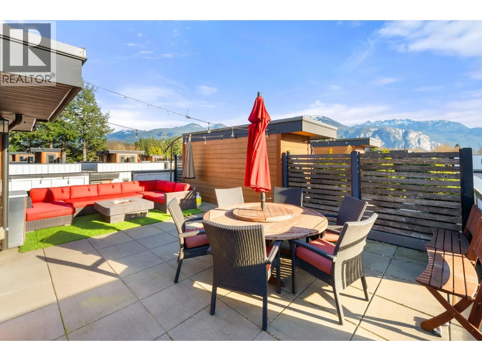Enjoy the private 560 square ft rooftop patio, perfect for entertaining in the sun at this sought after Breeze townhouse. Showcasing breathtaking 360° views of Mt. Garibaldi, the Chief, and the Tantalus Range. This spacious 3 bedroom, 3 bathroom home offers an open concept layout with 9 ft ceilings, quartz countertops, stainless steel appliances, and a large kitchen. The primary suite features double sinks, a porcelain tile shower, and a walk through closet. Two generous bedrooms, a full bath with tub, and laundry are all on the same level. Complete with a sought after 2 car driveway, tandem garage, and carport, all in a central location just steps to Brennan Park, breweries, bakery, river, trails, schools, and everyday amenities. (id:27476)