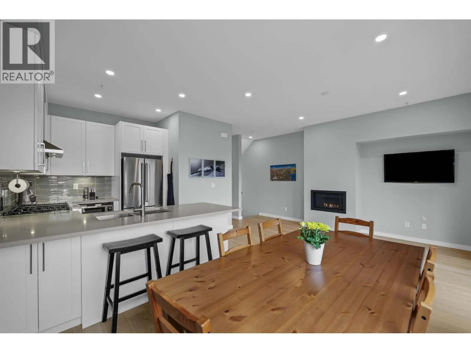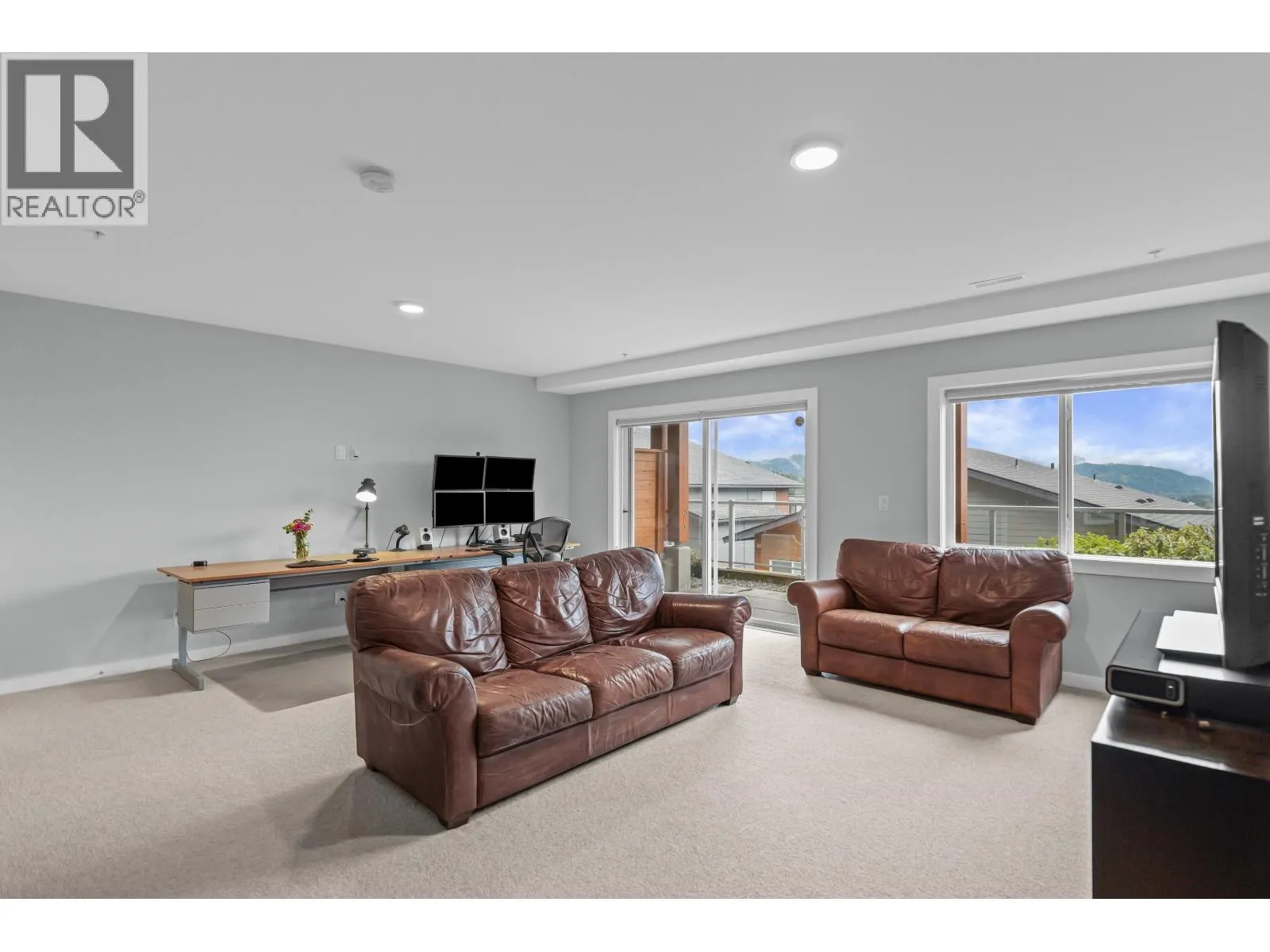 Perched up on the hillside is this gorgeous Skyridge townhome with 3 bedrooms, 3 bathrooms, panoramic mountain & valley views and plenty of outdoor living space. This home is ideally located beside the park, providing added privacy & a natural setting. Open-concept main floor with over height ceilings, a balcony to sit & enjoy the breathtaking scenery, plank hardwood flooring, & gas fireplace. Contemporary kitchen features European-style cabinetry, quartz countertops, stainless appliances & gas range. Spacious bedrooms up, including a bright primary retreat with private outlook. Lower level offers a bonus storage/flex room plus a large family room with a walk out patio leading you out to the yard. Built with energy-efficient features & insulated sound walls. Open Sun. Apr. 19, 1-3 pm. (id:27476)