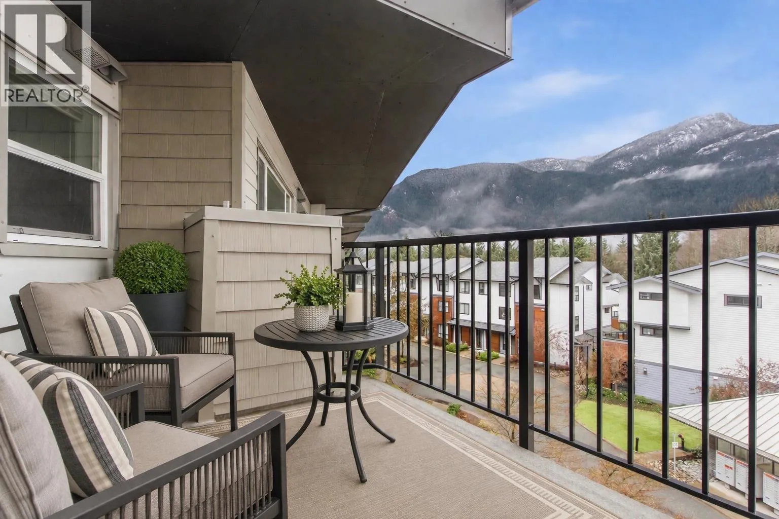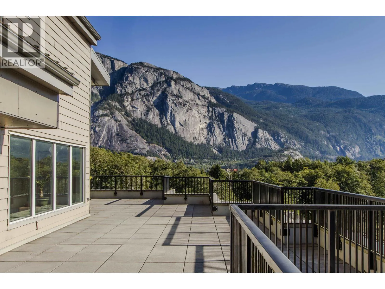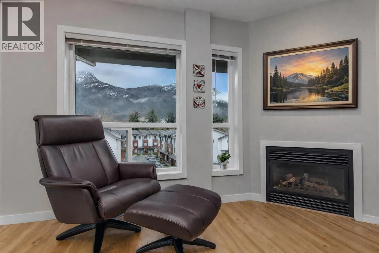 Welcome to Aqua! one of Squamish´s most sought-after concrete residences, and one of just two of its kind in town. This well-maintained 1,330 square ft unit offers a rare 3 bed+den layout, thoughtfully designed with custom bookshelf and Murphy bed, along with generous in-suite storage, including a storage room. The living space is warm and inviting, anchored by a gas F/P, while the kitchen is perfectly suited for cooking and gathering, featuring a gas range and granite countertops. From the living room, take in sweeping views of the Tantalus Range and Echo Falls, a daily backdrop that never feels ordinary. This home also includes two secured parking stalls and access to 2 rooftop patios, where water and mountain views stretch in every direction. Just steps from the Estuary and downtown cafes! (id:27476)