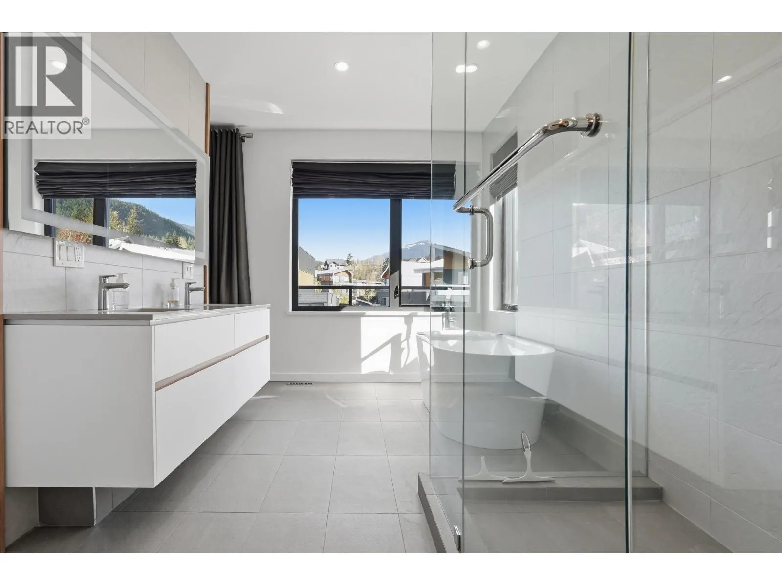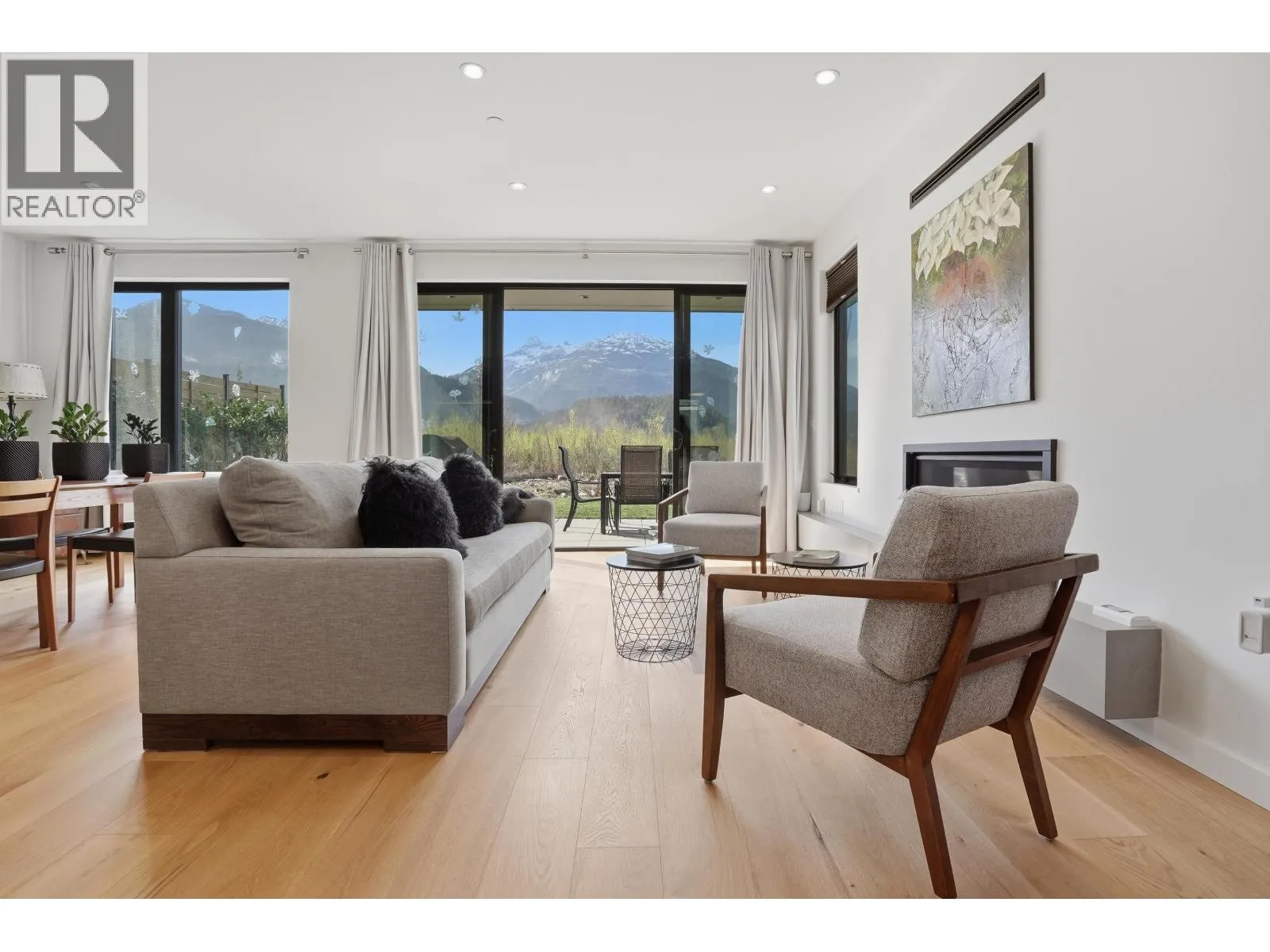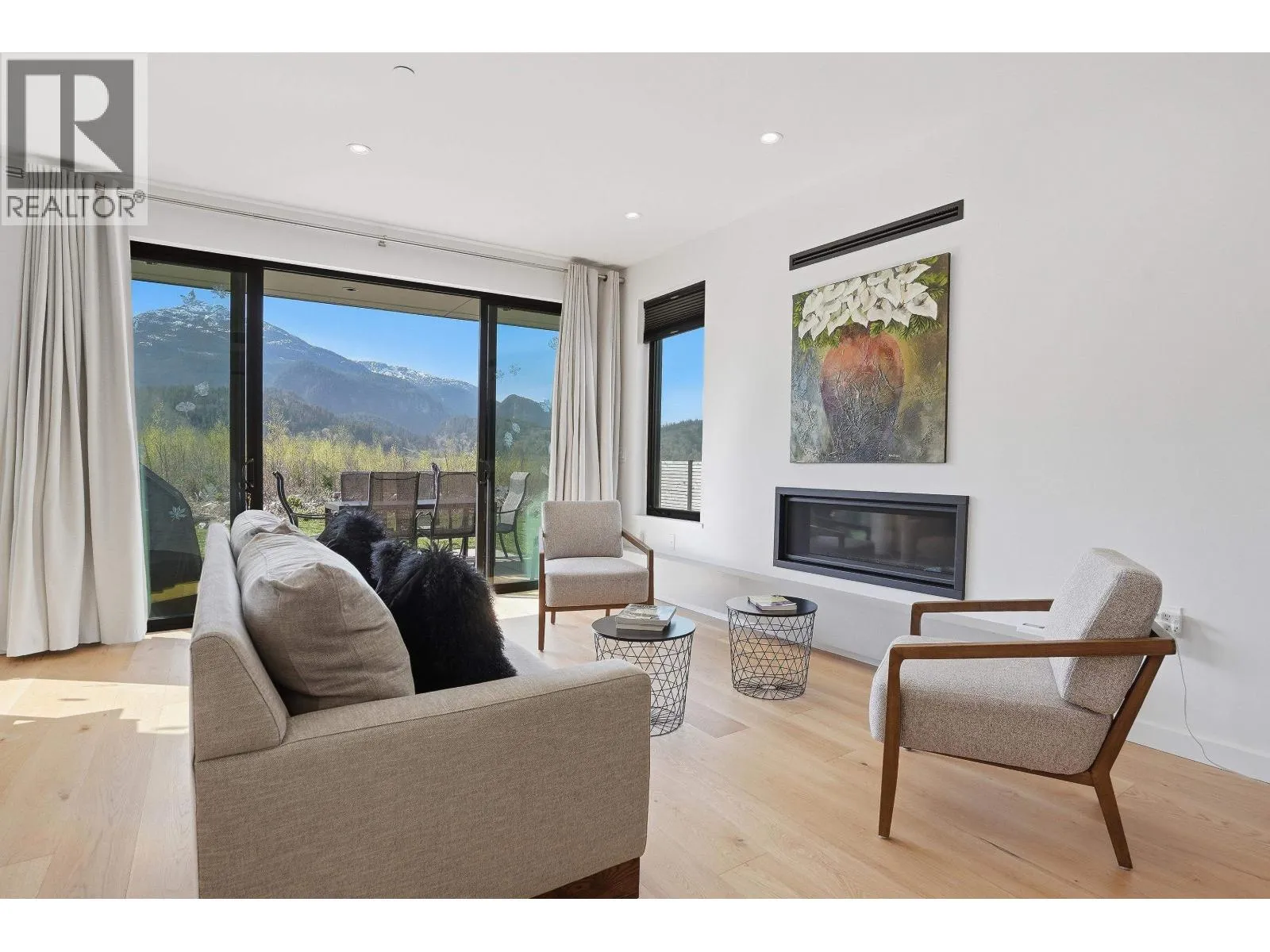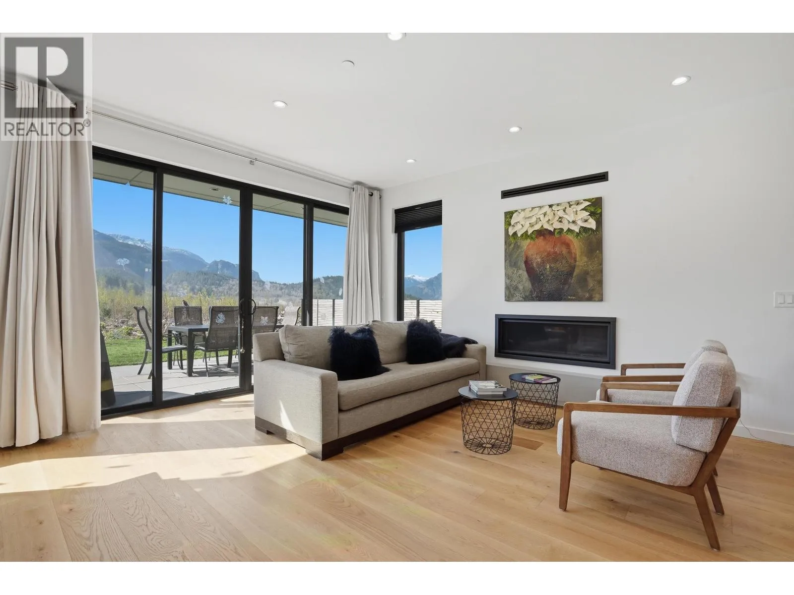STUNNING VIEWS, YARD & PERFECT LOCATION, this gorgeous modern home is exactly what you have been waiting for. Built by Holburn at University Heights, this home was designed with your comfort in mind. Bright southern exposure, large open rooms with kitchen, dining & living room areas on the main floor with walk-out to a large patio & level yard. Incredible panoramic views can be enjoyed year-round. Custom millwork, Fisher Paykel appliances, stone counters, steel & glass stair rails, natural gas fireplace & BBQ hook-up as well as geothermal heating/heat pump with air conditioning. Main floor also features flex room (den/office) & full bathroom. Above is the primary suite with incredible ensuite & walk-in, two additional bedrooms, laundry, 3rd full bathroom & loft flex area. Large double garage +driveway parking for 2 more vehicles, steps from the iconic Squamish Trail system, pump track, park & off-leash area. (id:27476)