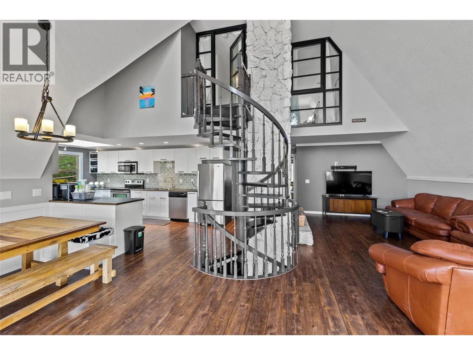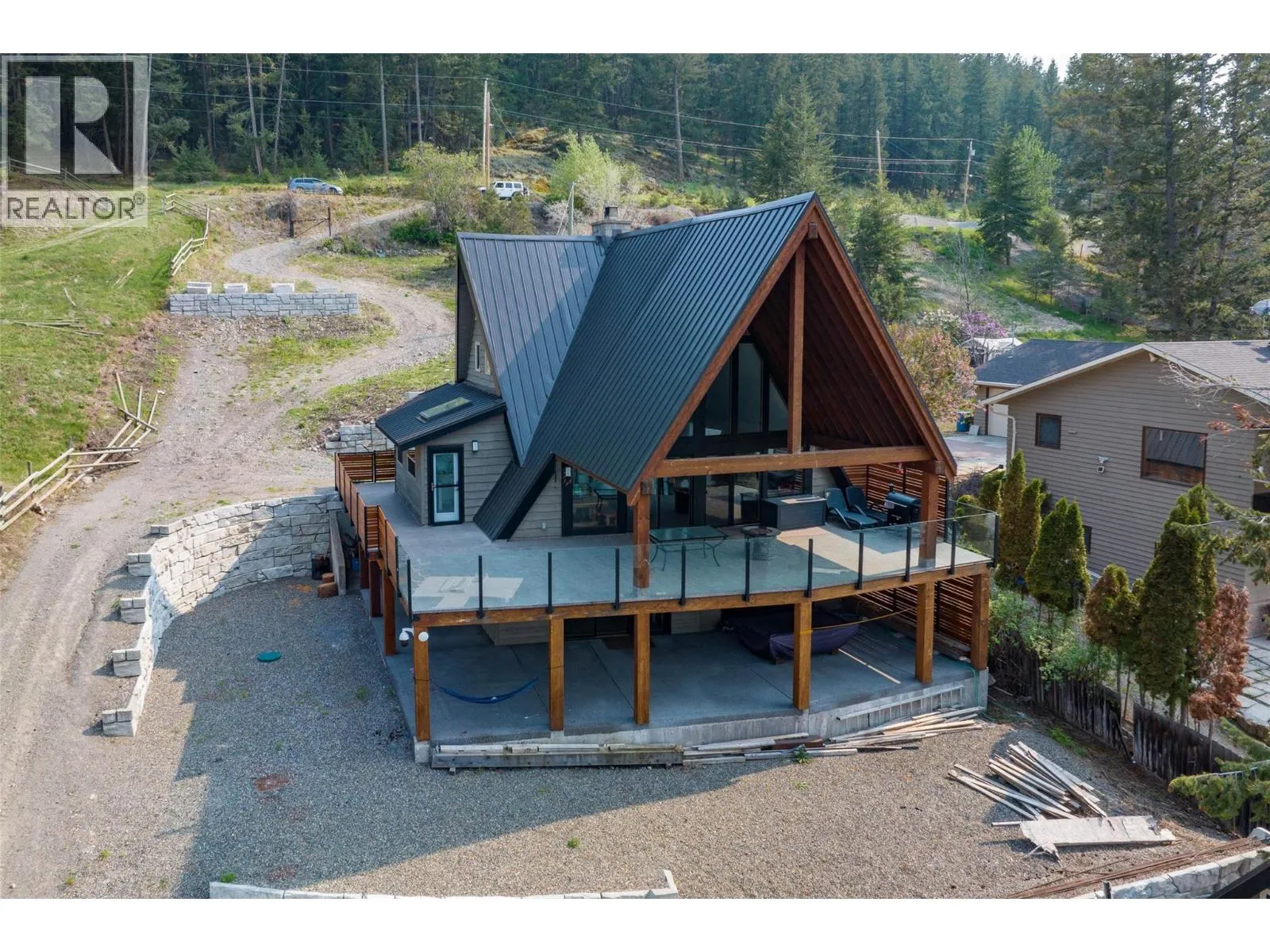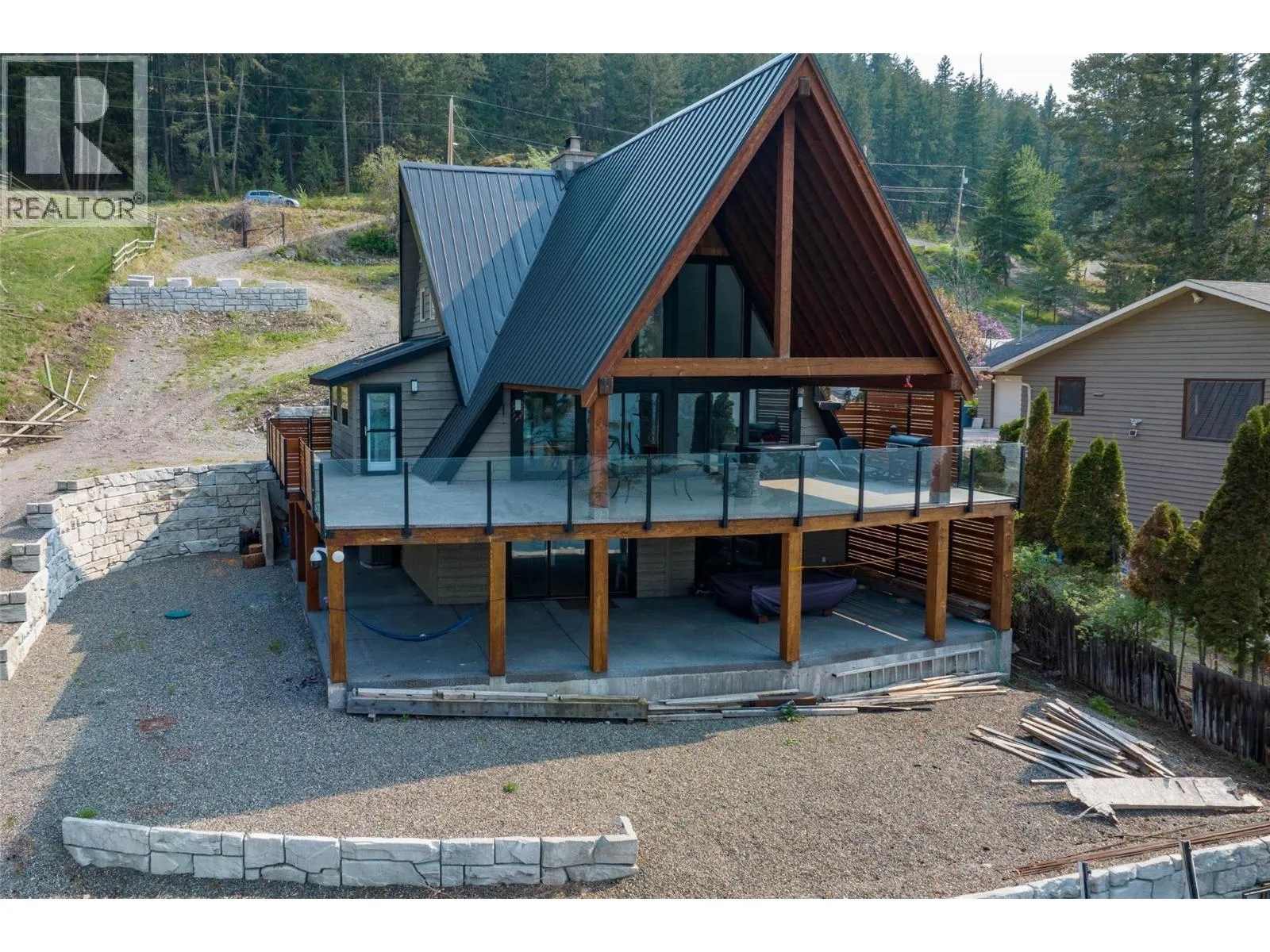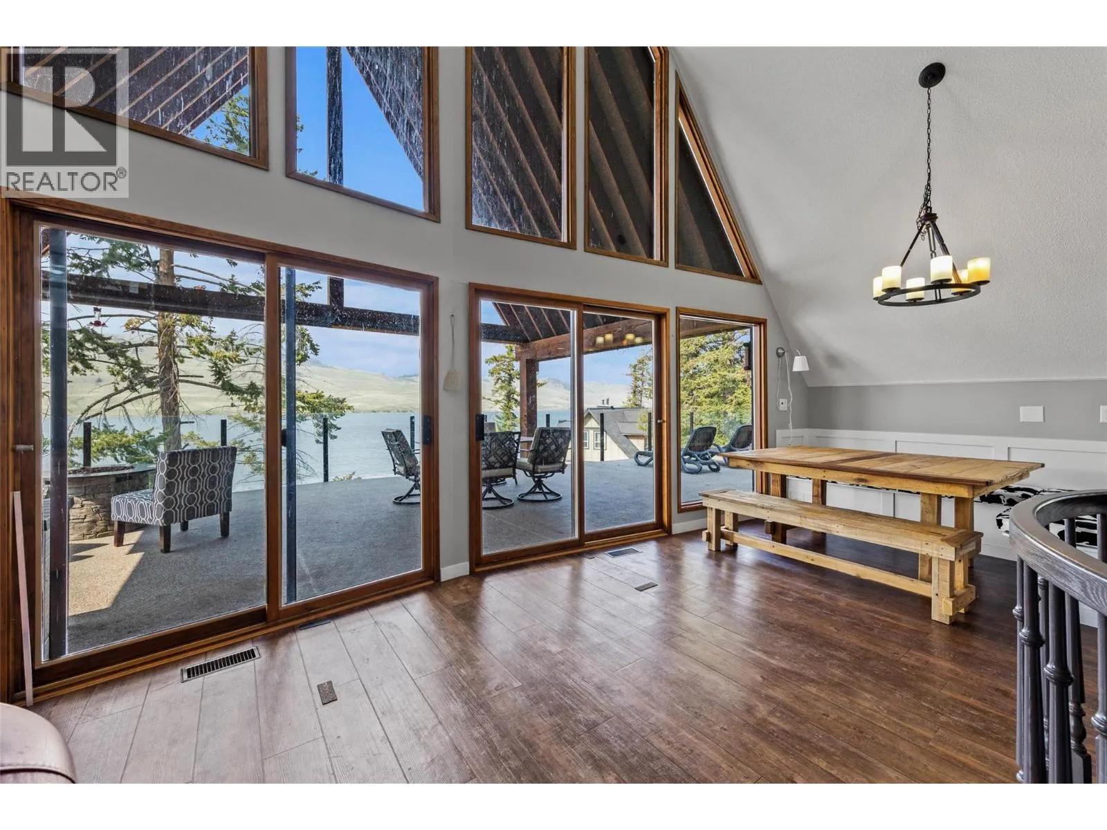 Waterfront home at Stump Lake! This 0.62 acre sunny paradise is a quiet escape from city life with tons of room to make memories with family, friends and guests. On the main level find a modern kitchen, 2 bedrooms, 1 bathroom, and vaulted living room with wood fireplace and floor-to-ceiling windows that opens to a huge 42x15 covered deck, perfect for bbq, outdoor entertaining and relaxing with the perfect view of the lake. Upstairs the master bedroom with 3pc ensuite and balcony enjoys a little extra privacy. Downstairs find a massive fully finished rec room, a large den, sauna, wood fireplace, bathroom, laundry and storage. Central vac, AC, and 200 amp electrical service. Rec room opens to a 42x15 covered wraparound patio that welcomes games and outdoor activities in the shade. Down to the water, find a detached storage shed and a private dock ready for watercraft, paddleboards, swimming and more. A truly unique home with countless features on blissful lakeside land. (id:27476)