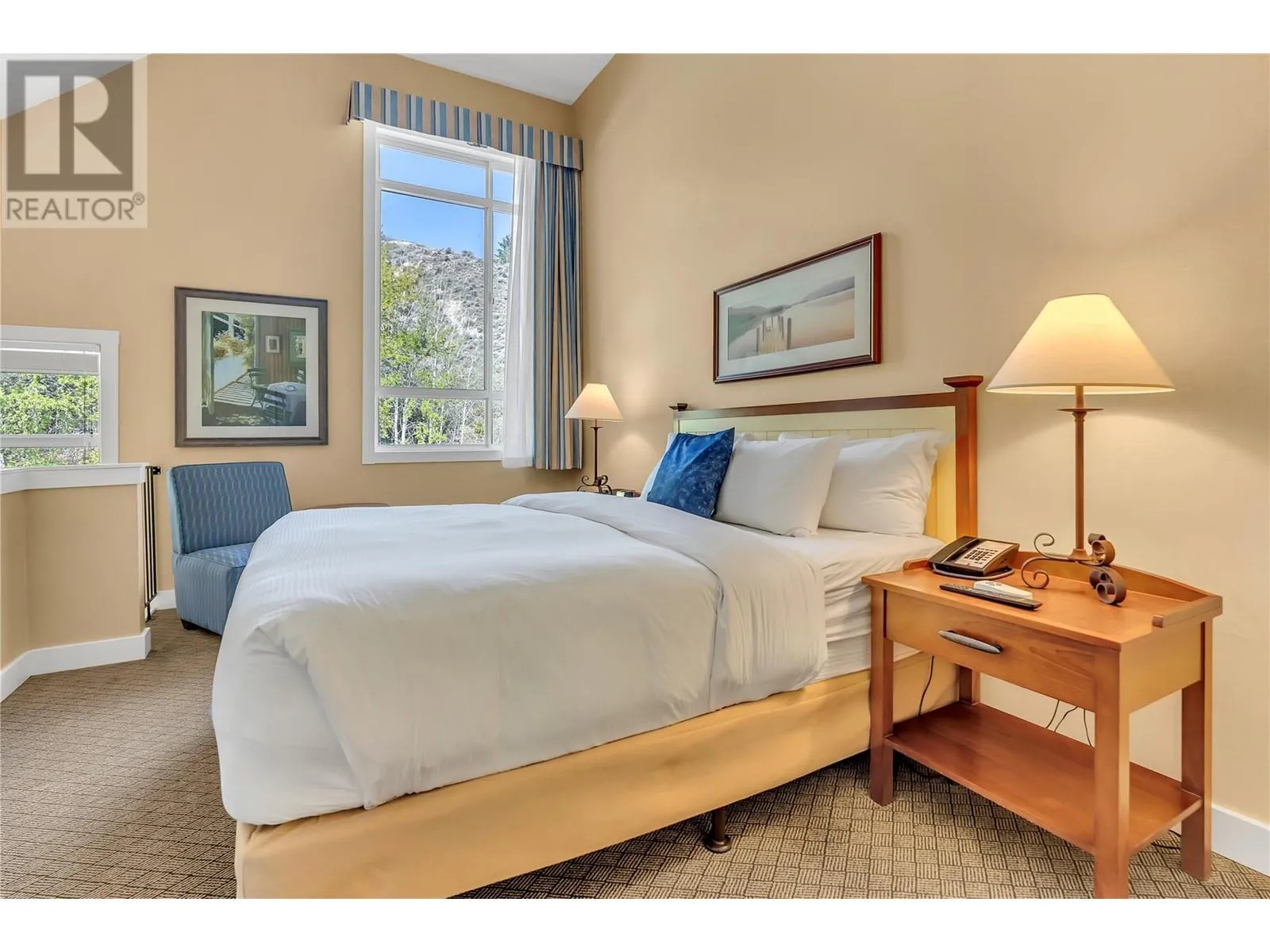 Welcome to Unit 377 at the Summerland Waterfront Resort â your perfect Okanagan getaway. This beautifully designed two-level loft suite offers an open and airy layout with 1 bedroom, 2 bathrooms, and plenty of space to relax and entertain. Enjoy stunning views from your bluff-facing private deck, the perfect spot for morning coffee or evening sunsets. Inside, you'll find a cozy fireplace, a fully equipped kitchen with granite countertops, a pullout couch for extra company and elegant finishes throughout - creating a luxurious yet comfortable atmosphere. Summerland Waterfront Resort is packed with amenities to elevate your lifestyle. Indulge in on-site dining at the charming bistro or waterfront restaurant, unwind at the full-service day spa, or soak in the outdoor hot tubs. Spend your days lounging by the heated outdoor pool, enjoying a BBQ picnic, working out at the gym, relaxing in the sauna, or exploring the beach and dock areas just steps away. Shared laundry facilities add extra convenience for extended stays. Located in the heart of the South Okanagan, you're minutes from stunning beaches, world-renowned wineries, lush golf courses, and marina. If you are seeking a resort retreat to enjoy your vacations, and want to take advantage of the hands free hotel rental pool to make your unit work for you when not in use, this is the place to be! (id:27476)
