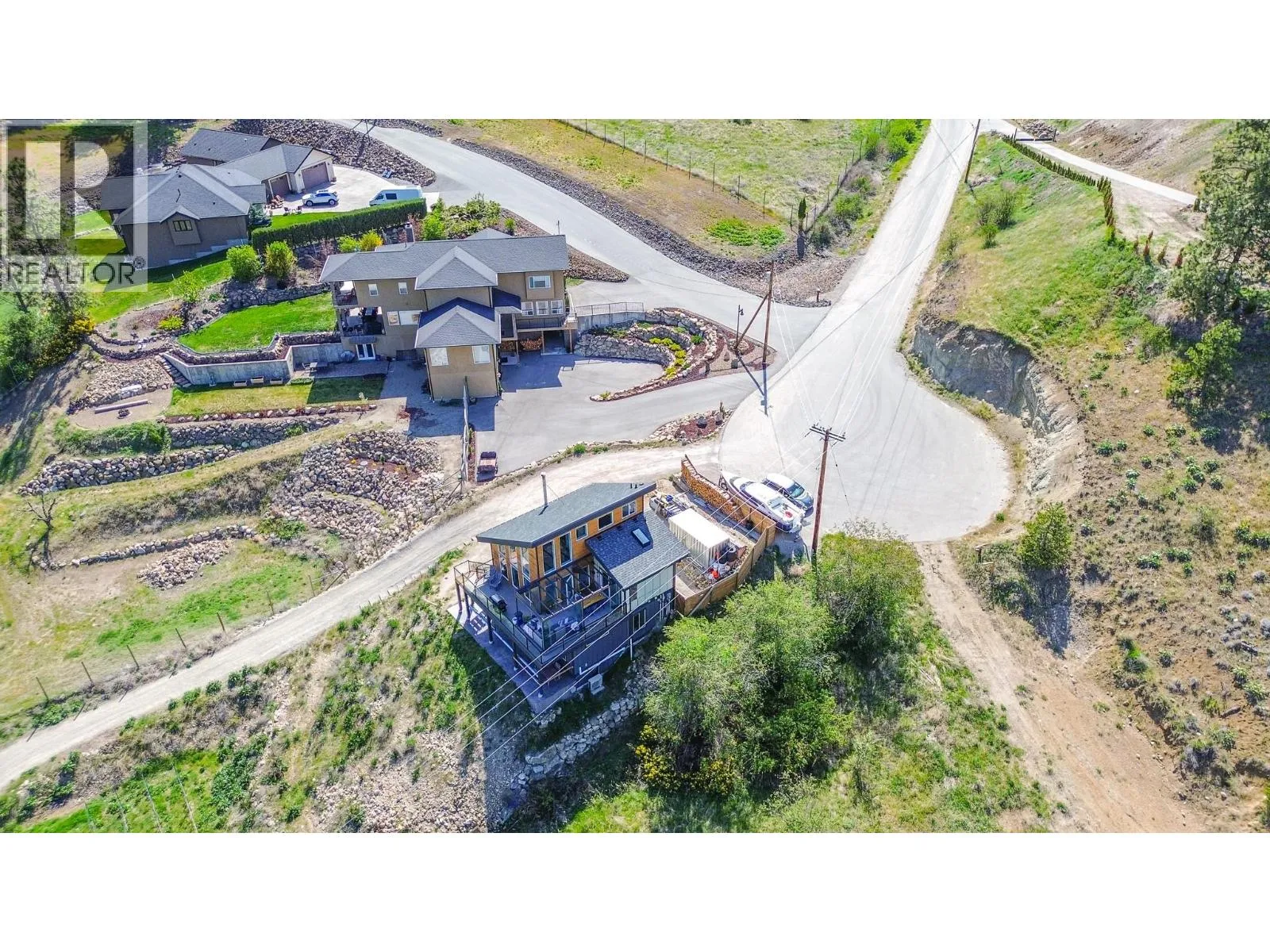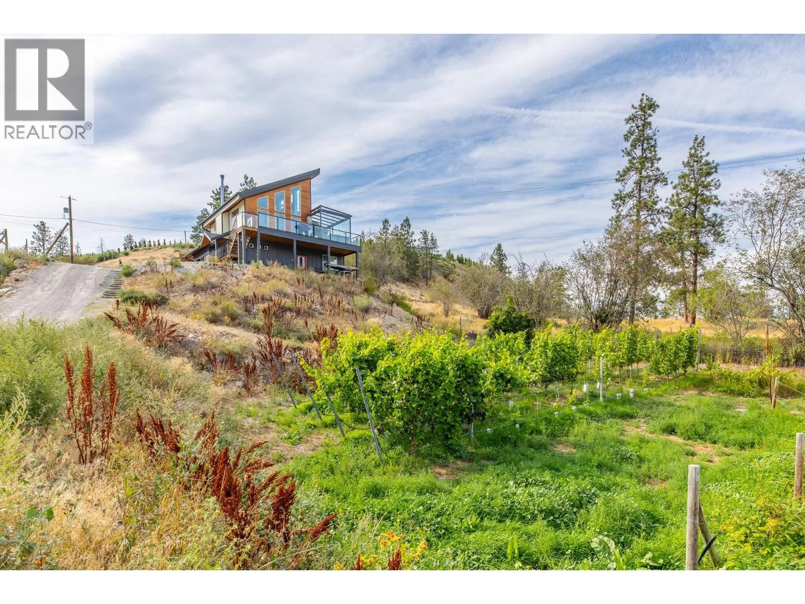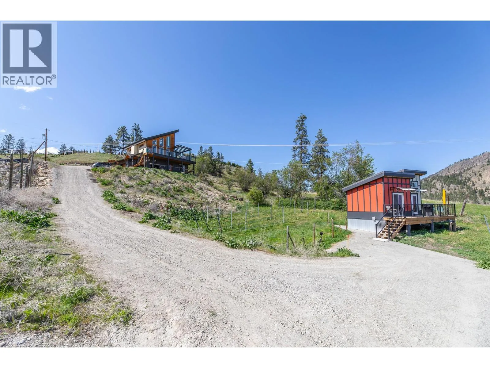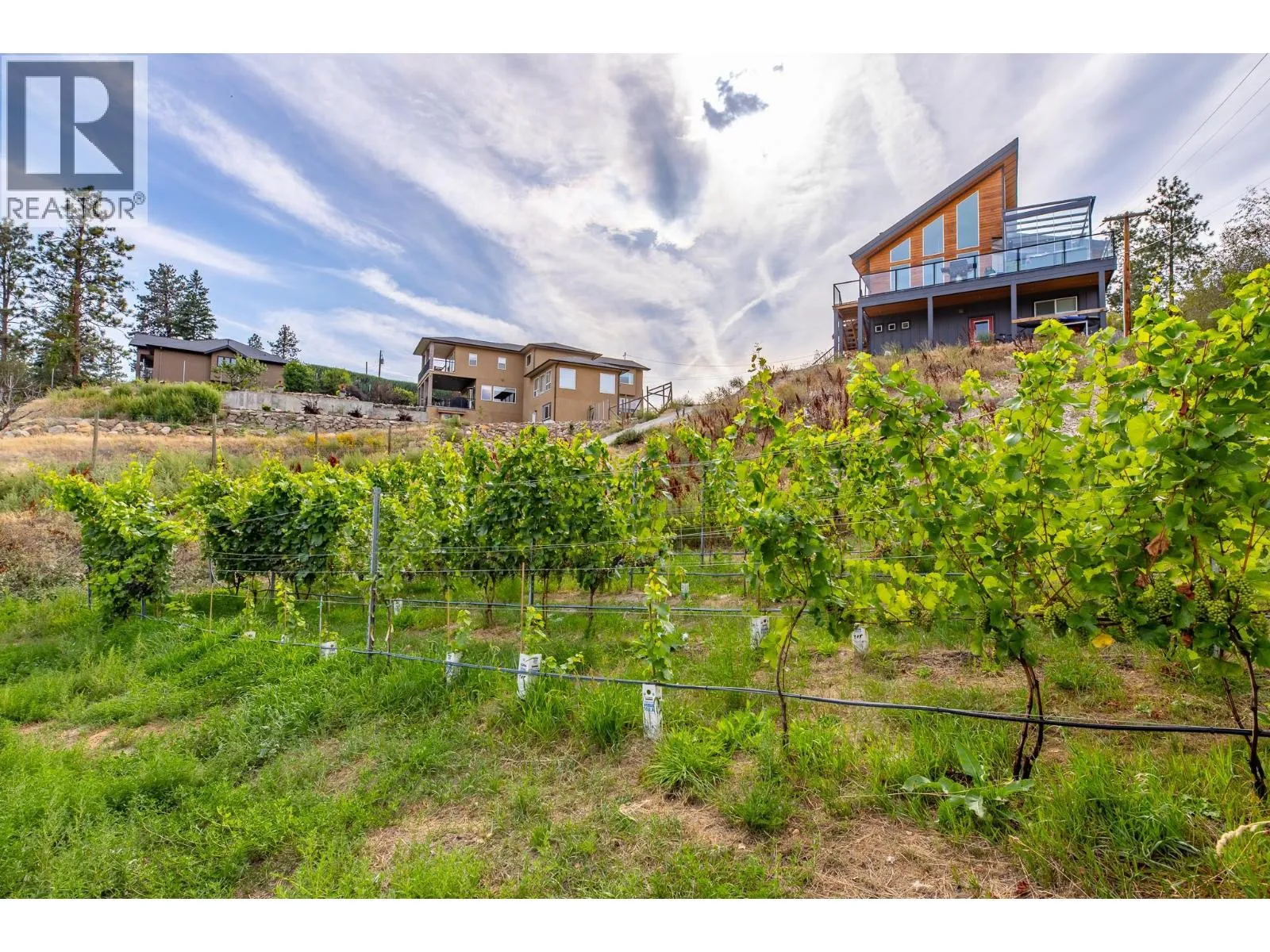 Come take a look at this delightful offering - gorgeous lake and valley views, 2.47 acre property with a newly built contemporary home and detached guest house! The main house has modern touches throughout with an incredibly swank sun room that offers approximately 220 sq. ft. of year round living, bringing the outdoors in, with its sliding glass panelled walls. The living room offers a cozy top-of-the-line wood burning fireplace with floor to ceiling windows and the chef's kitchen offers vaulted ceilings and loads of light. 2 bedrooms plus a den, a loft style family room, energy efficient heat pump, in-floor radiant heat, 200 amp service and wired for solar panels and a hot tub too. Fully finished and insulated single car garage, fantastic outdoor entertainment decks to enjoy the views of the property and the surroundings. The detached guest house is complete with kitchen, bathroom and guest room space and boasts a private outdoor deck the overlooks the vineyard, lake and valley - currently operated as a fully licensed Air Bnb. Approximately 1 acre of grapes are planted on the property - for wine hobby enthusiasts - and the remaining property offers lovely outdoor space to walk your dogs or park your extra vehicles (or build a shop). This one must be seen! (id:27476)