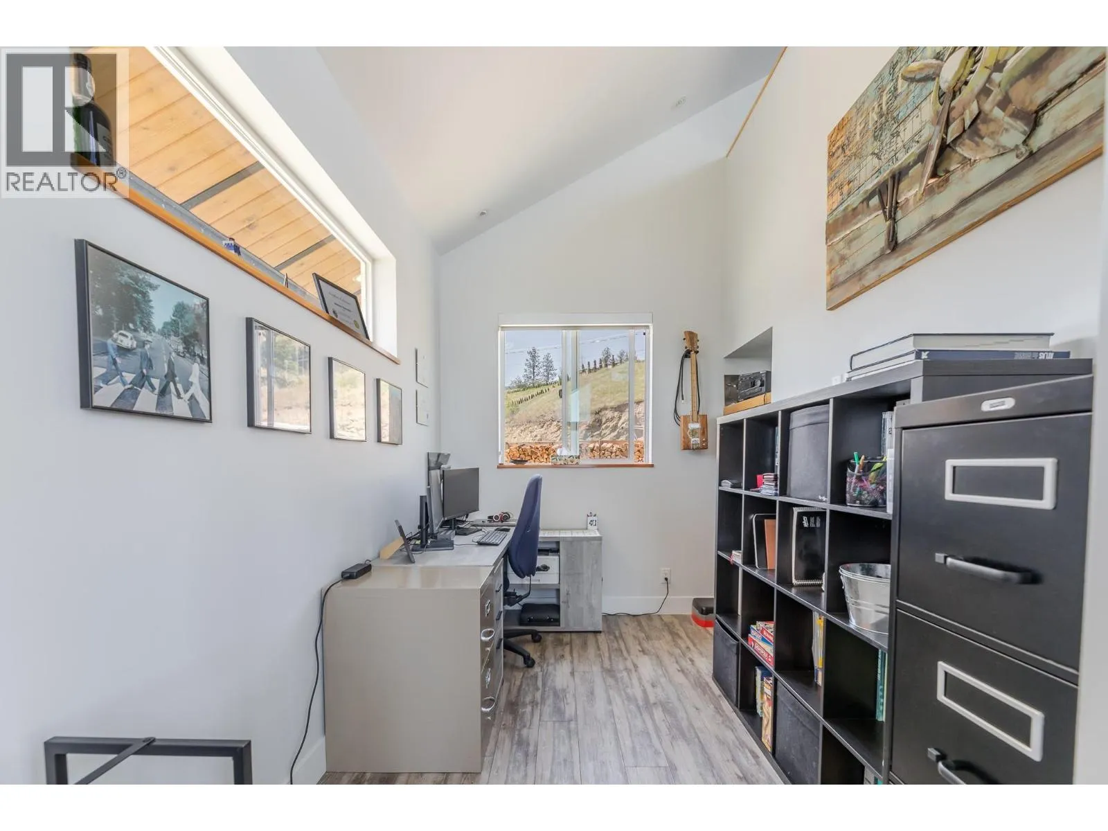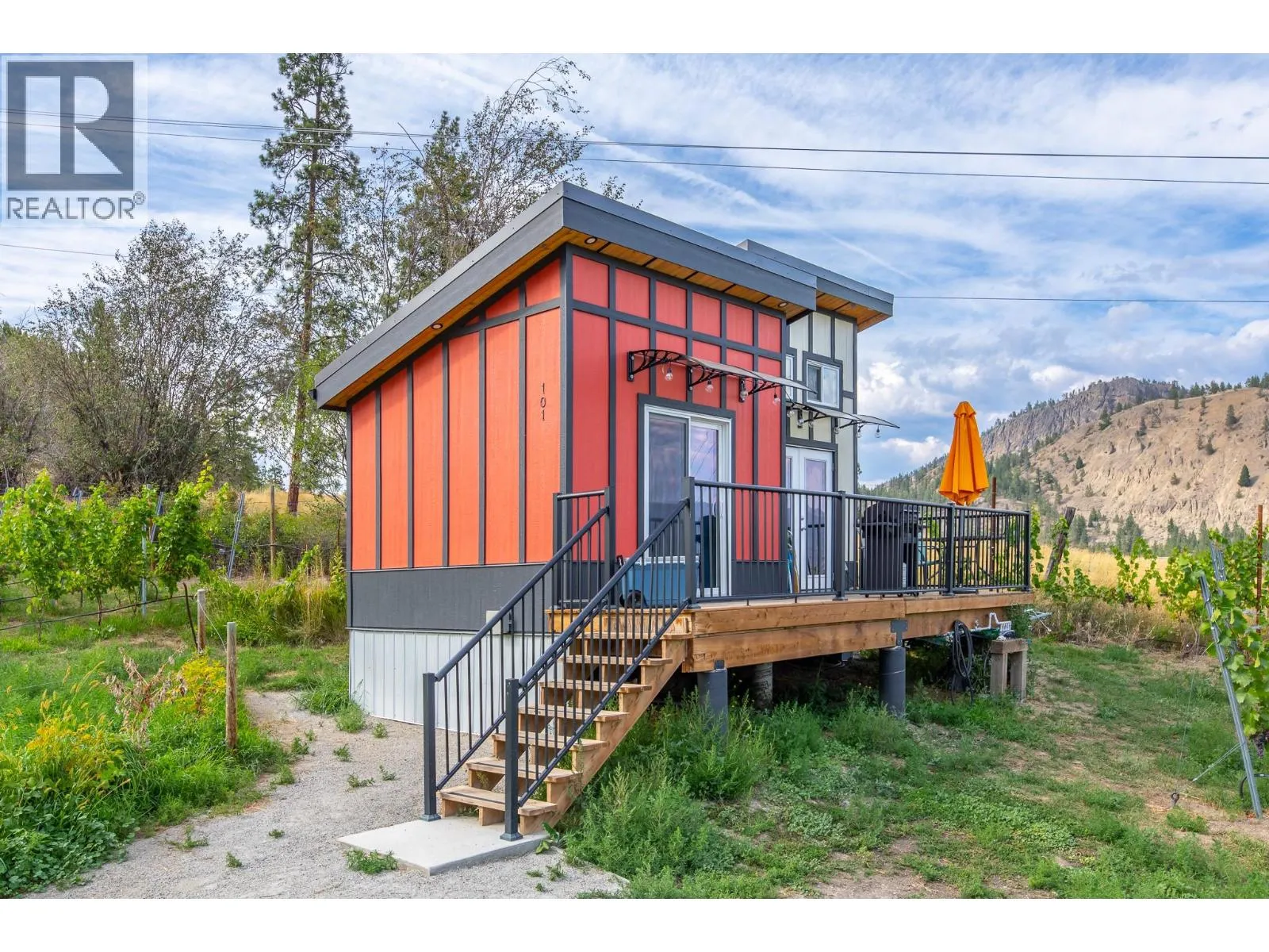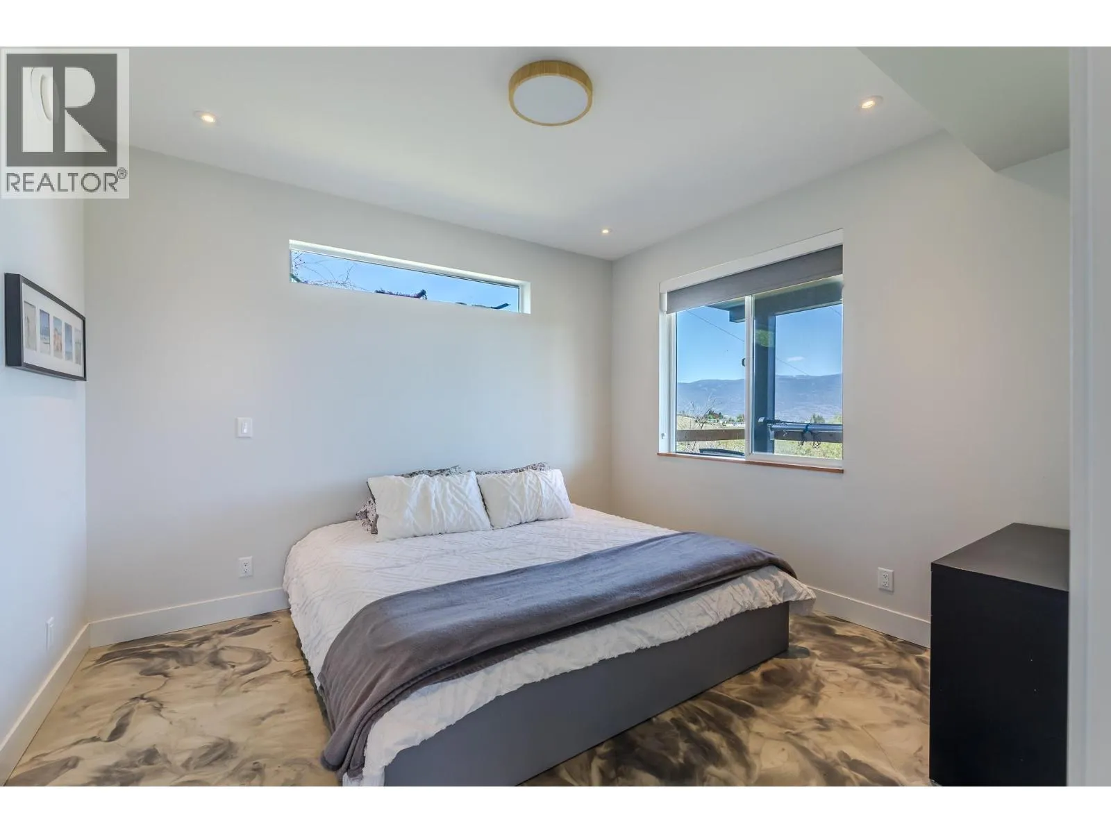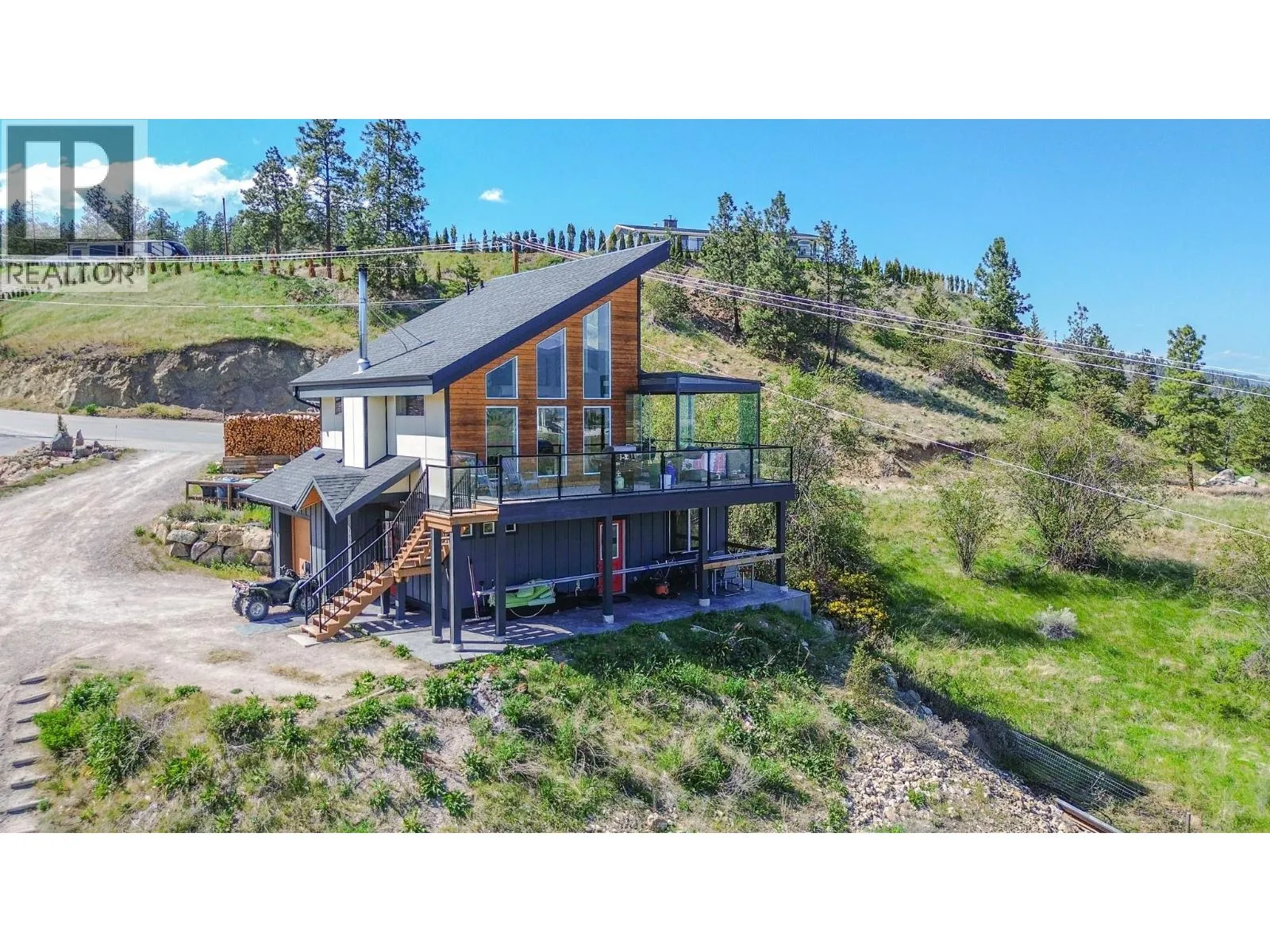 Come take a look at this delightful offering - gorgeous lake and valley views, 2.47 acre property with a newly built contemporary home and detached guest house! The main house has modern touches throughout with an incredibly swank sun room that offers approximately 220 sq. ft. of year round living, bringing the outdoors in, with its sliding glass panelled walls. The living room offers a cozy top-of-the-line wood burning fireplace with floor to ceiling windows and the chef's kitchen offers vaulted ceilings and loads of light. 2 bedrooms plus a den, a loft style family room, energy efficient heat pump, in-floor radiant heat, 200 amp service and wired for solar panels and a hot tub too. Fully finished and insulated single car garage, fantastic outdoor entertainment decks to enjoy the views of the property and the surroundings. The detached guest house is complete with kitchen, bathroom and guest room space and boasts a private outdoor deck the overlooks the vineyard, lake and valley - currently operated as a fully licensed Air Bnb. Approximately 1 acre of grapes are planted on the property - for wine hobby enthusiasts - and the remaining property offers lovely outdoor space to walk your dogs or park your extra vehicles (or build a shop). This one must be seen! (id:27476)
