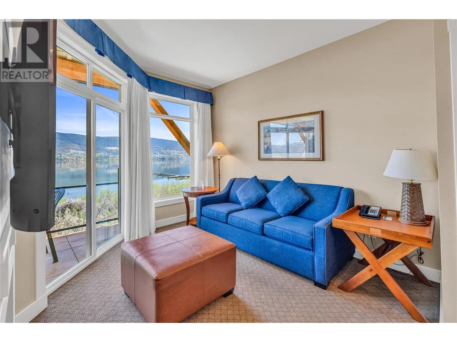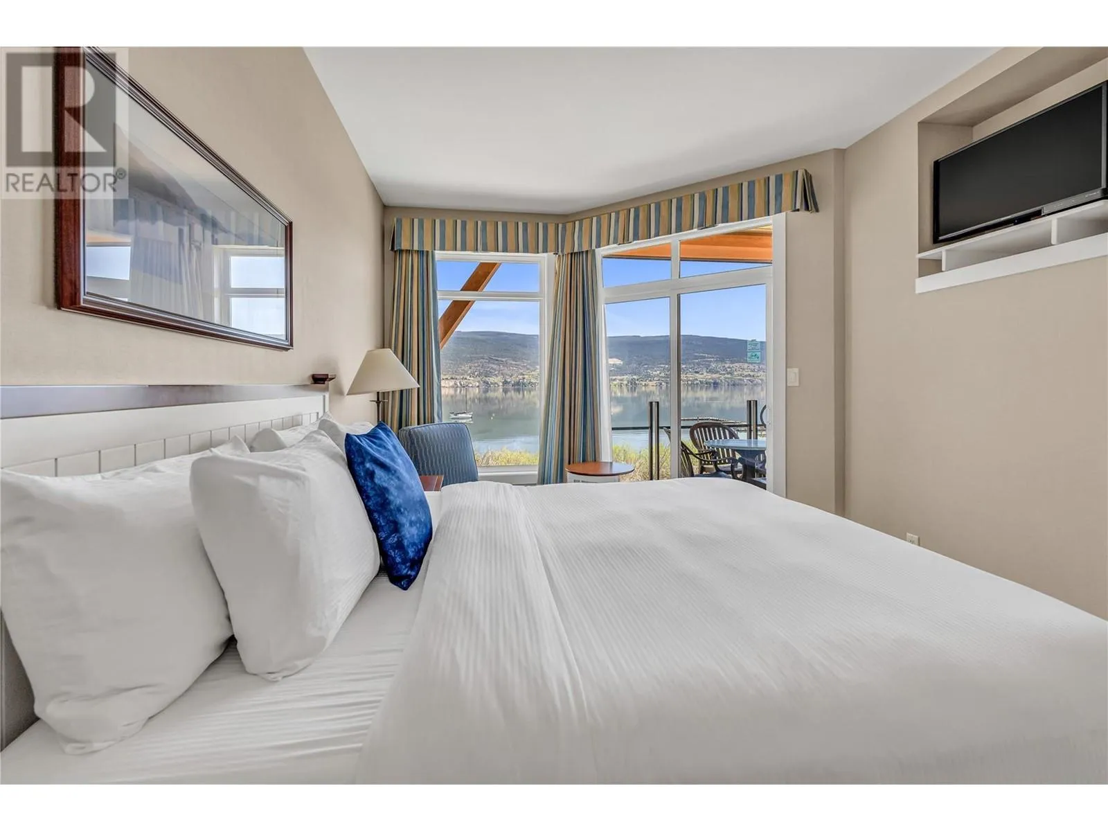 Waterfront Resort Living in the Heart of Summerland! This fully furnished suite at the Summerland Waterfront Resort offers the perfect Okanagan getaway and investment opportunity. Located beside the Summerland Yacht Club and just steps from Okanagan Lake, beaches, and vibrant lakeside dining at âShaughnessy's â restaurant. Enjoy sunny afternoons on your private lakeview deck or fire up the BBQ and soak in views of the lake, vineyards, and surrounding mountains. This bright and beautifully appointed unit features a full kitchen with granite countertops and stainless appliances, a spacious layout with pull-out couch and comfortable sleeping arrangements. Amenities include an outdoor pool, hot tub, spa, gym, cafe, boat rentals, dock accessâprofessionally managed with excellent service and care. Owners may use the suite up to 180 days/year and must opt into the rental pool for the remaining days, allowing for revenue generation when not in use. Pet-friendly (with approval), turn-key, and income-generatingâyour South Okanagan dream escape awaits! (id:27476)