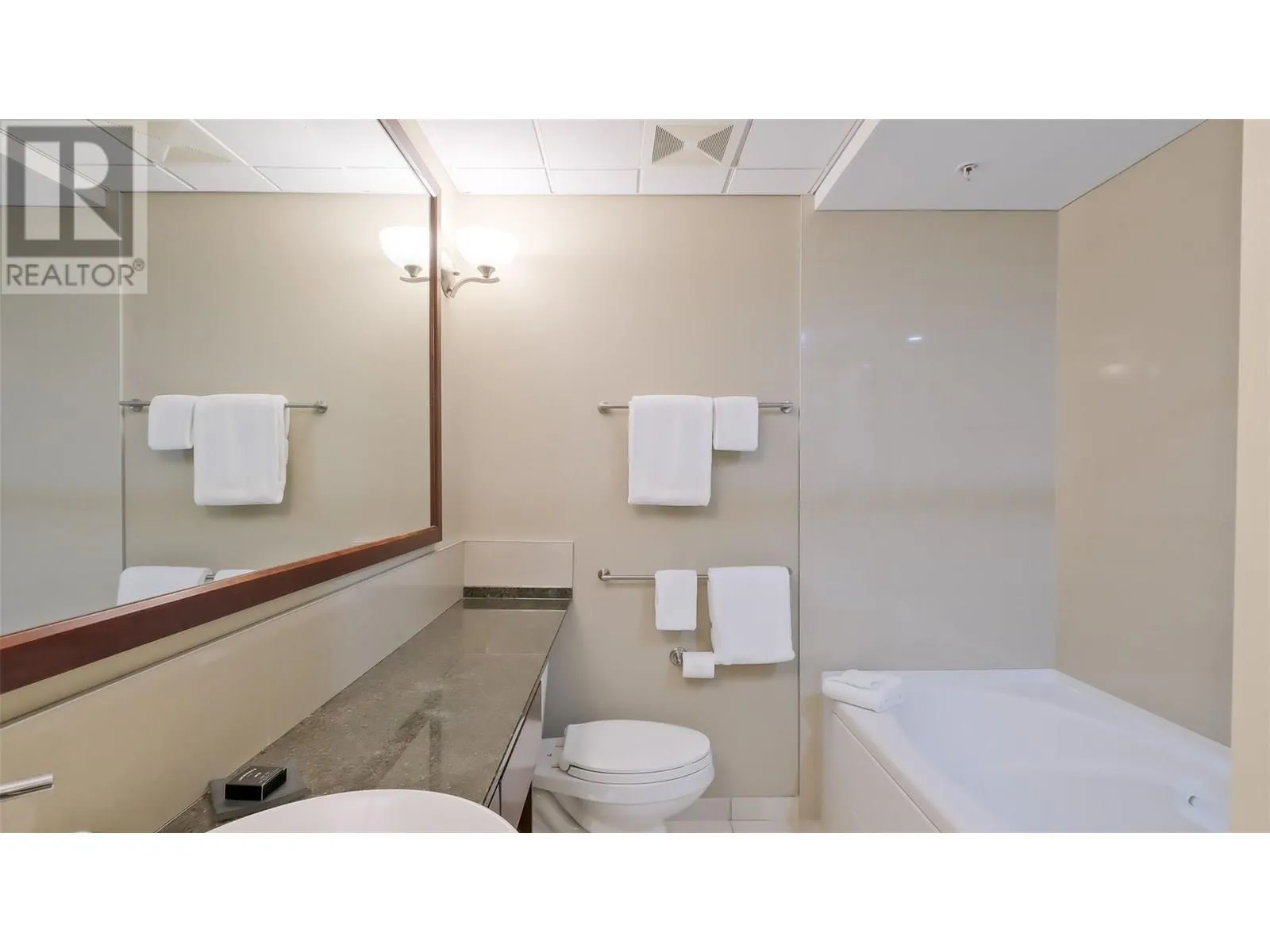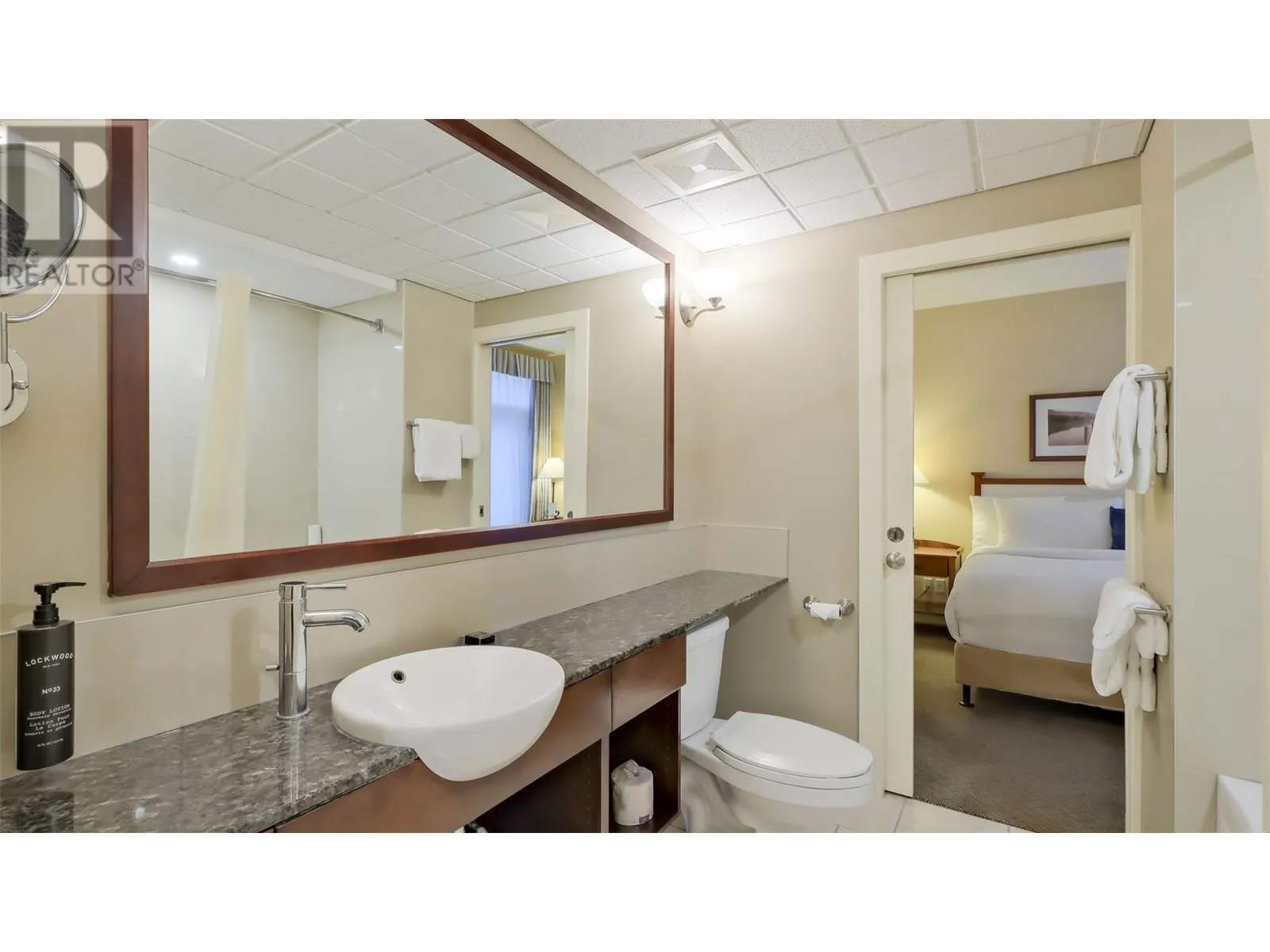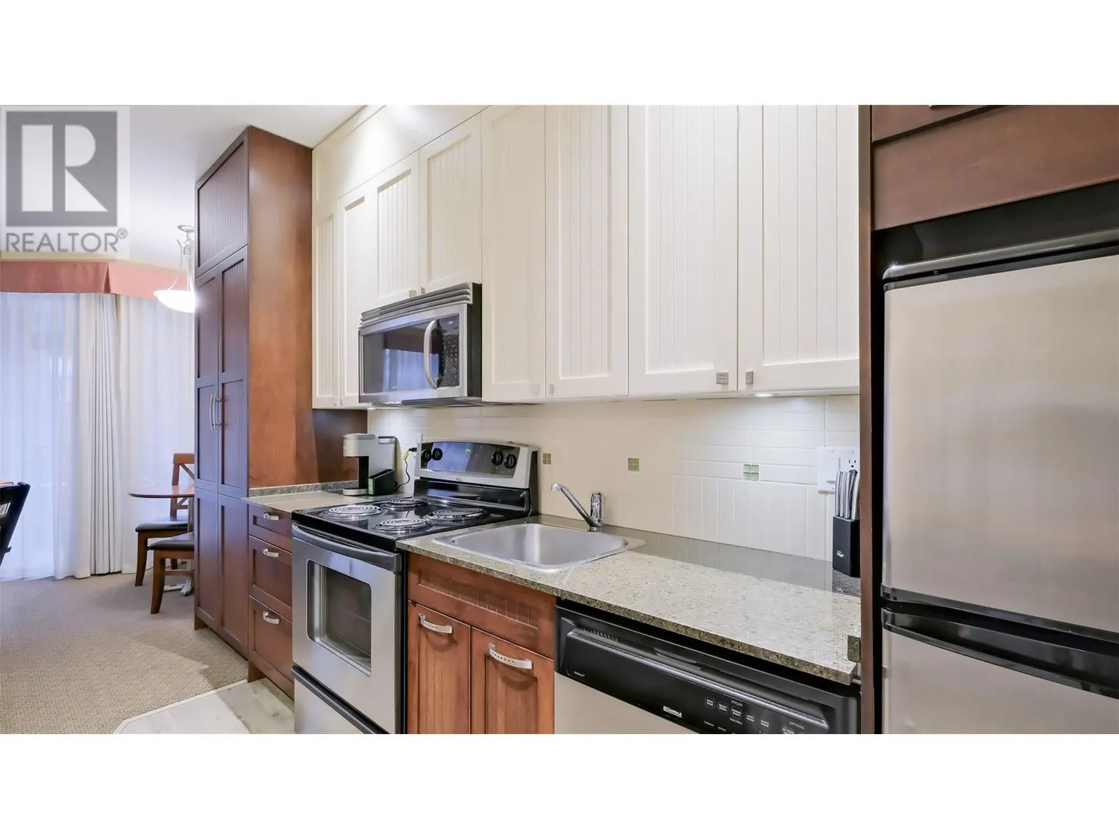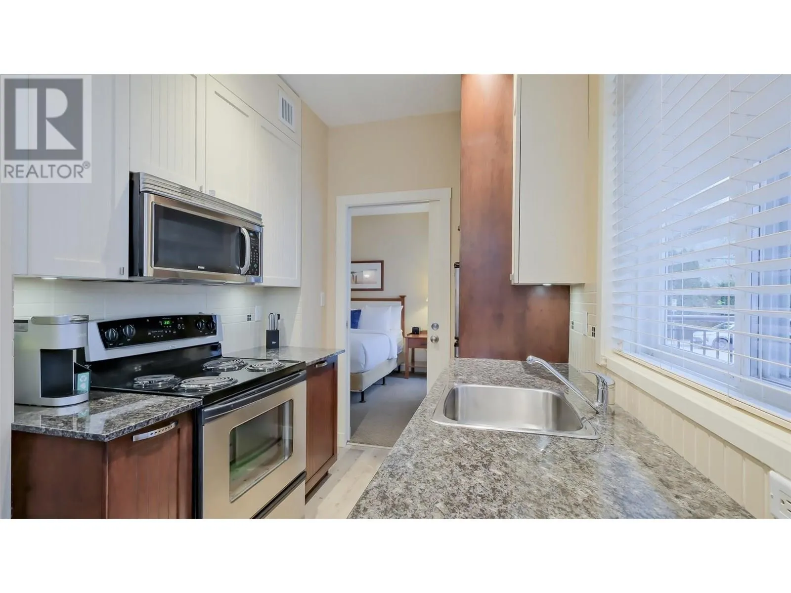 Welcome to effortless lakefront luxury at the Summerland Waterfront Resort. This 1 bed, 1 bath vacation ownership suite offers the perfect blend of relaxation and recreation. Enjoy Okanagan summers from your oversized north-facing deck with bluff views and peekaboo glimpses of the lake and marina. The shaded setting on the quiet end of the resort makes it ideal for lounging all day. Inside, the suite features a fully equipped kitchen with stainless steel appliances, granite countertops, and stylish two-tone cabinetry. The modern 4-piece bathroom connects to both the main living space and the primary bedroom, which includes private access to the deck for morning coffee or evening sunsets. Guests will appreciate the queen-size pullout in the living room. Just steps from the pool, hot tub, BBQ area, and picnic spaces, everything needed for a perfect getaway is close by. Owners enjoy access to two private beaches, a dock, and lush green space. Beyond the resort, you'll find a marina, splash park, pier, and several beaches, plus on-site rentals for paddleboards, kayaks, and more. Amenities include a popular restaurant, a bistro, and a full-service luxury spa. Enjoy the hands-off ownership - units are in the professionally managed rental pool with housekeeping and guest services, so you can relax while it earns rental income. Pet-friendly with approval. Own a piece of the South Okanagan dreamâwhere every stay feels like coming home. Start making memories that last a lifetime. (id:27476)