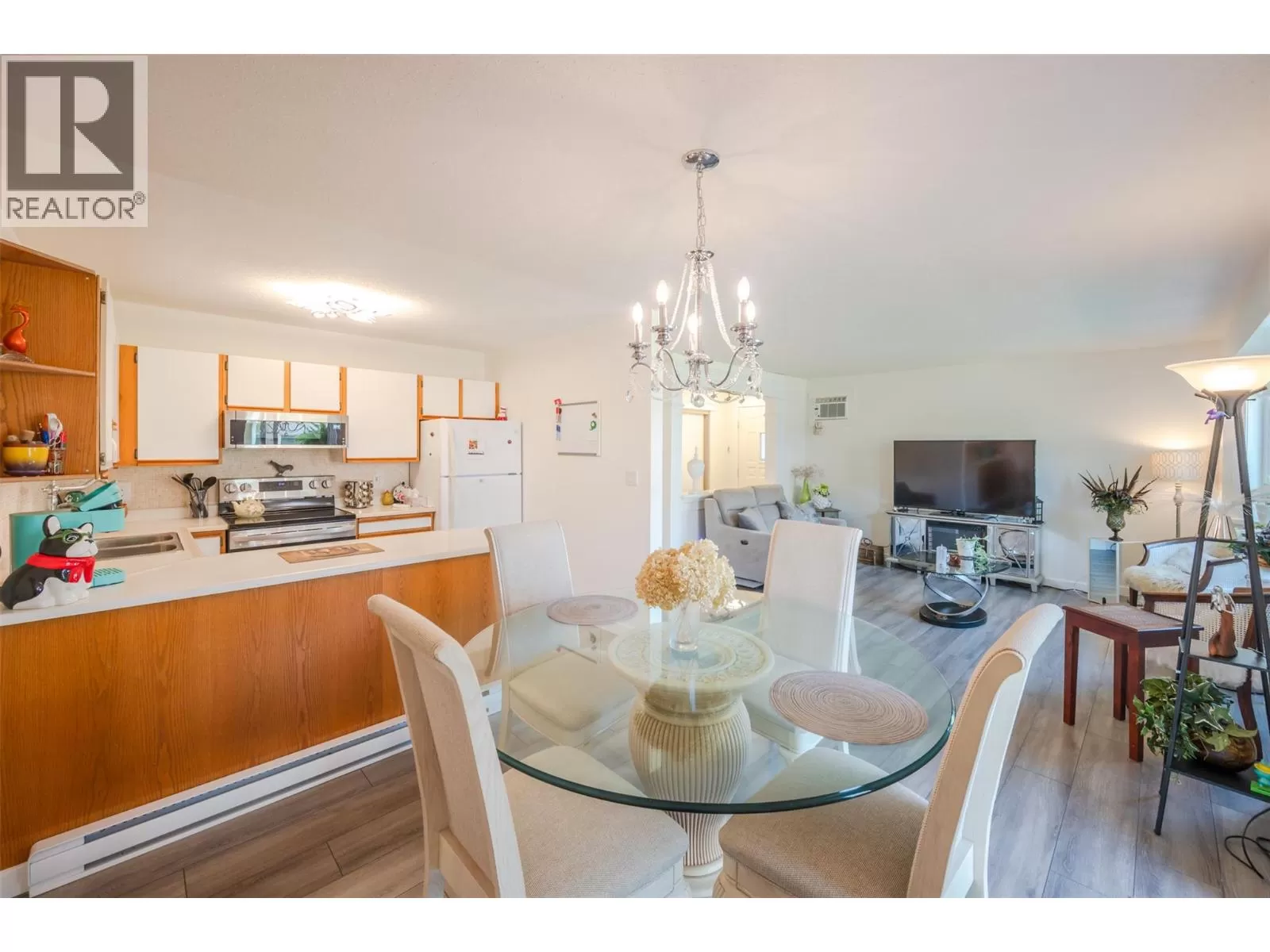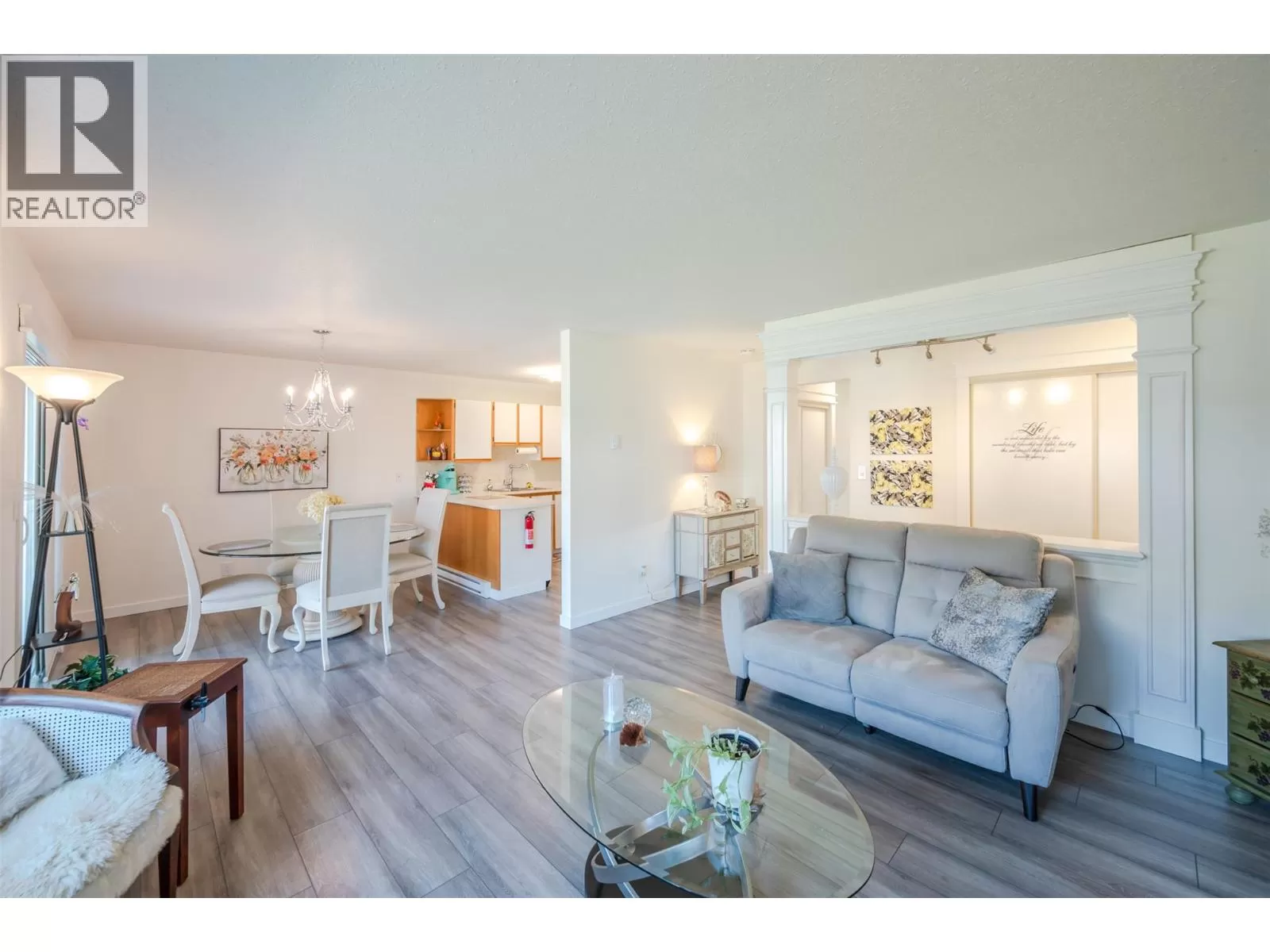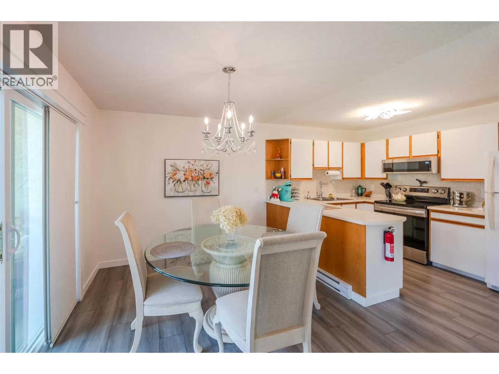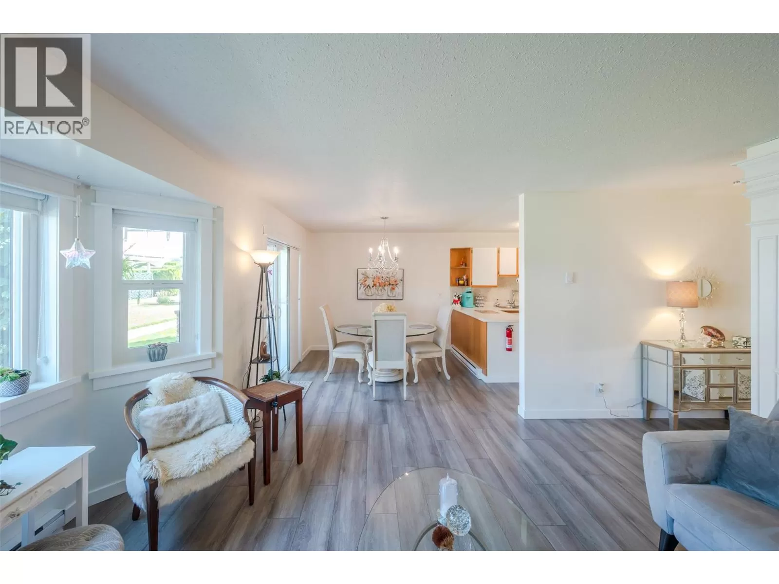 Lovely bright ground level unit in Victoria Gardens with tons of charm and elegance. Easy access to this 2 bedroom, 1 bath home with cozy patio. . Newer flooring, windows, lighting in kitchen and dining room, along with a refreshing paint scheme showcase this townhome. Open concept from kitchen to dining room makes entertaining easy. Bedroom closets are generous with tons of room for all your clothing and shoes. Also has a large storage unit adjacent to the front door. One of the special features of this unit is the North facing covered patio where you can relax in the shade with a good book and an apertif while enjoying the mountain views and the lovely Okanagan Summer. Also a plus is the proximity to grocery, restaurants, drug stores and the rest of the downtown core....Restrictions are 55+ and one small pet (dog or cat) allowed (on approval). Low strata fees at $275. per month. Also has one covered parking space close to the unit . Come and see for yourself how good the Okanagan lifestyle can be. (id:27476)