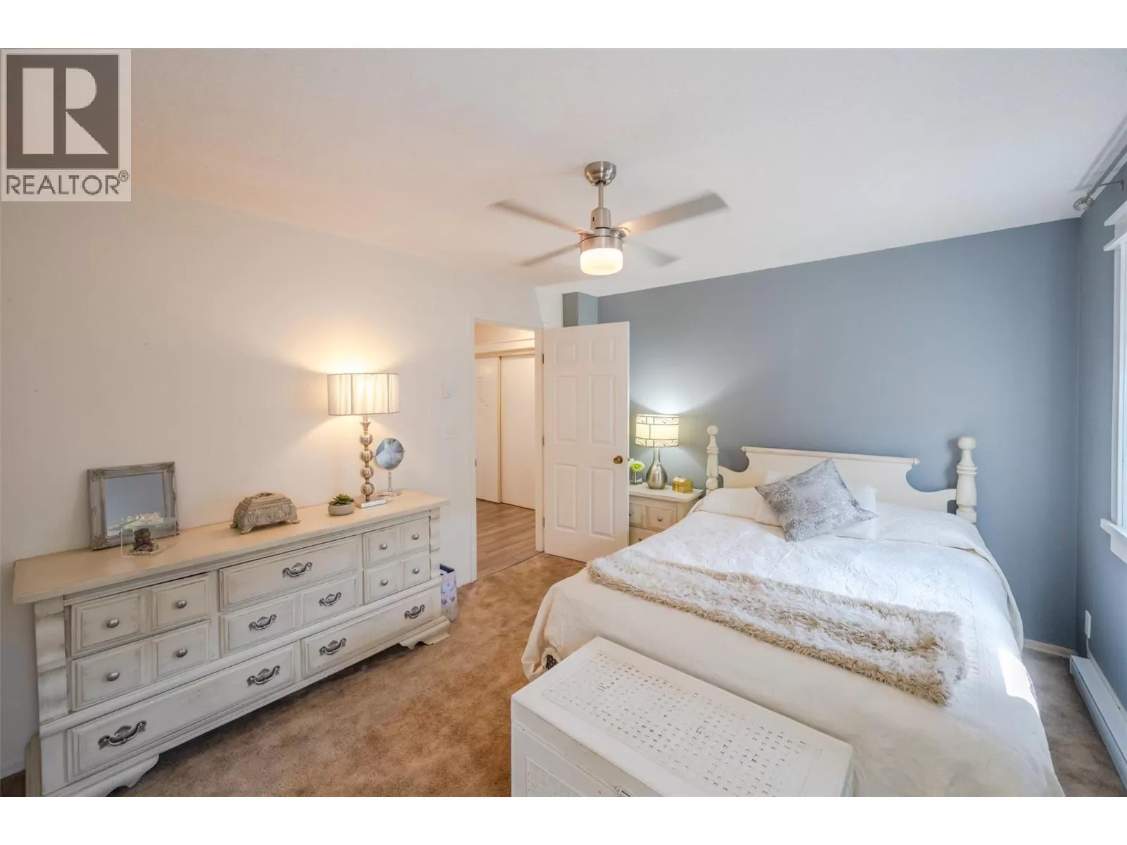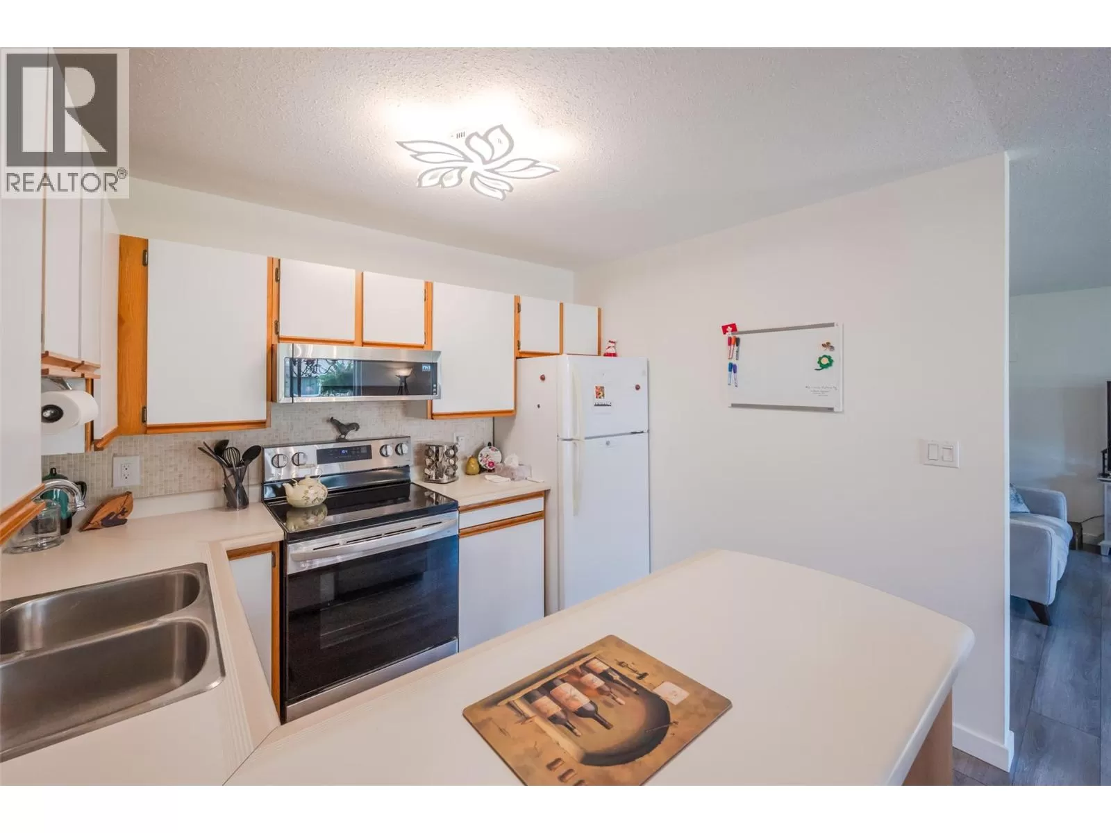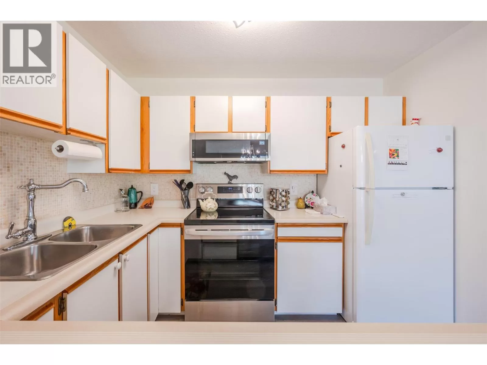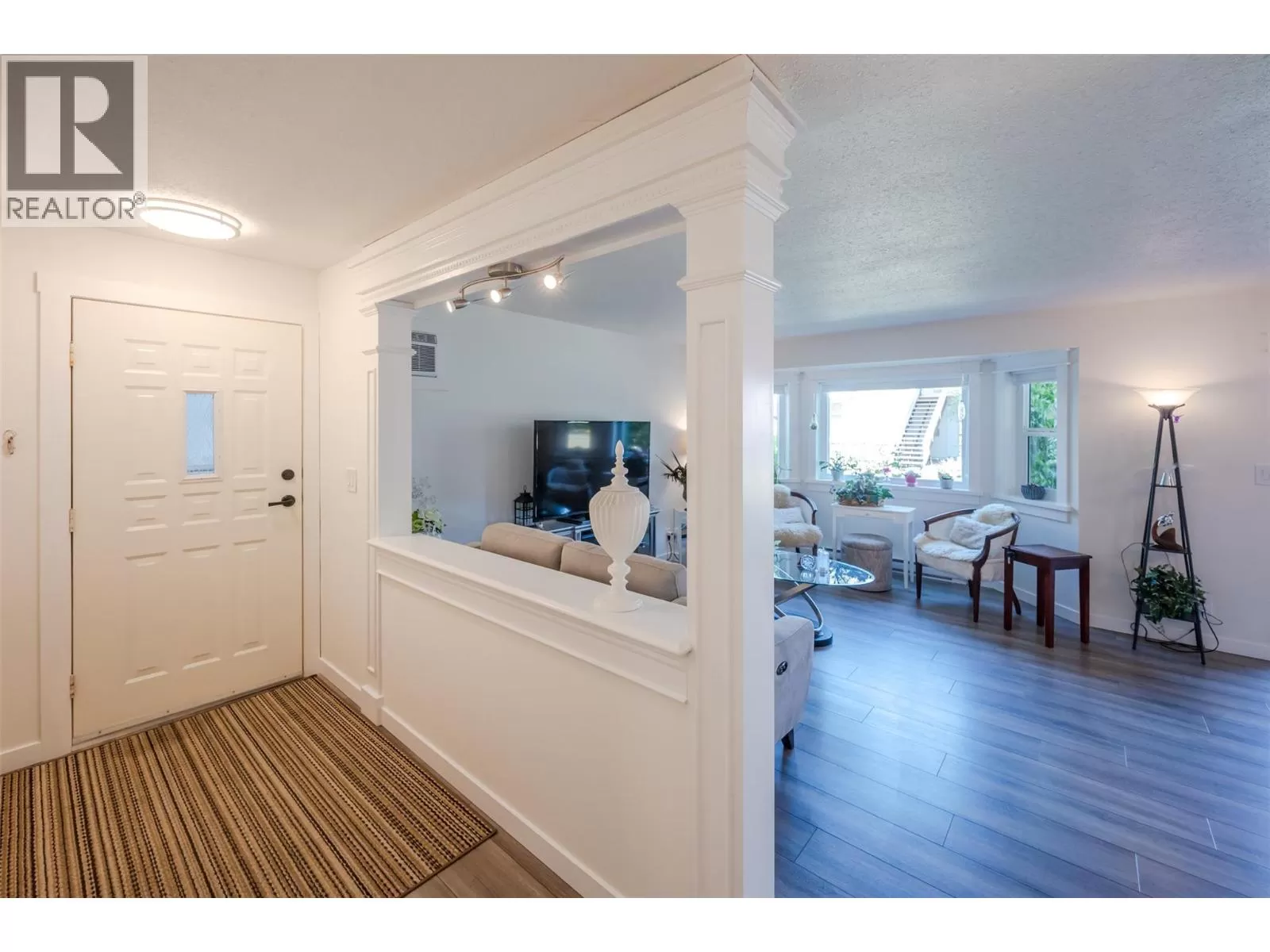 Lovely bright ground level unit in Victoria Gardens with tons of charm and elegance. Easy access to this 2 bedroom, 1 bath home with cozy patio. . Newer flooring, windows, lighting in kitchen and dining room, along with a refreshing paint scheme showcase this townhome. Open concept from kitchen to dining room makes entertaining easy. Bedroom closets are generous with tons of room for all your clothing and shoes. Also has a large storage unit adjacent to the front door. One of the special features of this unit is the North facing covered patio where you can relax in the shade with a good book and an apertif while enjoying the mountain views and the lovely Okanagan Summer. Also a plus is the proximity to grocery, restaurants, drug stores and the rest of the downtown core....Restrictions are 55+ and one small pet (dog or cat) allowed (on approval). Low strata fees at $275. per month. Also has one covered parking space close to the unit . Come and see for yourself how good the Okanagan lifestyle can be. (id:27476)