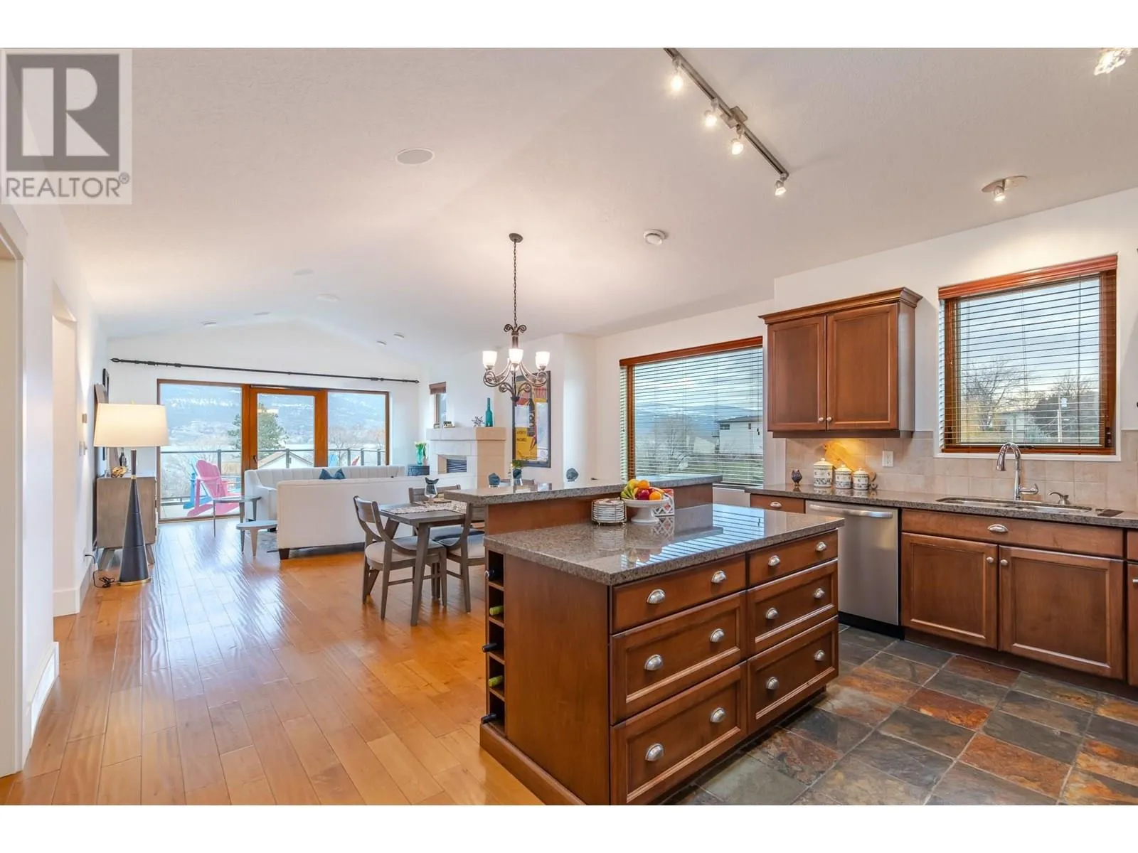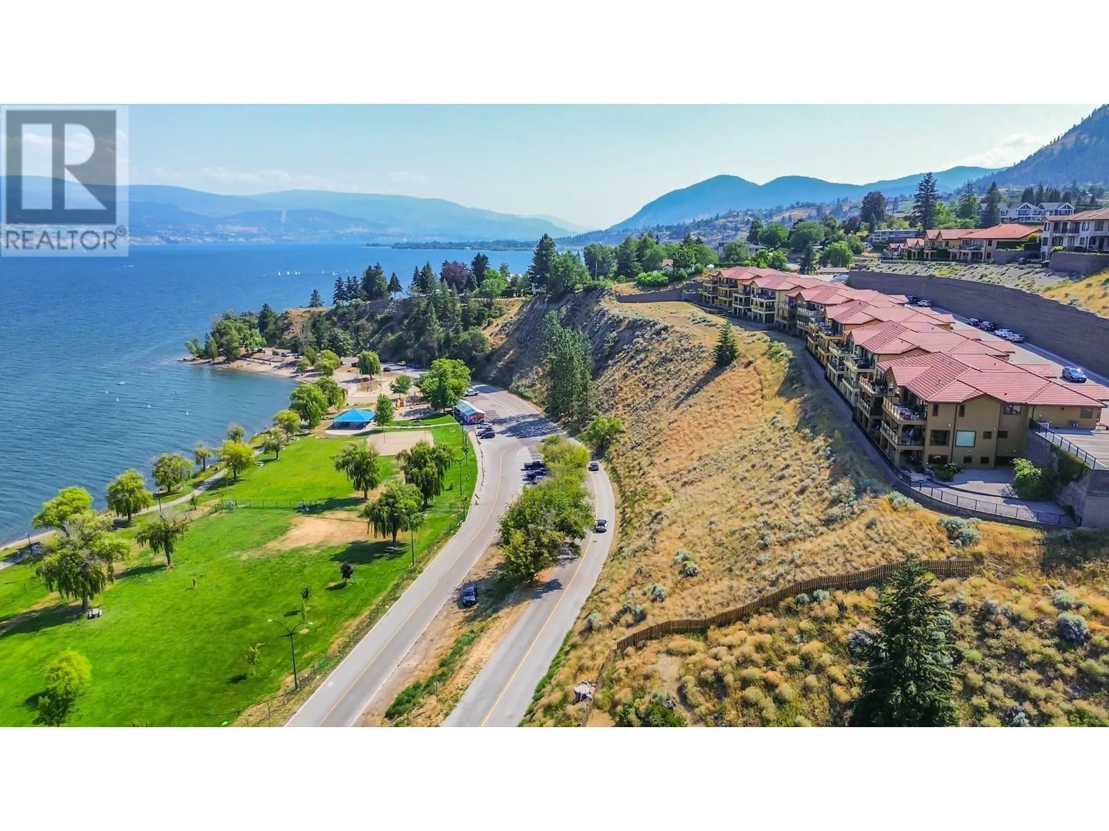 Experience the pinnacle of luxury living at the prestigious Tuscan Terrace, where breathtaking lake and mountain views await. This sophisticated 2-bedroom, 2-bathroom plus den condo offers an unparalleled combination of elegance, comfort, and convenience. The expansive floor plan features high-end finishes throughout, with soaring 9 & 11 ft ceilings, designer colors, and luxurious engineered hardwood and tile flooring. The spacious living room, complete with a gas fireplace, flows seamlessly to a private lake-view deck, creating an ideal space for both relaxation and entertaining. The gorgeous kitchen is a chefâs dream, outfitted with gleaming granite countertops, a large island with bar seating, and new stainless-steel appliances. Enjoy stunning lake views from both the dining room and the outdoor decks, offering a perfect setting for al fresco dining or simply soaking in the serene surroundings. The master suite is a true retreat, boasting a tranquil lake view, a walk-in closet with custom shelving, and a lavish 5-piece ensuite with double sinks, and an oversized shower. The den, featuring a built-in media center and surround sound system, provides the ideal space for a home office or entertainment room. Individually controlled stereo speakers are thoughtfully integrated throughout the home, including one deck. Additional highlights include a single garage, extra parking, and a prime location above the beach. (id:27476)