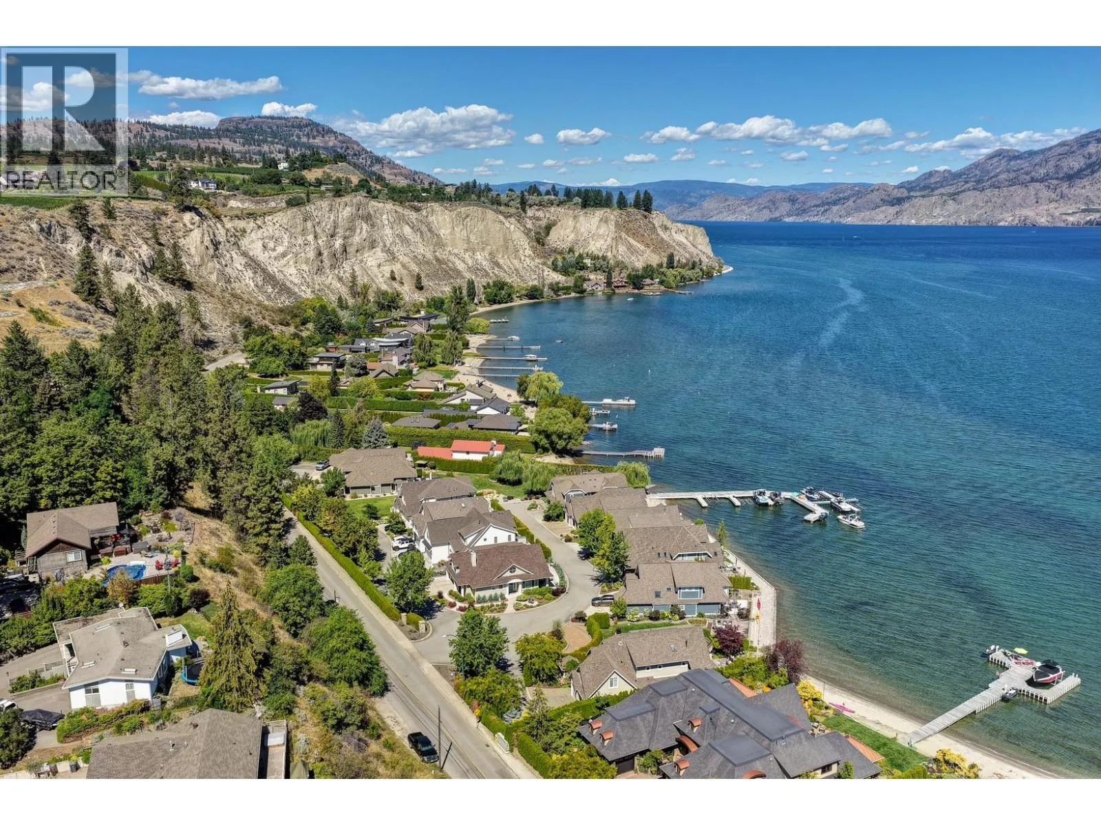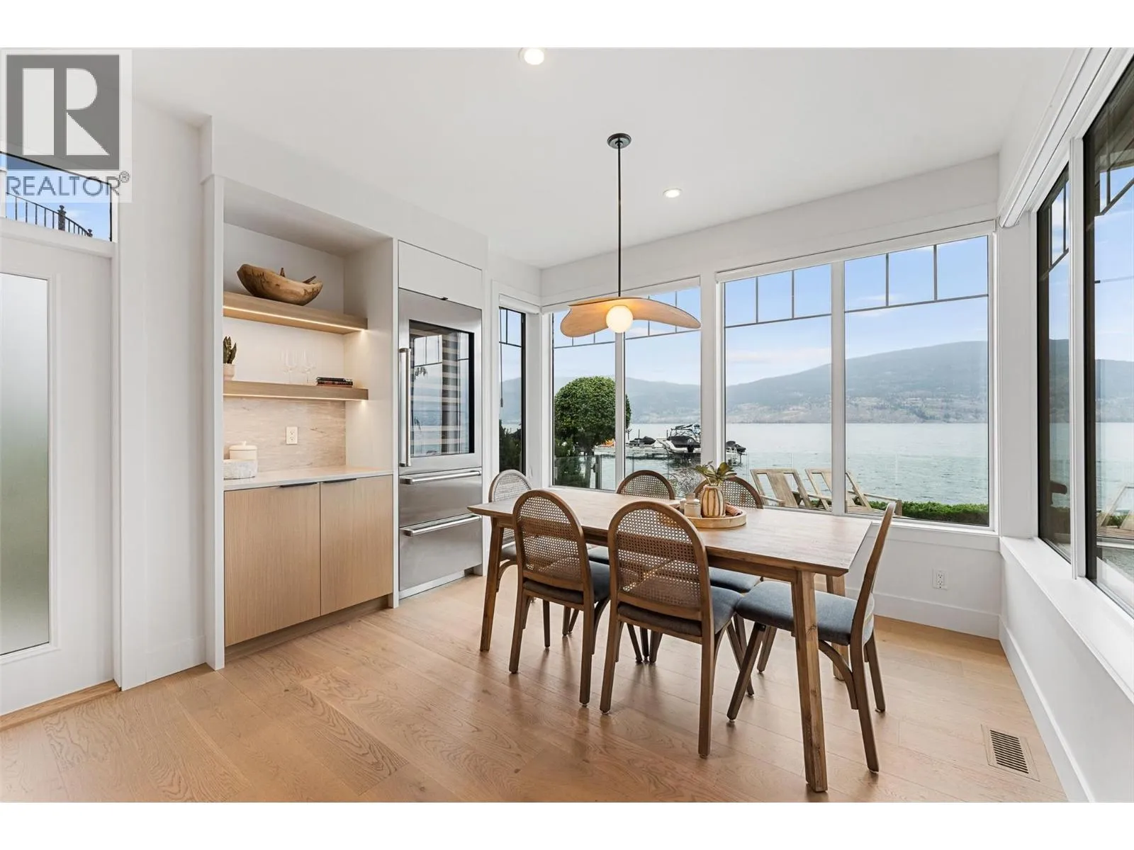 Experience waterfront living in the exclusive Willow Shores community of Summerland. Fully renovated in 2025, this 4 bedroom, 3 bath residence is essentially a brand-new home, offering modern luxury & low-maintenance living with sweeping views of Okanagan Lake. The main level is perfect for entertaining with wide-plank white oak floors, custom millwork, and a feature wall with gas fireplace. The chefâs kitchen boasts quartzite counters w/ waterfall island, new top-of-the-line Sub-Zero/Wolf appliances, and a beverage station with wine fridge. The dining area is wrapped in lakeview windows, the living room flows to a partially covered patio w/ heaters, Sonos speakers, outdoor shower, and firepit. Upstairs, the primary suite features vaulted ceilings, fireplace, power blinds, and spa-inspired ensuite with heated floors, soaker tub, and digitally controlled shower. Two add'l bedrooms, a media/family room with surround sound, and new laundry complete the level. Every detail has been updated: flooring, bathrooms with Kohler fixtures, paint, doors, fireplaces, Sonos audio, security system, and new mechanicals including Lennox furnace, Tosot heat pump, and Rinnai hot water system. The EV-ready double garage has epoxy floors, new doors, and custom storage. Manicured grounds lead to a sandy beach, lounge areas, and a dock with your own boat slip w/ 10,000 lb lift. This like-new lakeshore home is an exceptional Okanagan property perfect for enjoying the waterfront lifestyle. (id:27476)