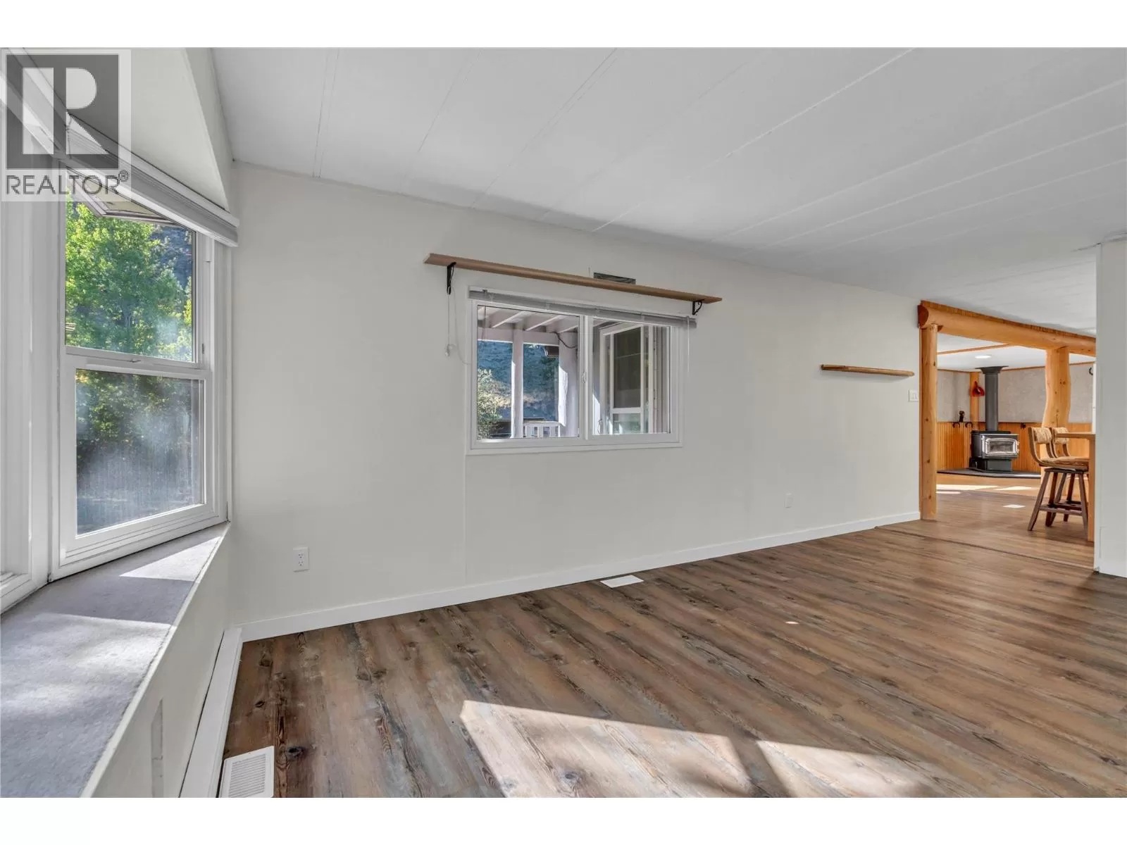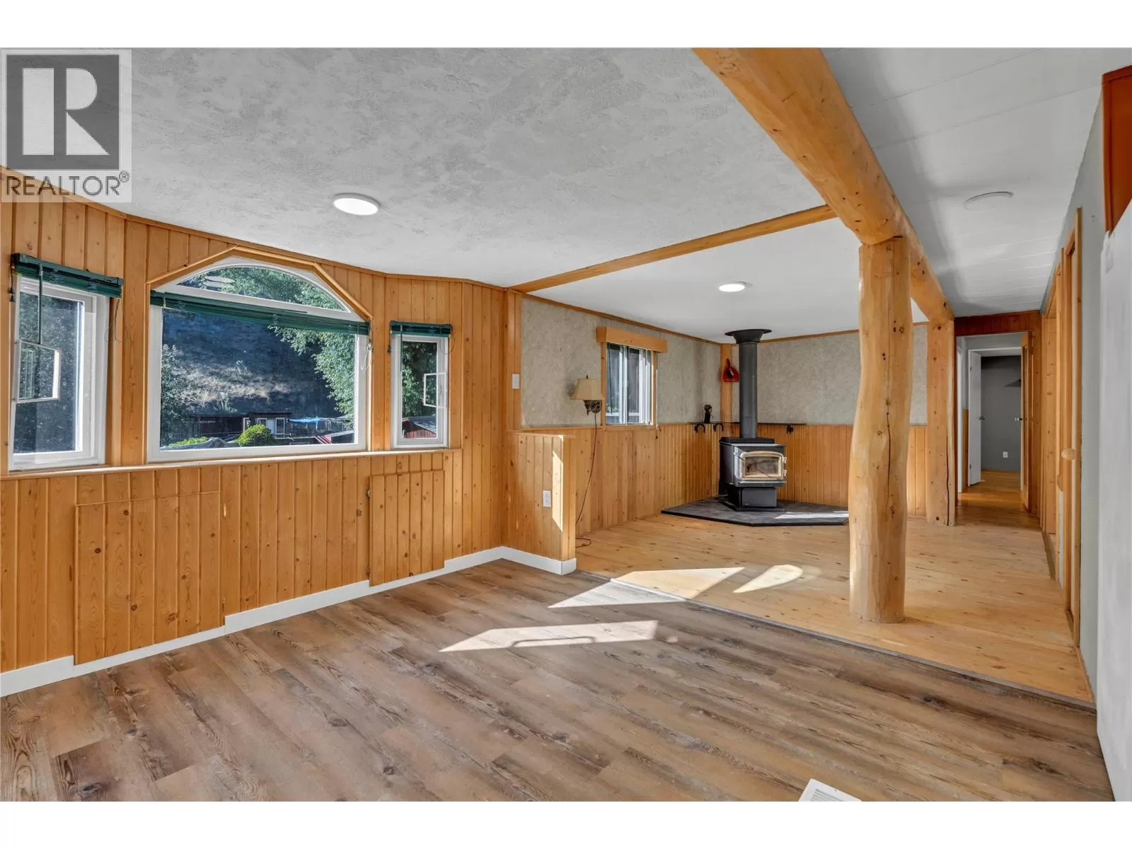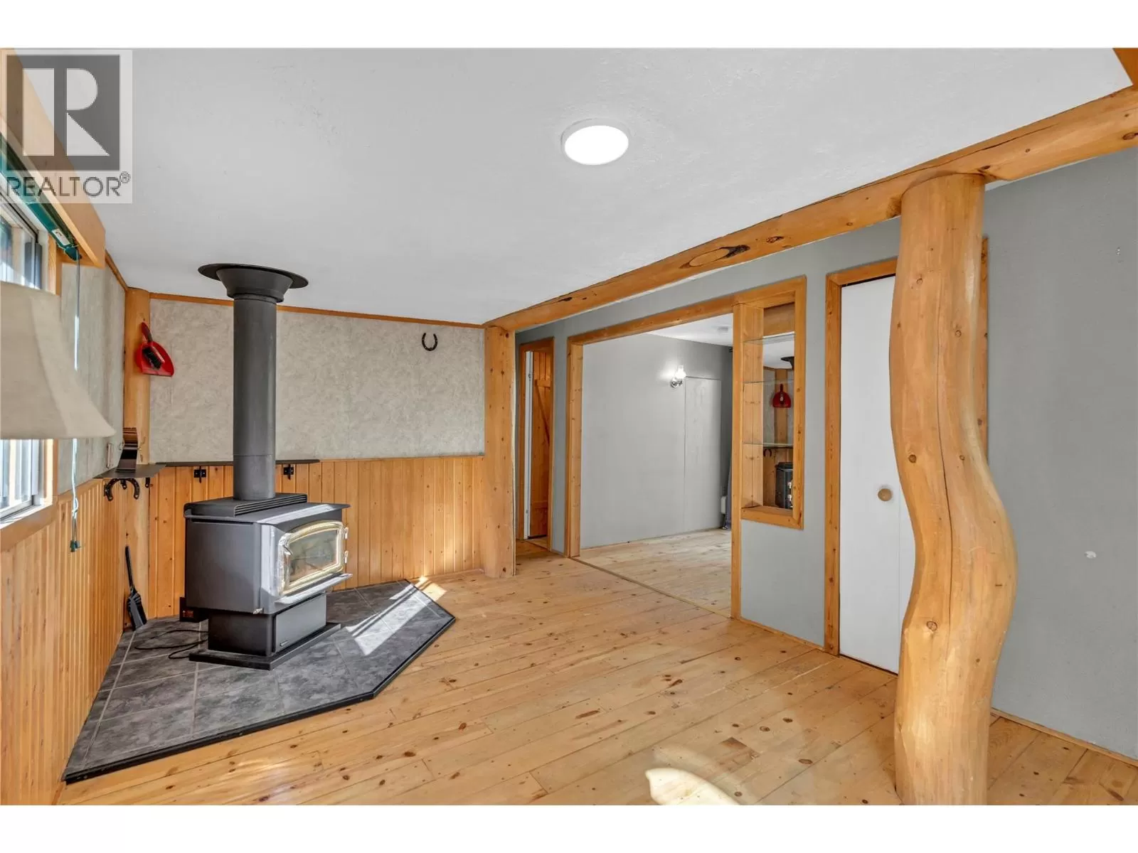 A great spot to call your own on 1 acre of land. Home has covered porch into the foyer, large living room, kitchen with floating island, laundry room, 2 bedrooms, den with patio slider to the open deck, family room & wood stove for the cozy days, 2 bathrooms, (one with walk in shower the other with a relaxing soaker tub) walk in closet in the Primary and access off the master to the outside. LVP flooring and solid pine flooring. Outbuildings for a workshop and storage, plenty of garden area. Seasonal Darke Creek through the property. Situated on the school bus route, Fibre Optic available for cellular and internet, near the Trans Canada trail for all your recreation needs, water system in place. This property located in historic Faulder 15 min from Downtown Summerland. Call today to view. Quick possession. (id:27476)