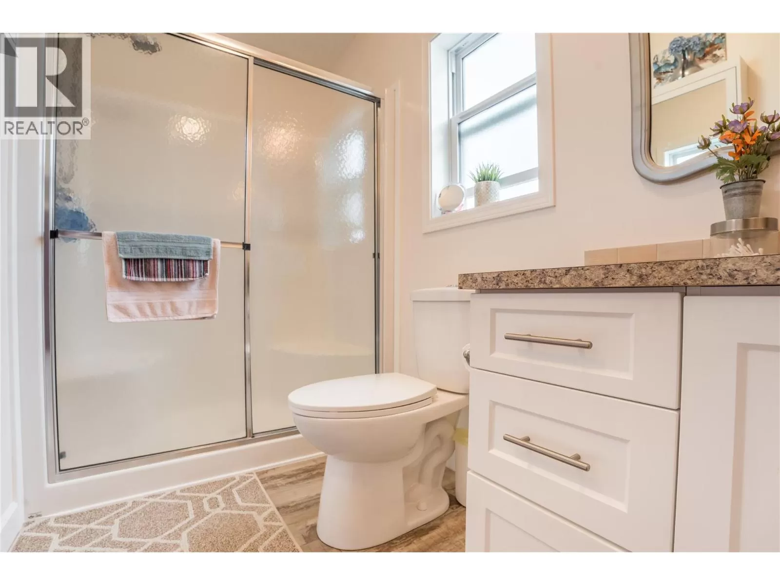 Welcome to one of the newer homes in the desirable Summokan Park â a quiet, well-maintained 55+ community in beautiful Summerland. This thoughtfully designed 2-bedroom, 2-bathroom unit offers a bright and spacious floor plan thatâs sure to impress. Step into the open-concept living area, where natural light fills the space from the living room through to the dining area and kitchen. The spacious living room features a cozy gas stove for added warmth and ambiance. The kitchen offers ample cabinetry and prep space, plus thereâs a separate laundry room with additional pantry storage. The large primary suite comfortably fits a king-sized bed and includes a walk-in closet and a private ensuite with a walk-in shower. The second bedroom is perfect for guests or can easily be used as a home office. Enjoy outdoor living on the covered, tiered deckâa great space for relaxing or entertaining. The generous yard includes room for raised garden beds and a 12' x 8' storage shed for all your tools and extras. Some furnishings may be included with the right offer. Pad rent $685 per month. No rentals, & two pets upon park approval ( max 15 inches at shoulder). (id:27476)