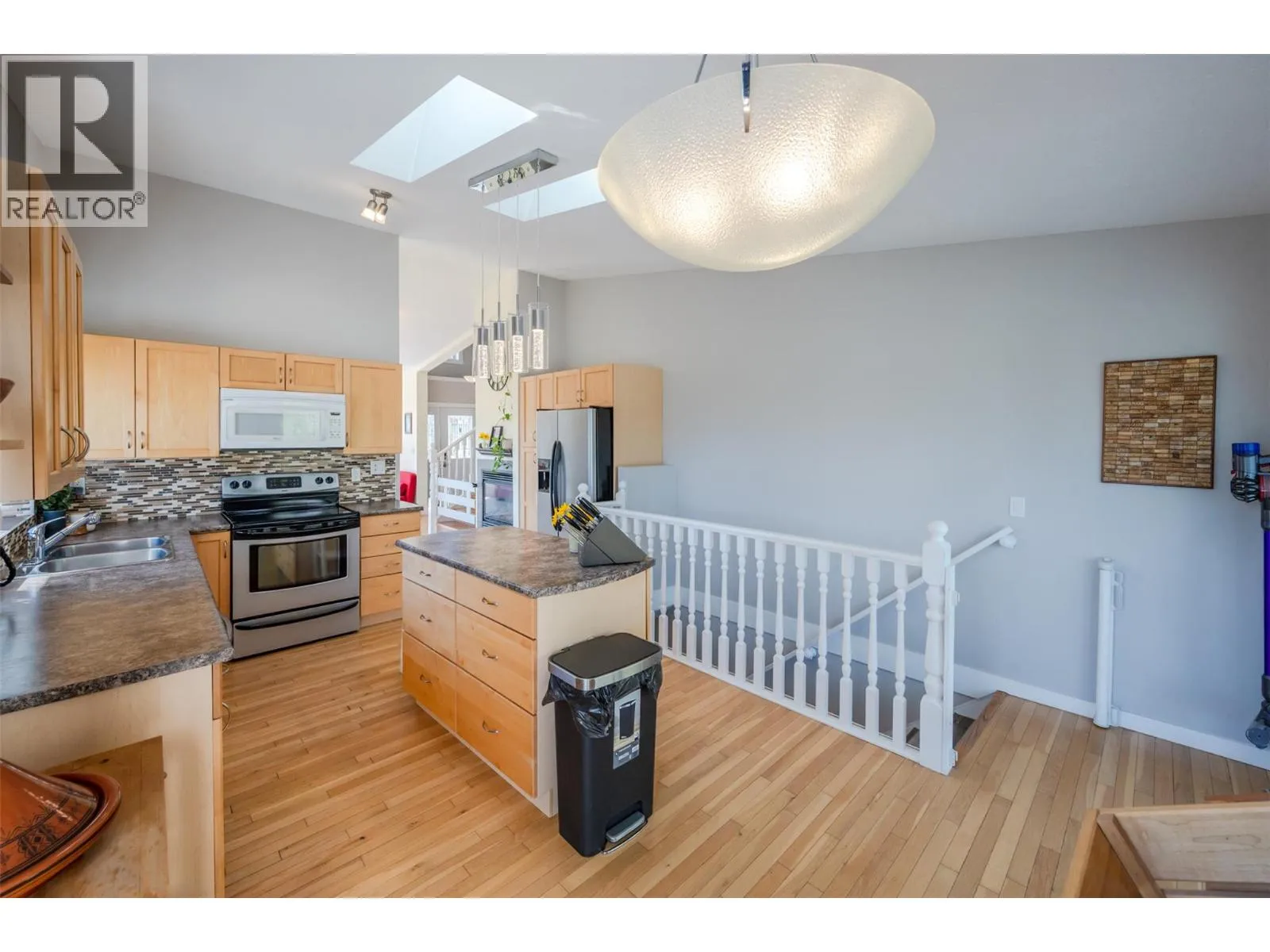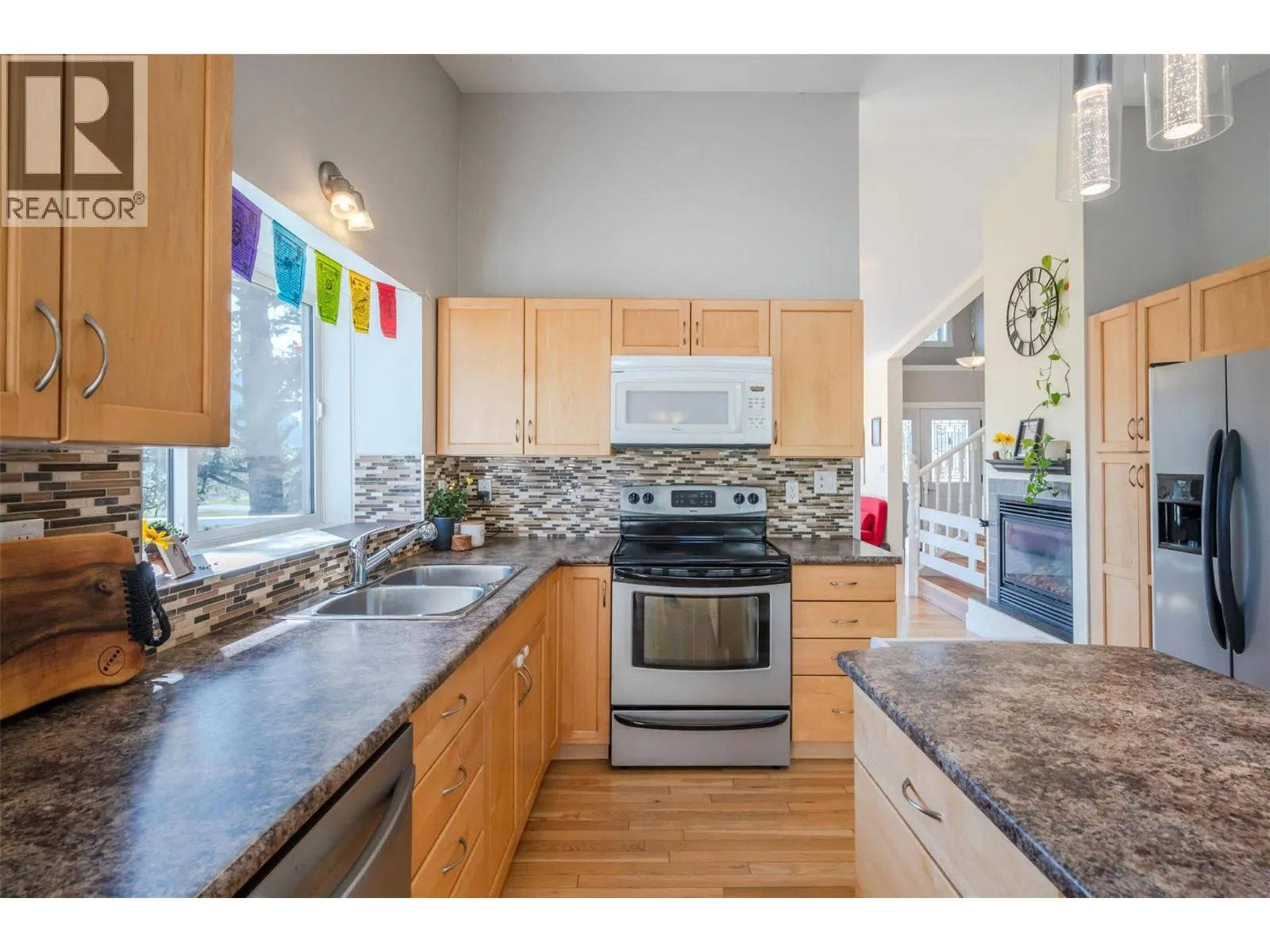 Nestled on a quiet cul-de-sac overlooking Giants Head Mountain and Dale Meadows Sports Field, this beautifully maintained home sits on a spacious 0.56-acre lot with plenty of open parking. The main floor welcomes you with a bright foyer leading into an open-concept living and dining area filled with natural light from large windows, flowing into a sunny kitchen with access to a covered deckâperfect for entertaining. Upstairs, youâll find a generous primary bedroom with a private 3-piece ensuite, two additional bedrooms, and a full 4-piece bathroom. The walk-out basement offers a fourth bedroom, a 3-piece bathroom, and access to the lower covered deck, ideal for guests or extended family. Conveniently located close to downtown Summerland, this home blends comfort, space, and stunning views. Contact the listing agent to view! (id:27476)